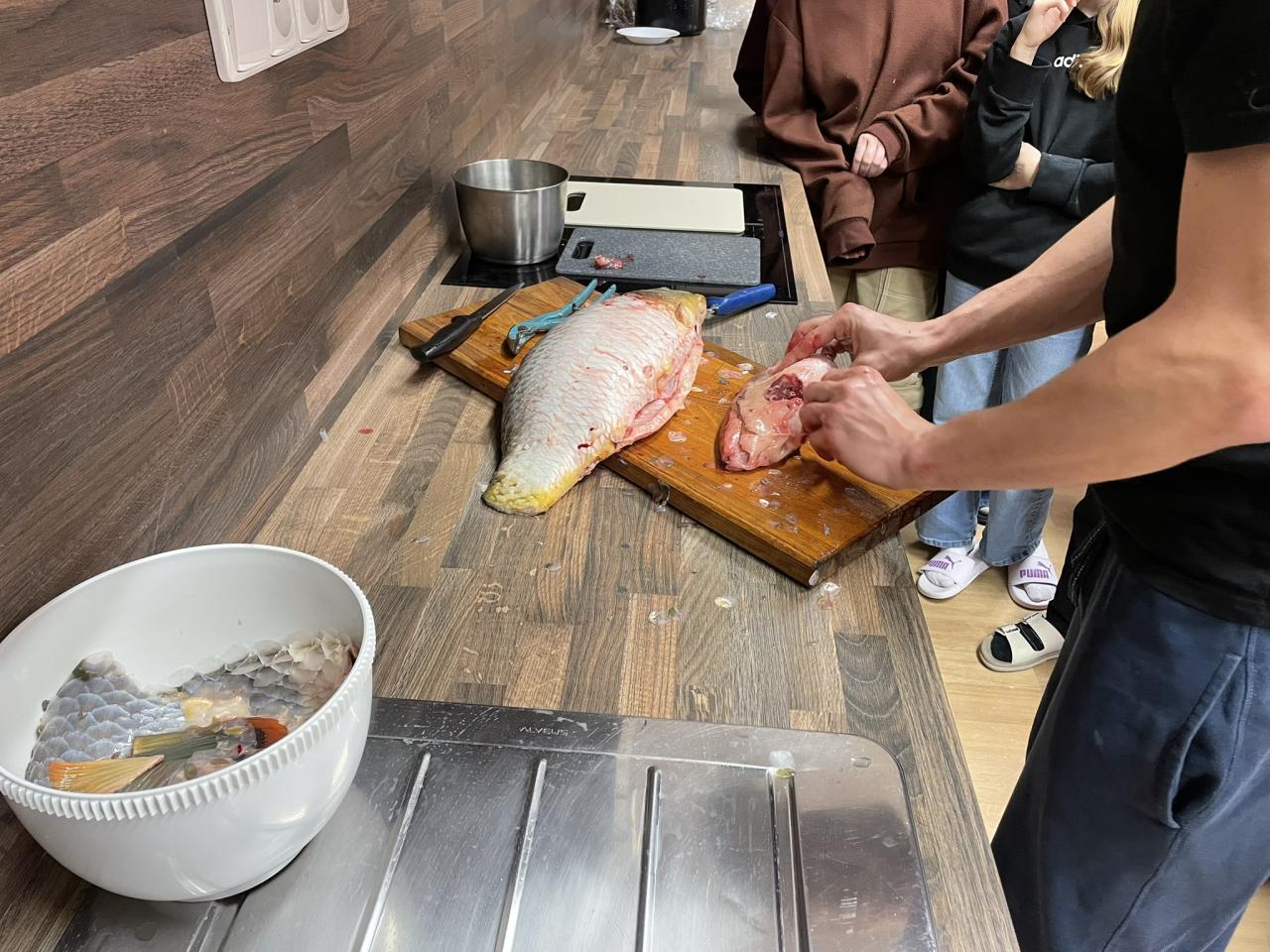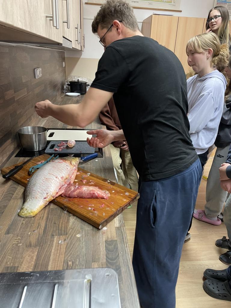 Ve středu 3.12. jsme spojili pracovní činnosti s přírodopisem a ukázali si útroby kapra.