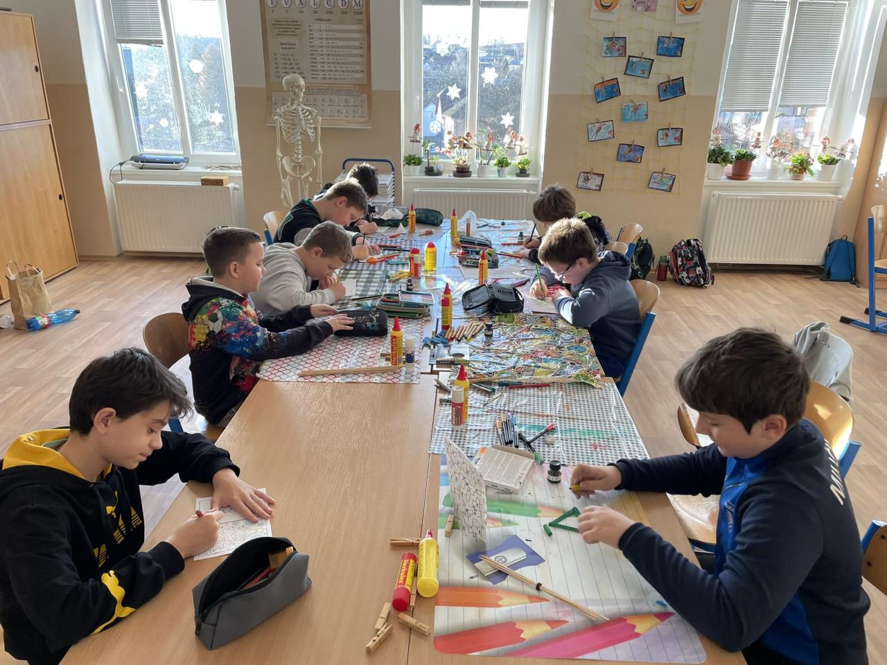 Dnešní den patří výtvarnému tvoření pro páteční školní jarmark, kam Vás všechny srdečně zveme. Zároveň bude tento den i dnem otevřených dveří od 13:00 do 15:00.
