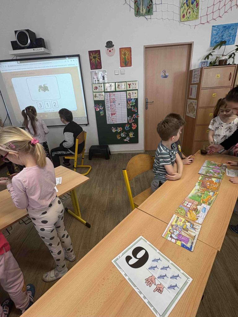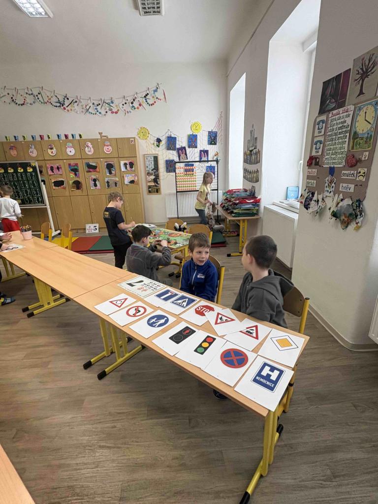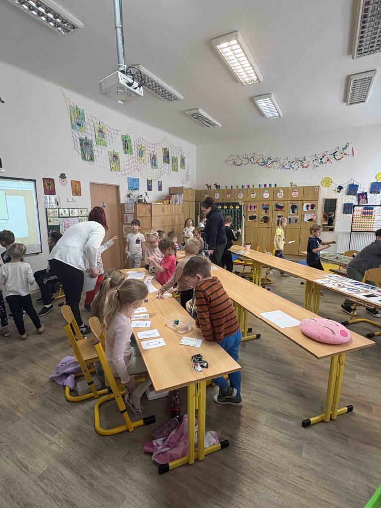 V pátek 20.2. 2026 se naši předškoláci vydali na svou první vyučovací dvouhodinovku do první třídy. Prvňáčci s pomocí paní učitelky Kellerové připravili stanoviště, na kterých děti plnily různorodé úkoly. Procvičili jsme si počty, písmenka, obrázkové čtení dopravní značky, ale i prvky tělocviku jako kotoul nebo sudy. U každého stanoviště byla dvojice prvňáčků, která svým mladším kamarádům pomáhala, poradila a podporovala je při plnění úkolů. A jako správní učitelé odměnili děti číslem či hvězdičkou do průkazu budoucího prvňáčka. Užili jsme si společně dvě vyučovací hodiny a následovala zasloužená svačina! Za šikovnost a snahu si každý předškolák odnesl klíčenku.