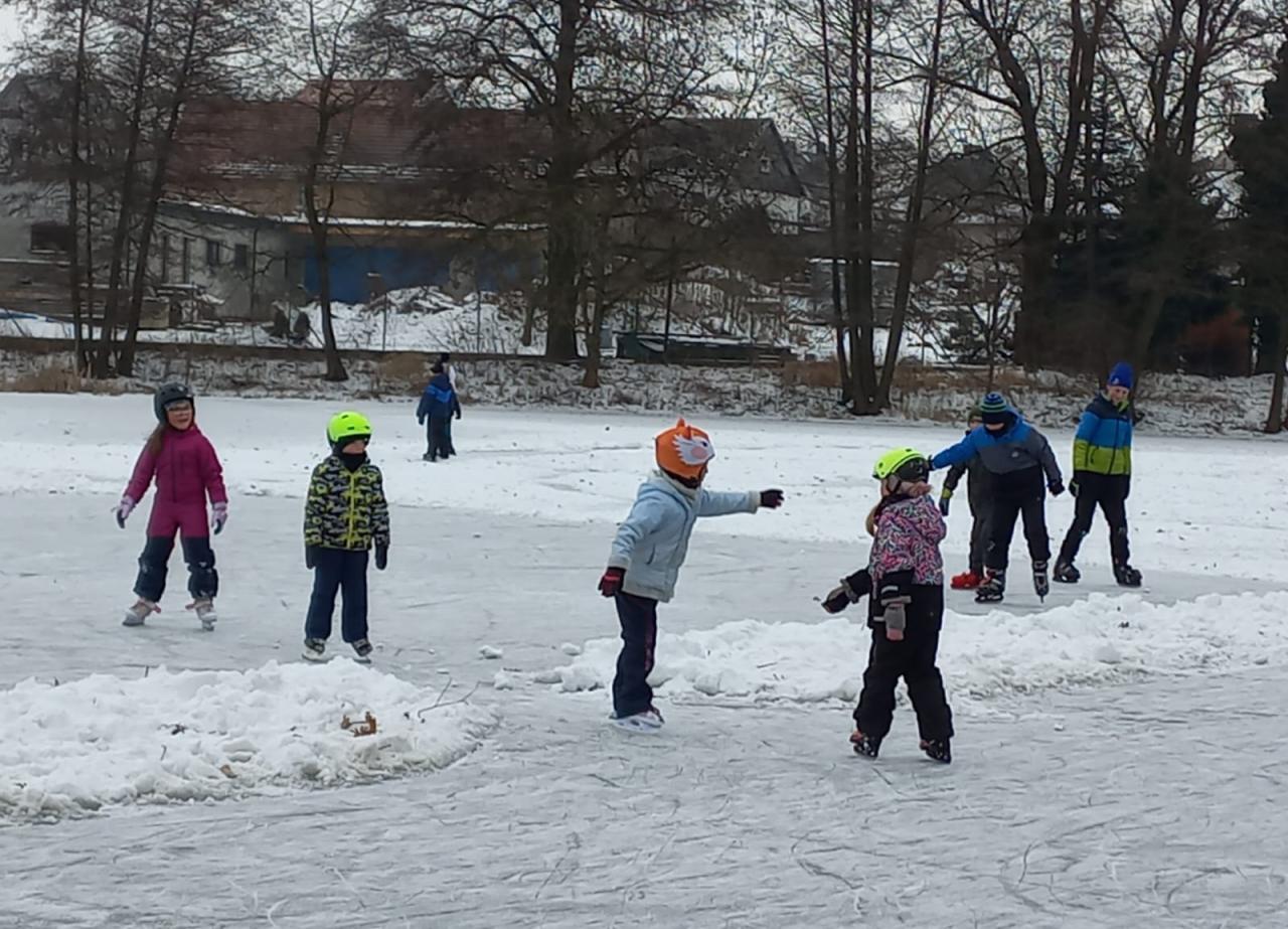 8.1. jsme se vypravili na Novoměstský rybník užít si mrazivé počasí. Led pnul, děti vískaly, nosy mrzly. Všichni jsme si to užili a v pořádku jsme se vrátili zpět do družiny. Doufáme, že bude stále mrznout, abychom si bruslení mohli zopakovat.