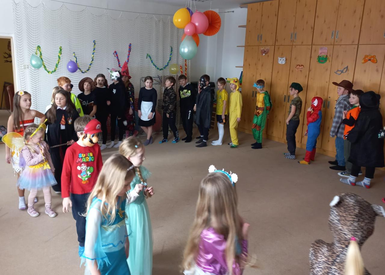 V úterý 17.2.2026 se konal dětský karneval. Děti byly perfektně připravené. Přinesly si a oblékly nápadité masky a kostýmy. Například Elsu, Hermionu, Spider-mana, želvu Ninja, Super Mario, Pikachu, policistu, kovboje, popeláře, čarodějnici, motýlka, kočičku, leoparda ...