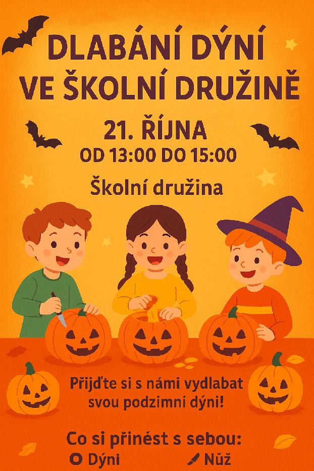 V úterý 21. října se bude ve školní družině konat tradiční Dlabání dýní od 13:00 hod.