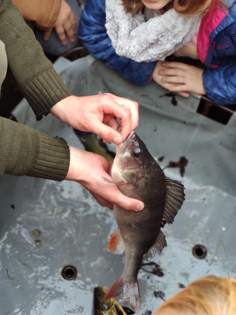 Děti se zde seznámily s chovem ryb našich vod, jako je kapr obecný, lín obecný, candát obecný, okoun říční, sumec velký, tolstolobik bilý, amur bílý a zvláště pak se specializací na rozmnožování a odchov štiky obecné. Práci ve štičí líhni a vývoj této ryby od jikry až po dospělého jedince viděly děti v krátkém filmu. Zajímavostí v sádkách byli dva staříci – sumci, kterým je už padesát let.