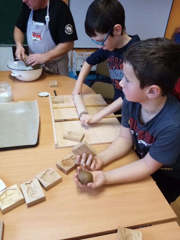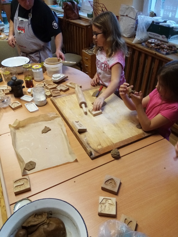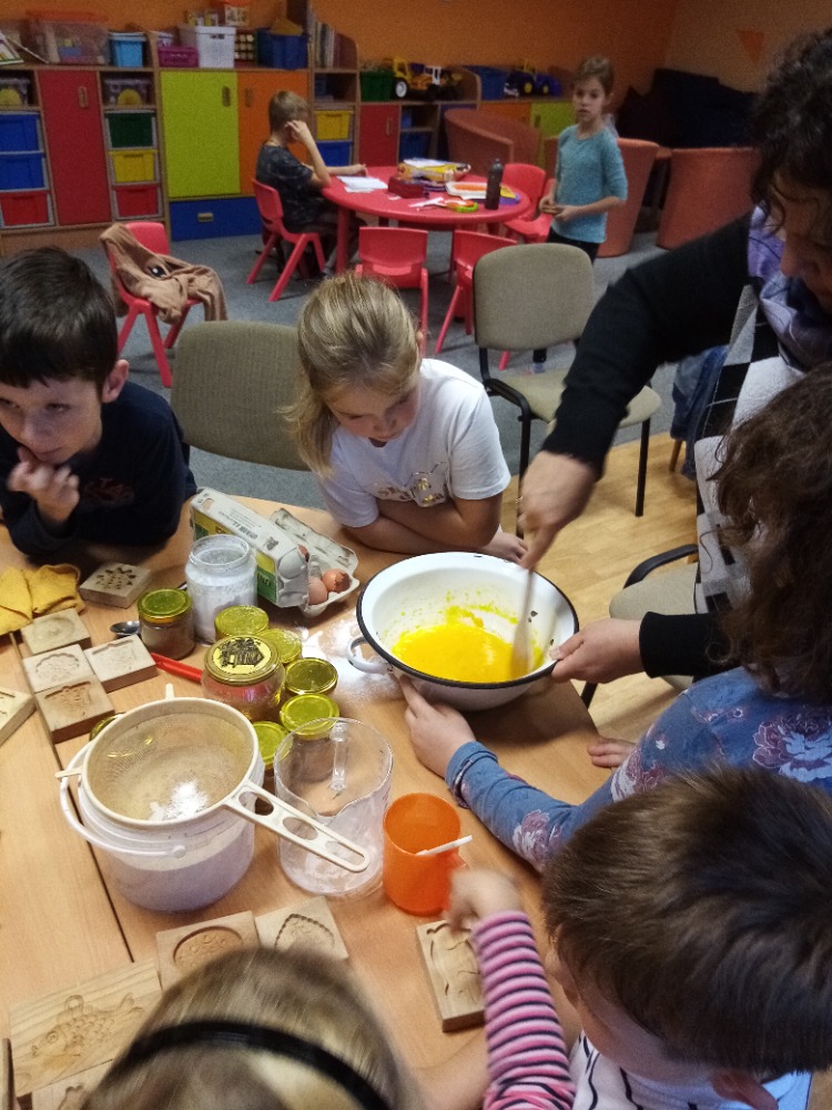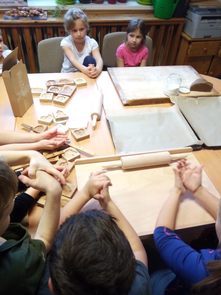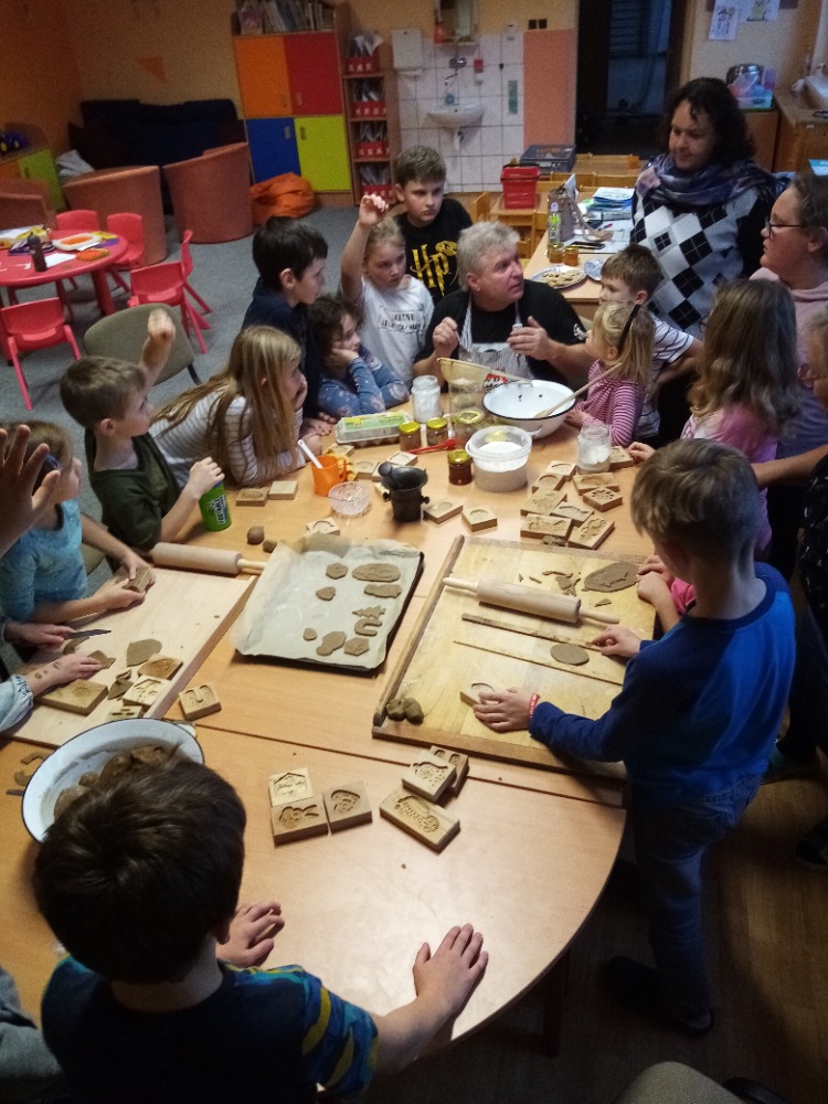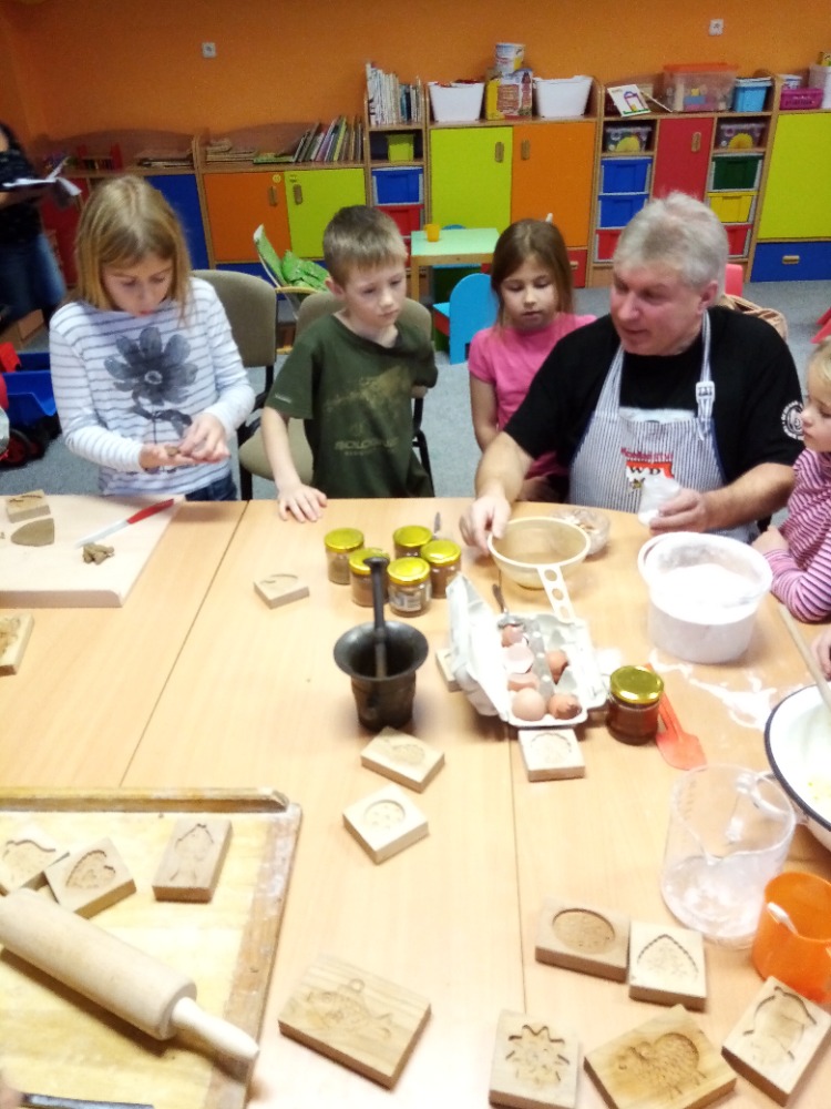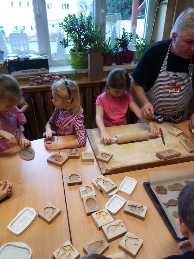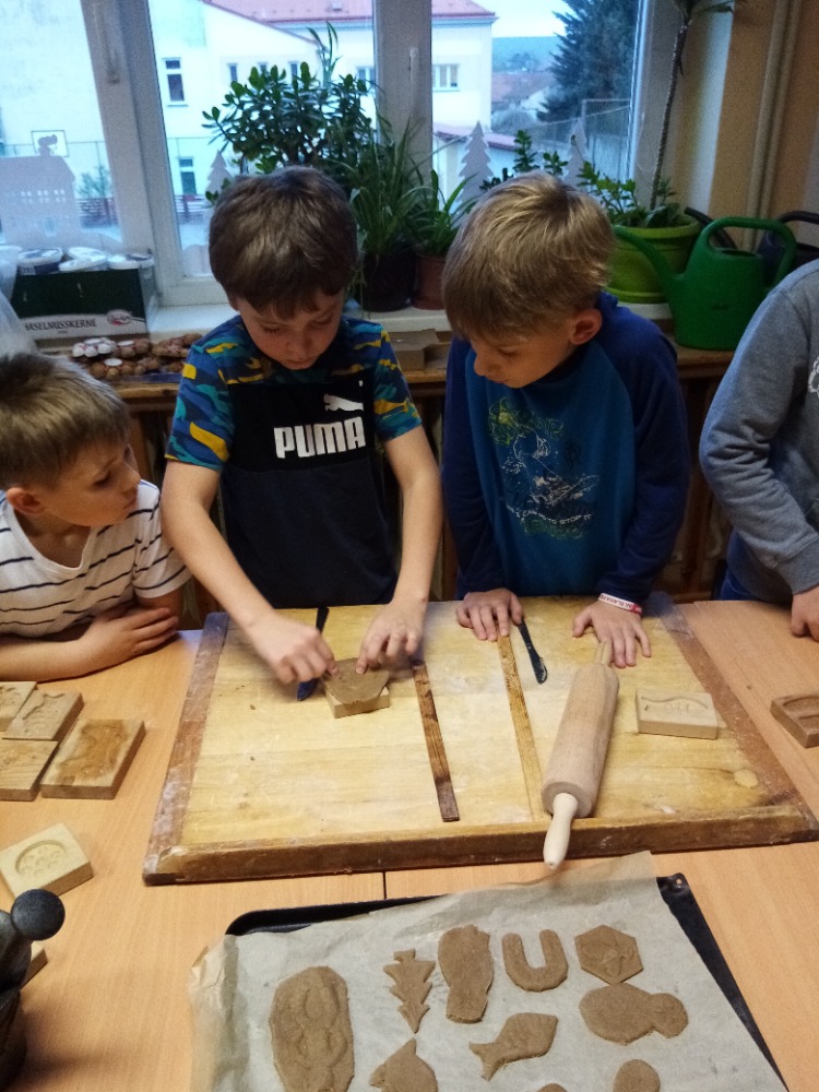 V pondělí 28.11.2022 se konalo ve Školní družině pečení perníčků do dřevěných forem s panem M. Dvořákem ze Semtínka. Na začátku pečení pan Dvořák dětem vysvětlil a ukázal, jak správně formy používat. Každý dostal kousek těsta, které si uválel a následně si mohl vybrat dvě různé formičky např. prasátko, čerta, včelu, hvězdu, zvoneček, podkovu atd. Když děti vyndaly z forem hotový perníček, položily ho na pekáč a netrpělivě čekaly, jak se jim v troubě upeče. Každému se jeho perníček povedl a děti si ho mohly rovnou sníst nebo odnést domů. Nakonec dětem pan Dvořák ukázal, jak vyrobit koření do těsta. Tímto ještě jednou děkujeme panu Dvořákovi za odborný výklad a navození vánoční atmosféry. Dětem se celé pečení líbilo a budeme se těšit na příští.