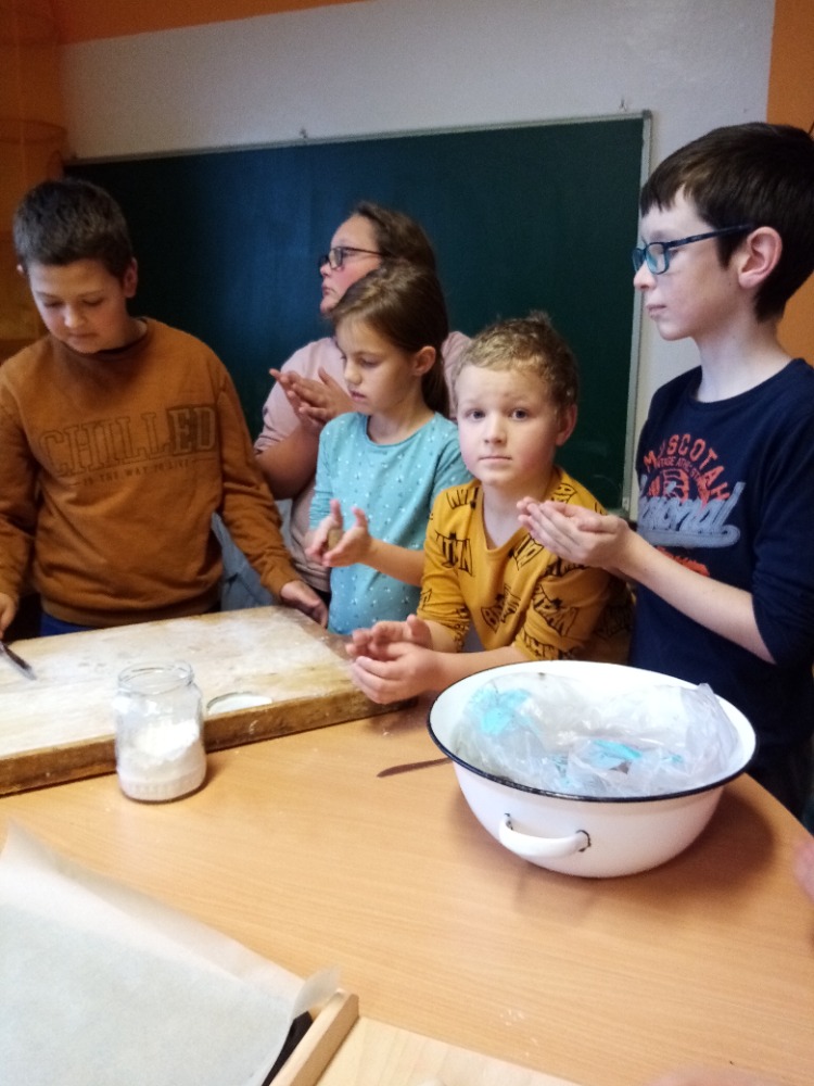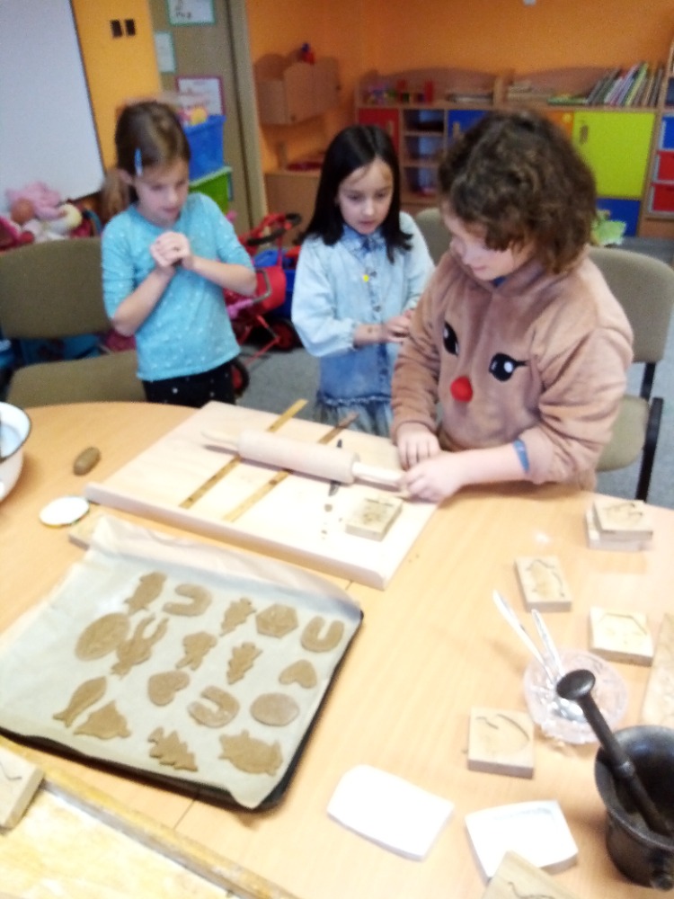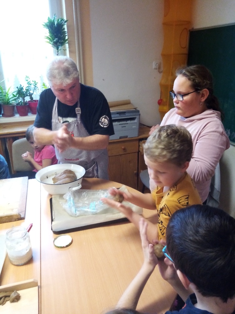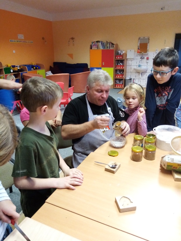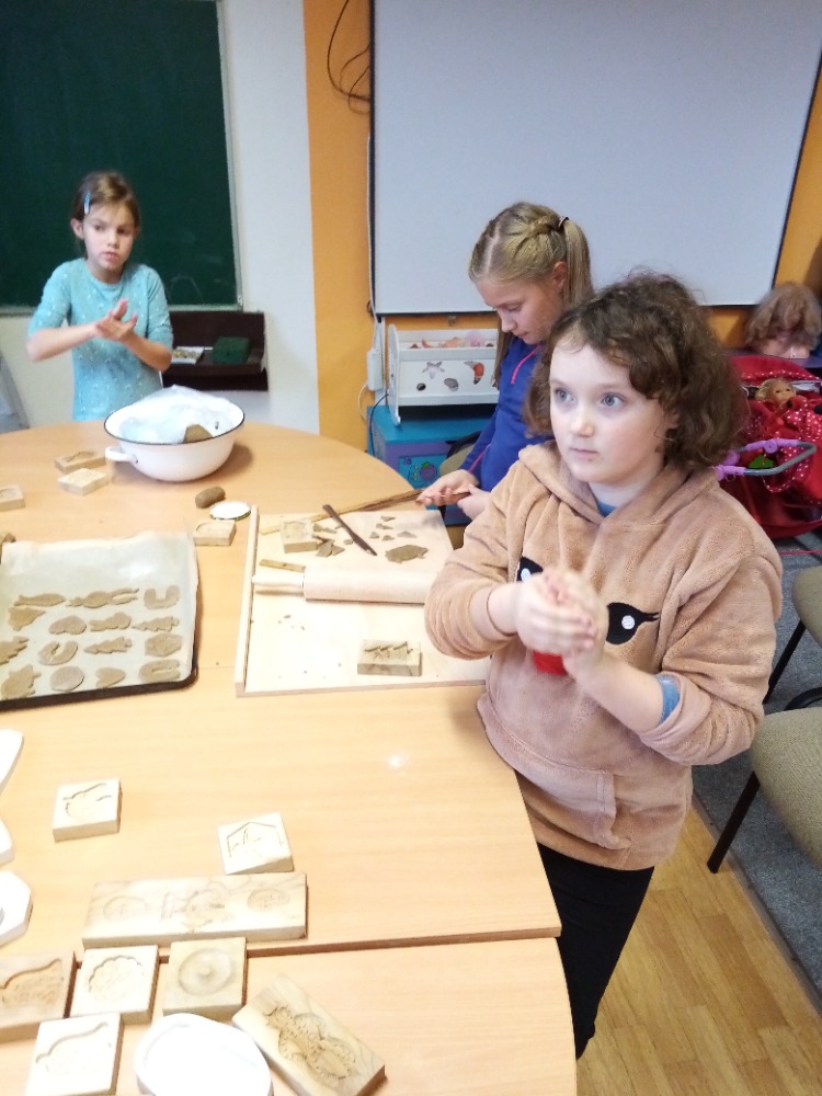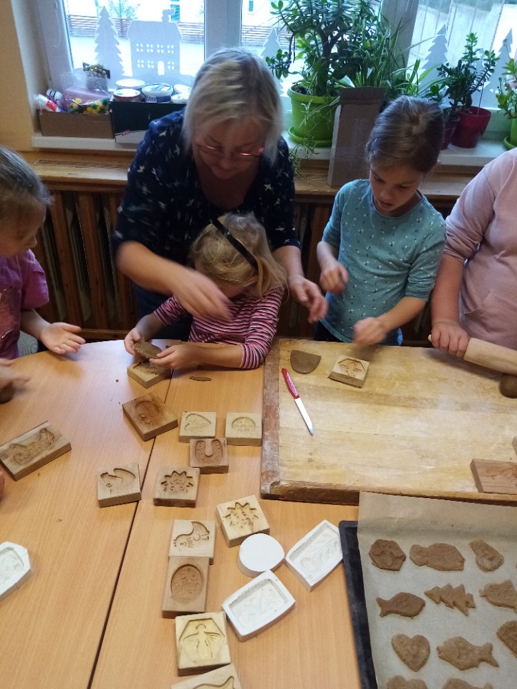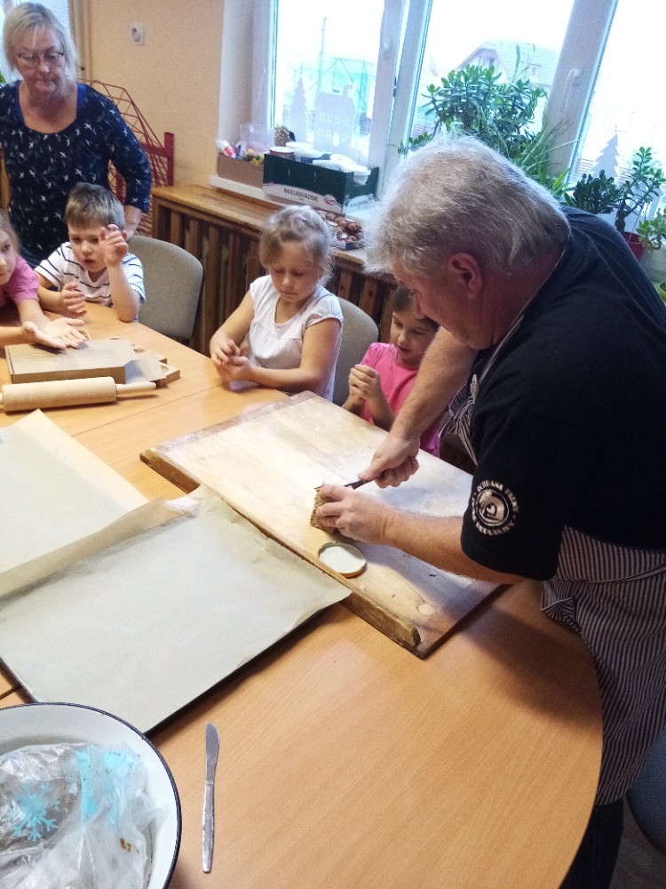 V pondělí 28.11.2022 se konalo ve Školní družině pečení perníčků do dřevěných forem s panem M. Dvořákem ze Semtínka. Na začátku pečení pan Dvořák dětem vysvětlil a ukázal, jak správně formy používat. Každý dostal kousek těsta, které si uválel a následně si mohl vybrat dvě různé formičky např. prasátko, čerta, včelu, hvězdu, zvoneček, podkovu atd. Když děti vyndaly z forem hotový perníček, položily ho na pekáč a netrpělivě čekaly, jak se jim v troubě upeče. Každému se jeho perníček povedl a děti si ho mohly rovnou sníst nebo odnést domů. Nakonec dětem pan Dvořák ukázal, jak vyrobit koření do těsta. Tímto ještě jednou děkujeme panu Dvořákovi za odborný výklad a navození vánoční atmosféry. Dětem se celé pečení líbilo a budeme se těšit na příští.