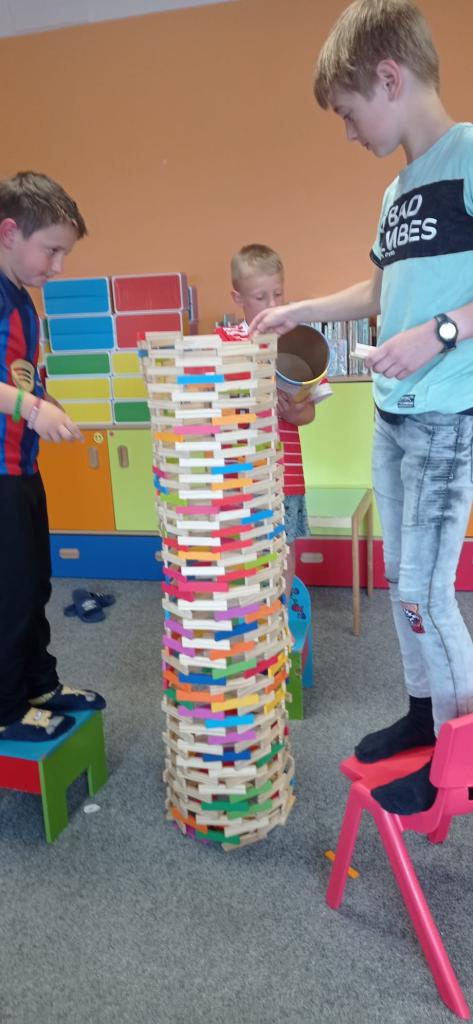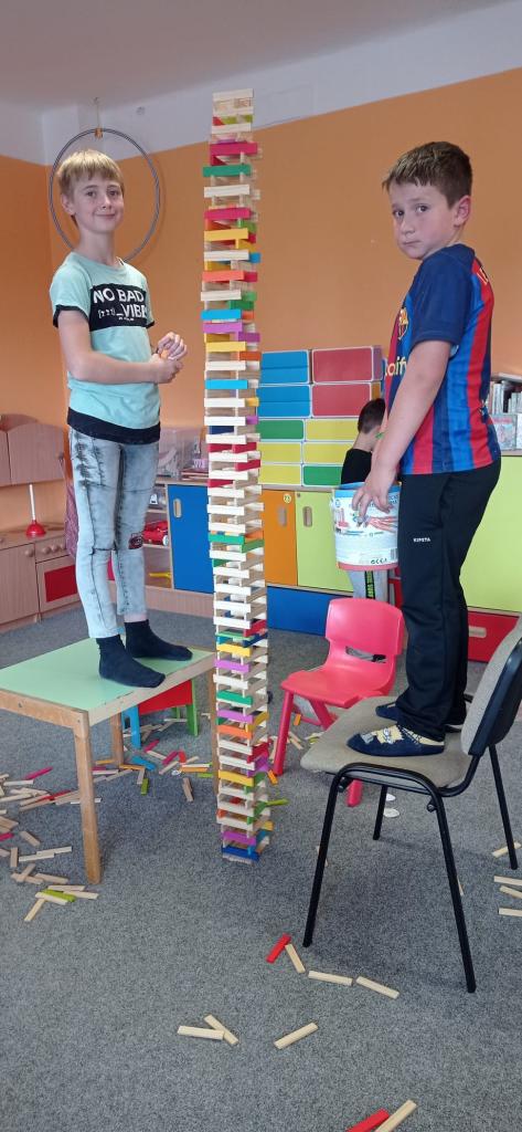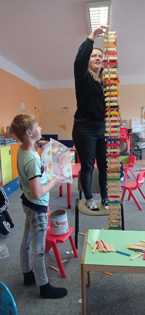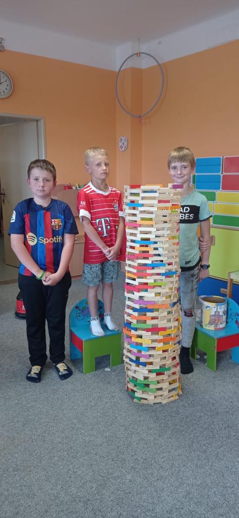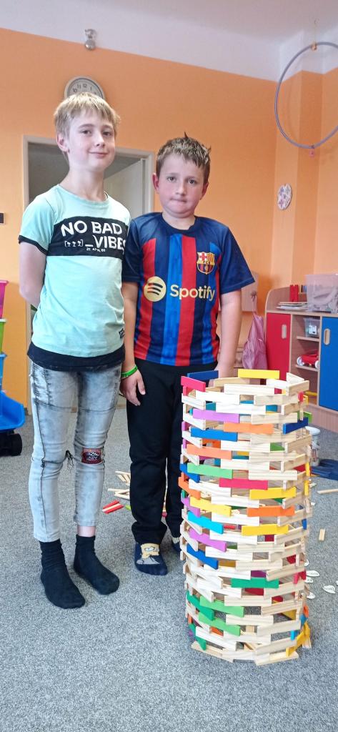 Když prší zkouší děti postavit věž, která je větší než oni