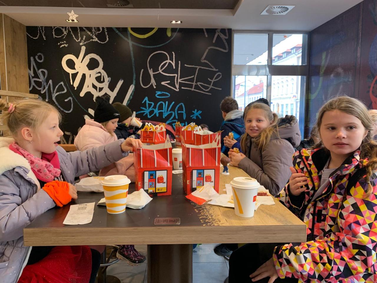 Sváteční období adventu jsme si vychutnali nejen ve škole během prosincových akcí, ale i výjížďkou na adventní trhy na náměstí v Českých Budějovicích. První, druhá a čtvrtá třída sem natěšeně vyrazila ve středu 17. prosince. Celé náměstí bylo vkusně nazdobeno, vůně dobrot se linula ze stánků, viděli jsme ruské kolo, bruslaře na ledové ploše, flašinetáře s flašinetem nebo jsme si tiše mohli přát přání pod obrovským vánočním stromem. Brzy se ozval hlad, a tak jsme se přesunuli do místního restauračního zařízení, kde jsme se občerstvili dobrotami dle vlastního výběru. Jihočeská metropole má mj. pěkné planetárium, do kterého jsme se po obědě vypravili. V pohodlných křeslech jsme poslouchali zajímavý výklad paní lektorky a hodinu pozorovali oblohu promítanou nad našimi hlavami. Bylo to úžasné a my se budeme těšit na další výpravy za poznáním.