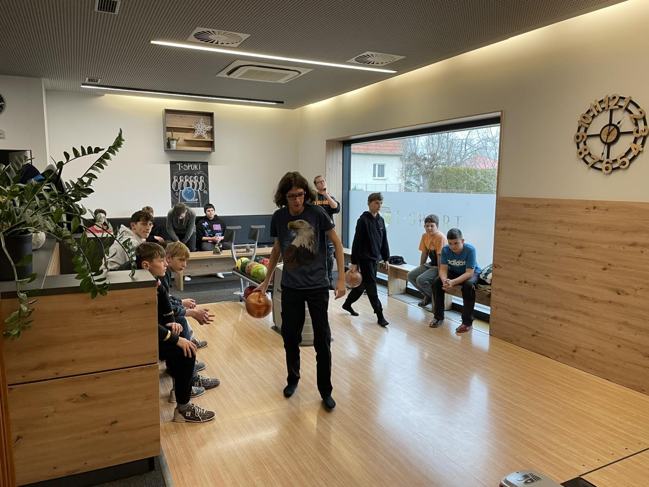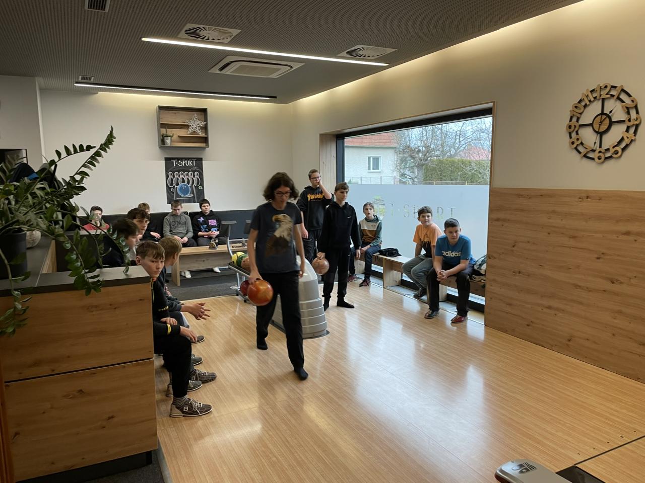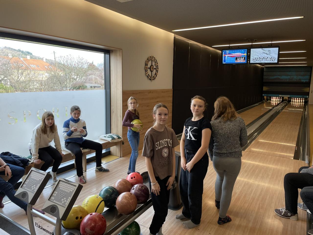 V posledních předvánočních hodinách Tv jsme vyrazili do Votic vyzkoušet na popud dětí netradiční sportovní disciplínu bowling. Vyrazili jsem tak nejprve v úterý 17. 12. s šestým ročníkem, ve středu 18. 12. s děvčaty a nakonec ve čtvrtek 19.12. v bloku s chlapci. Některým to šlo od ruky a tak naházeli za 10 kol i lehce pod sto bodů, což samozřejmě neušlo odměně v podobě hezké známky. Nejdůležitější ale je, že jsme my všichni i zařízení na rovnání kuželek naše hodiny přežili ve zdraví, protože někteří se tak těšili na svůj odhoz, že ani nečekali, než jim automat kuželky srovná.