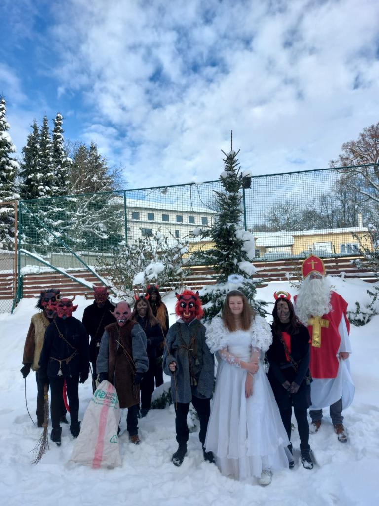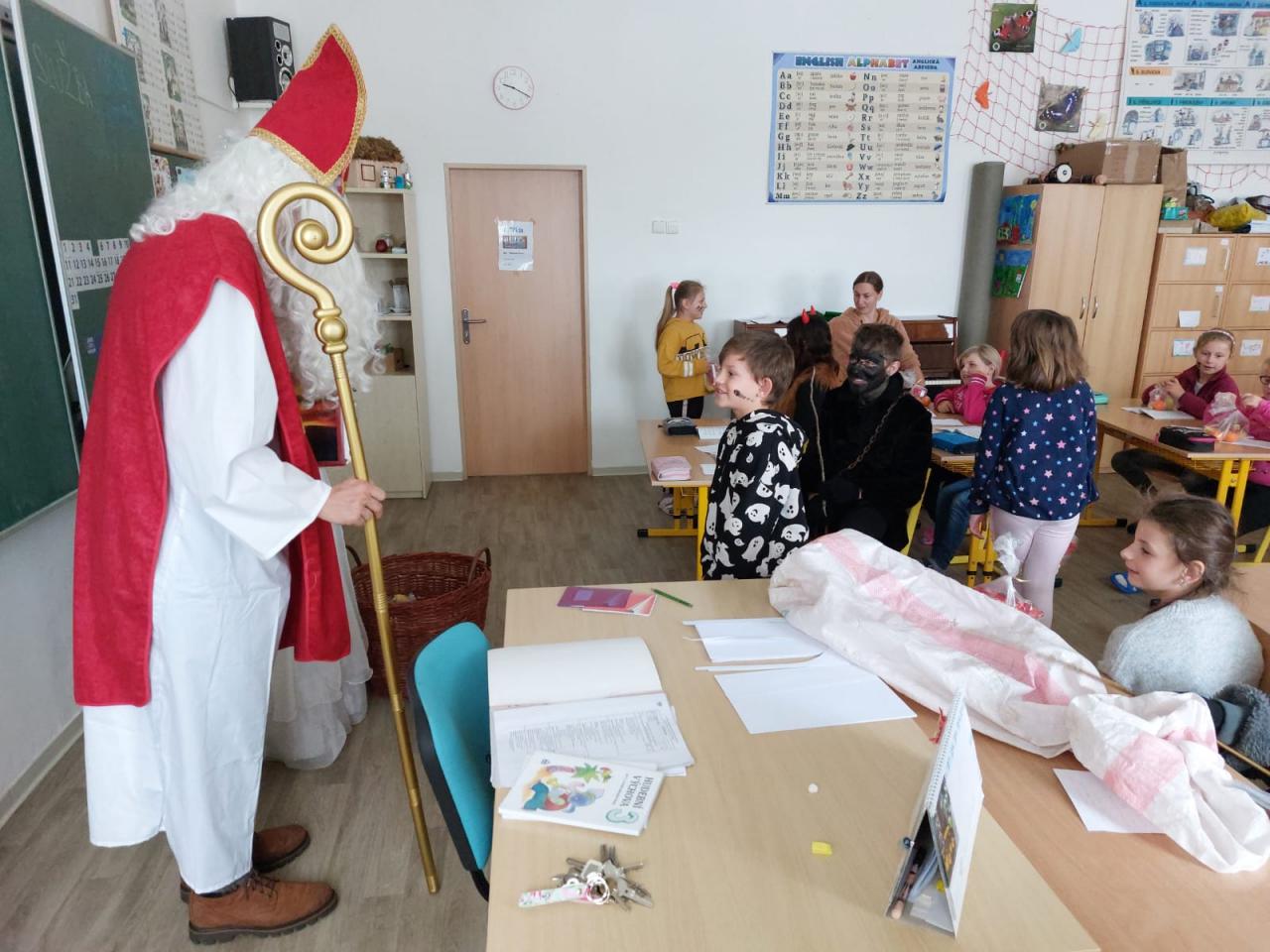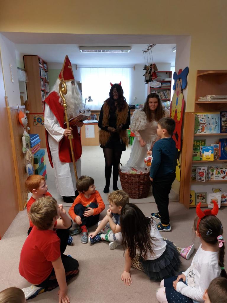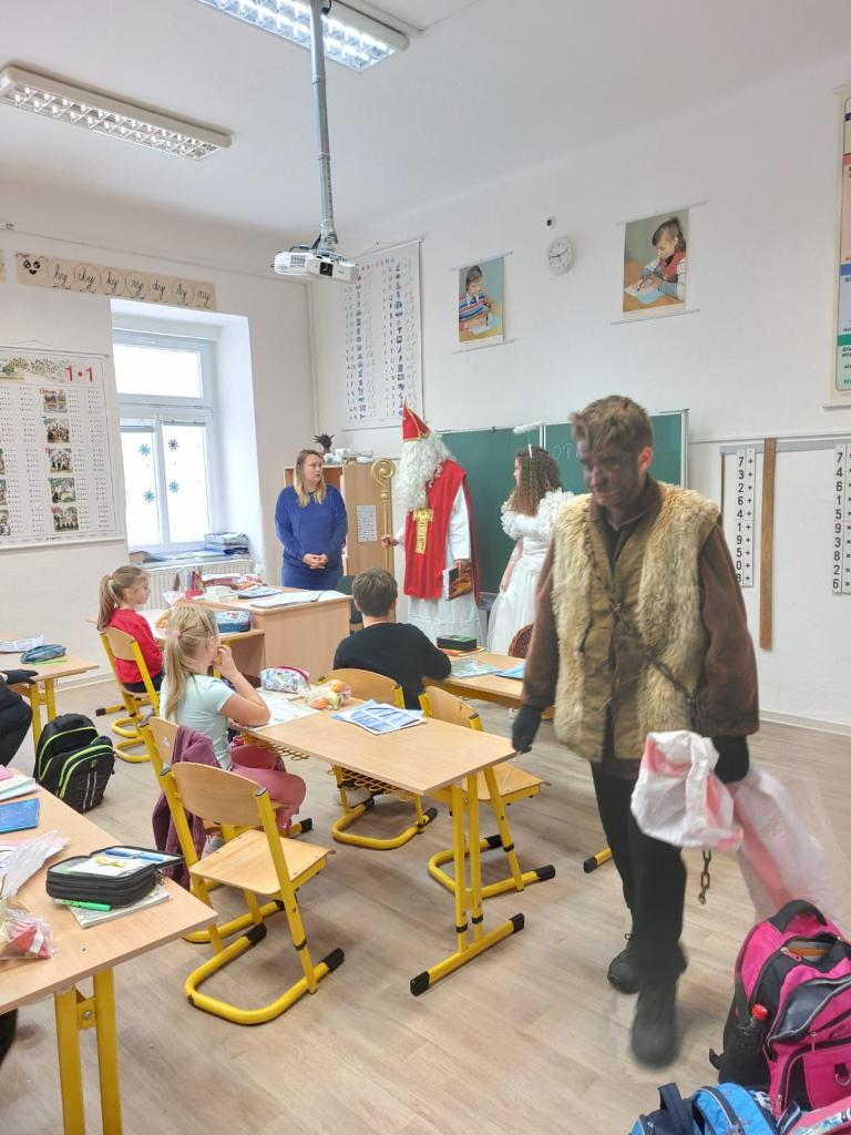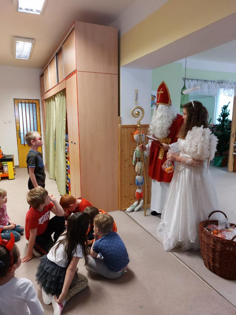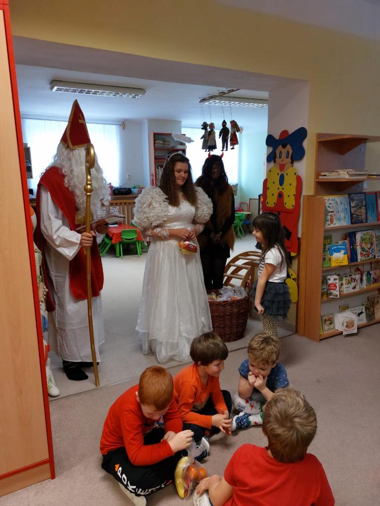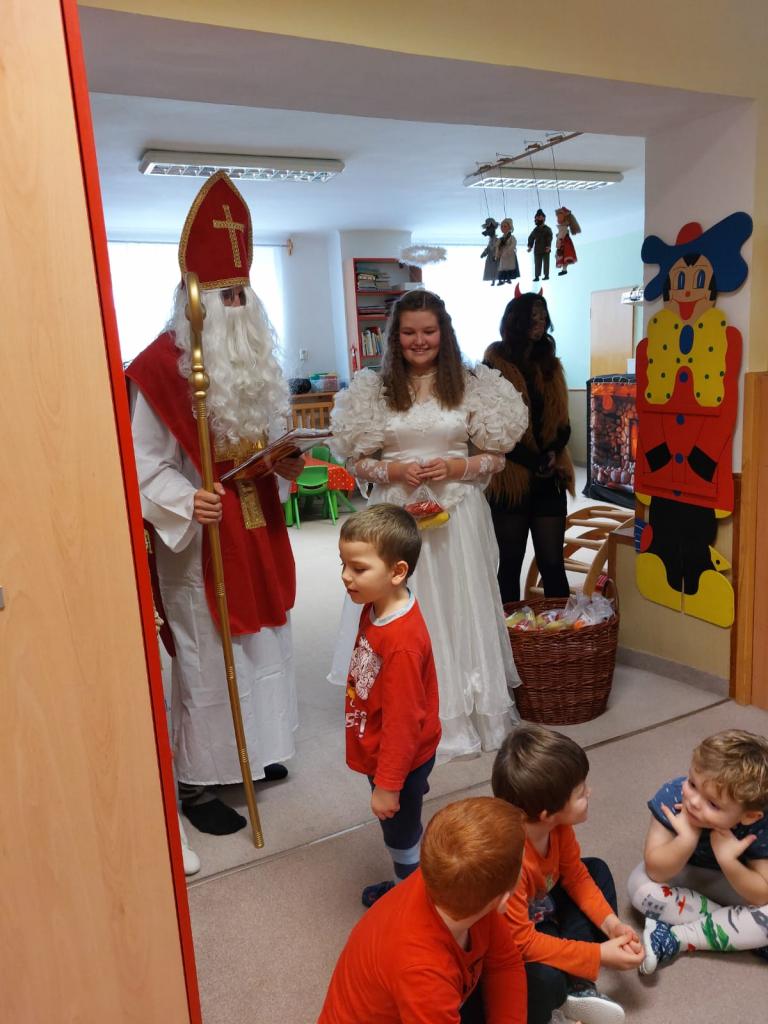 Jako již tradičně chodil u nás ve škole sv. Mikuláš se svou družinou. Zavítali do všech tříd ZŠ i mateřinky, aby zjistili, kdo se jak po celý rok choval. Naštěstí žádný z hříchů našich žáků nebyl natolik závažný, aby muselo být dítko odneseno, a tak zůstali všichni žáci ve svých lavicích. Po přednesení básní či zazpívání, byli všichni odměněni balíčky z rukou anděla. Družina zavítala i do sborovny či jídelny, ani zde se pytle nenaplnily, a tak museli čerti odejít s prázdnou.