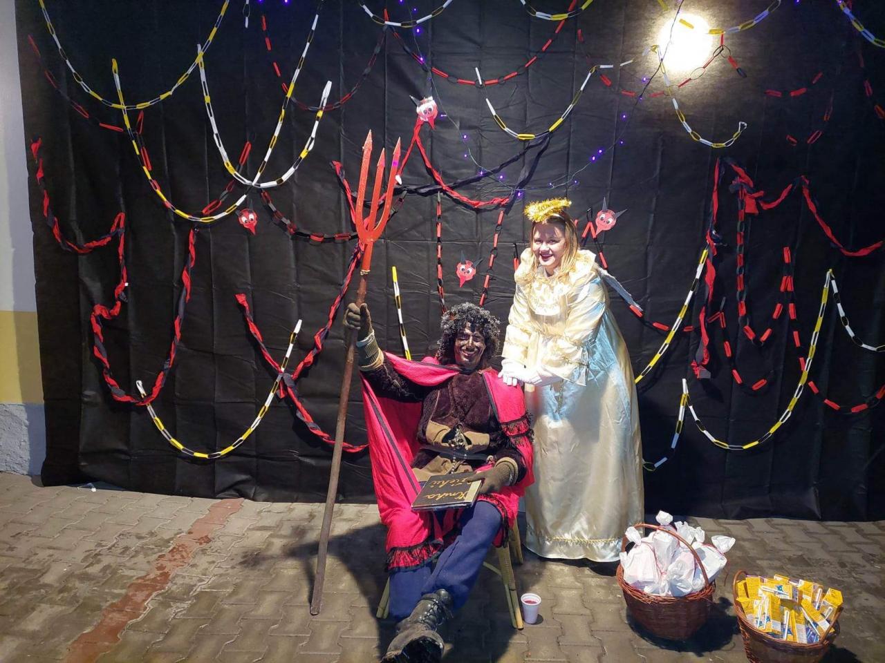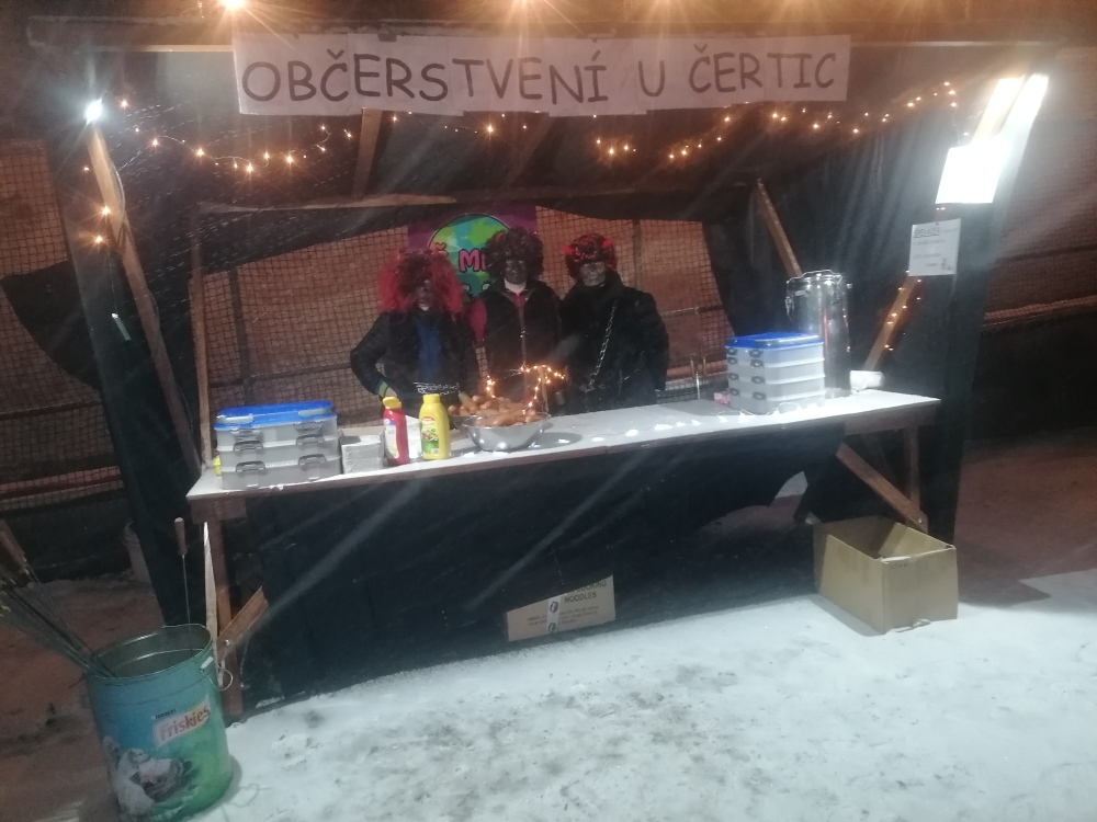 Hned na začátku všichni návštěvníci prošli bránou do pekla, děti dostaly měšec, do kterého ukládaly čertovské groše, které byly odměnou za splnění pekelných úkolů. V disciplínách skákání v pytli, slalomu s míčkem, hodu na cíl, čertovědě a skládání obrázků je doprovázeli pekelníci. Čertovské groše si směnily spolu s přednesem básničky u Lucifera za balíček se sladkostmi a ovocem. Anděl všemu přihlížel! Ba i pohladil. Dále si děti opekly vuřty nad pekelnými ohni a další čertice se postaraly o výborné občerstvení. Děkujeme všem sponzorům, kteří na tuto akci přispěli svými dary.