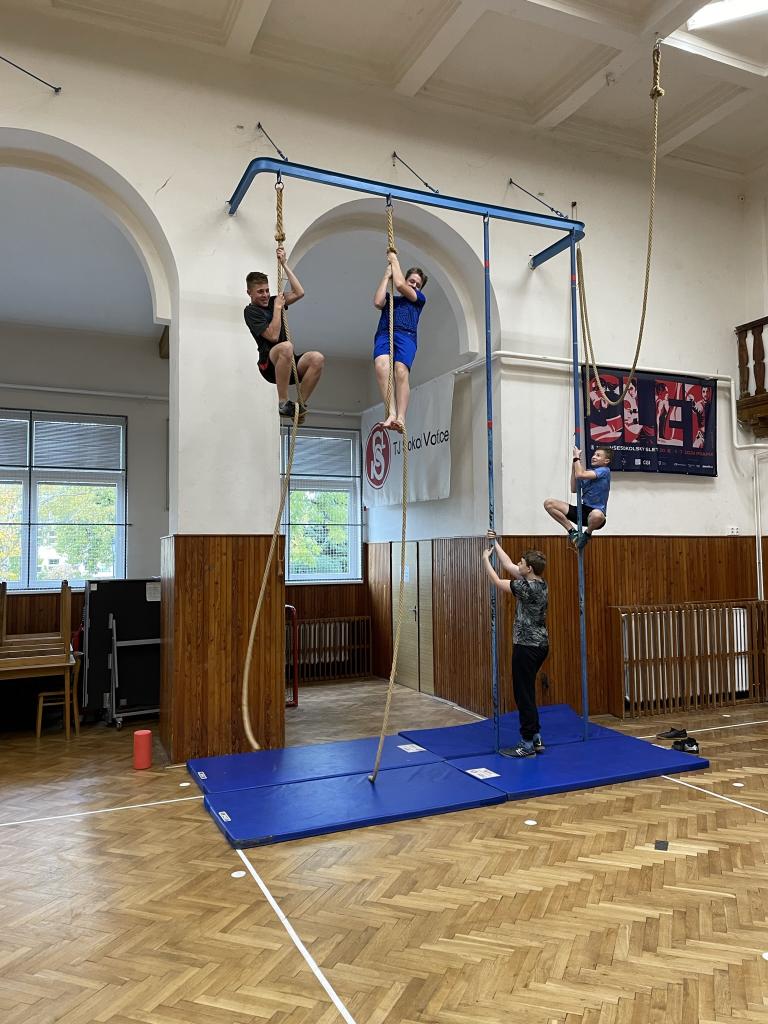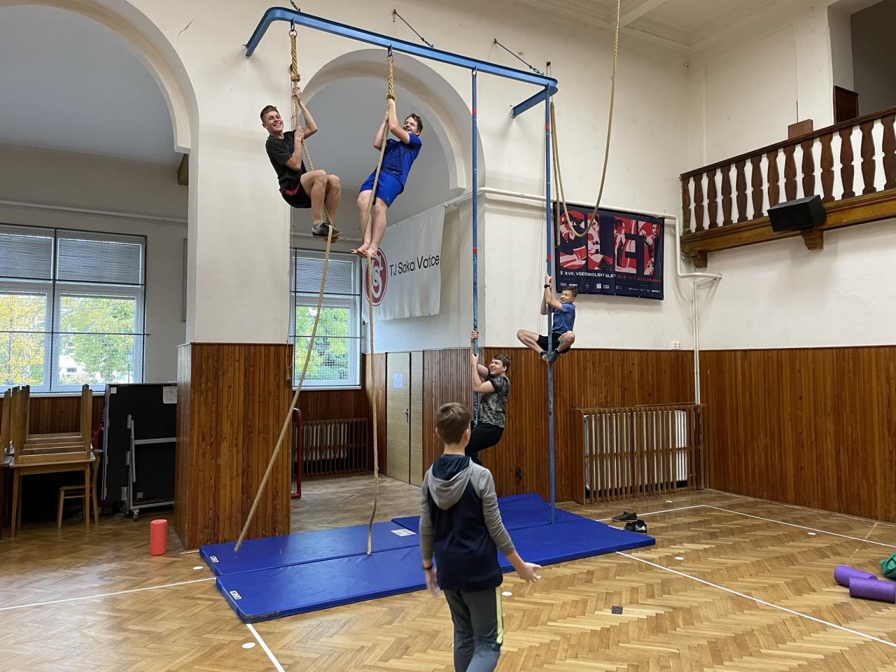 Dnes jsme opět, a rozhodně ne naposled, navštívili v rámci hodin tělesné výchovy 6., 7., a 9. ročníku chlapců votickou sokolovnu. Zde jsme si po důkladném zahřátí obratnostní hrou a protažení s rolling válci vyzkoušeli své dovednosti ve šplhu a na gymnastických kruzích. Pro 6. ročník se jednalo o premiéru, přesto to nedopadlo nejhůře a výkony byly poměrně dobré. Velmi mne pak překvapili sedmáci a devátý ročník, pro které je již šplh rutinou a kruhy věcí ne zcela neznámou. Jsem rád, že se již naučené fyzické dovednosti zachovaly a pouze se více rozvijí. Za zaslouženou odměnu jsme si pak společně zahráli oblíbený florbal. Děkuji všem žákům za jejich kladný přístup k hodinám TV a těším se na další možná i tříhodinovku cvičení ve Voticích.