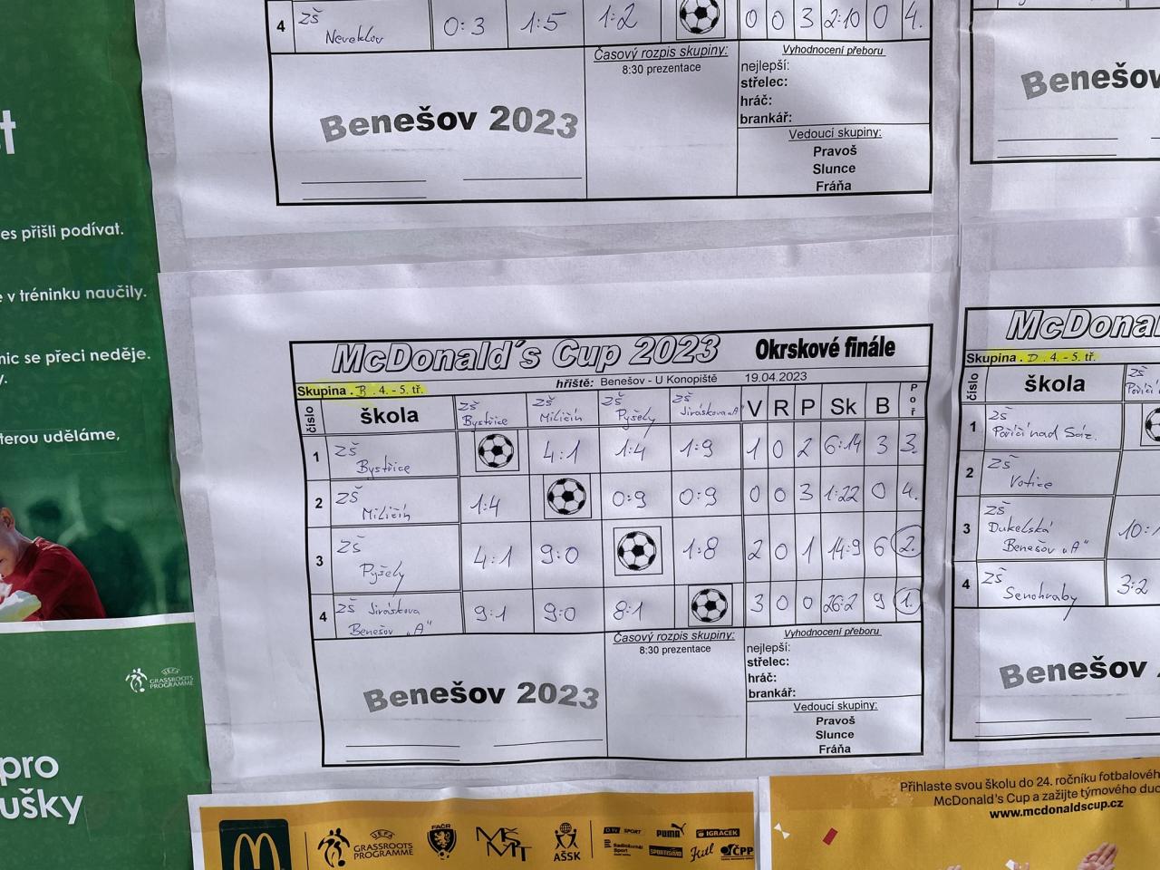 Ve středu 19. dubna 2023 se náš školní výběr zúčastnil oblastního kola fotbalového turnaje Mc Donald cup v Benešově. Ráno se sice zdálo, že nám počasí odehrát nedovolí, ale v poledne byl již krásný jarní den.