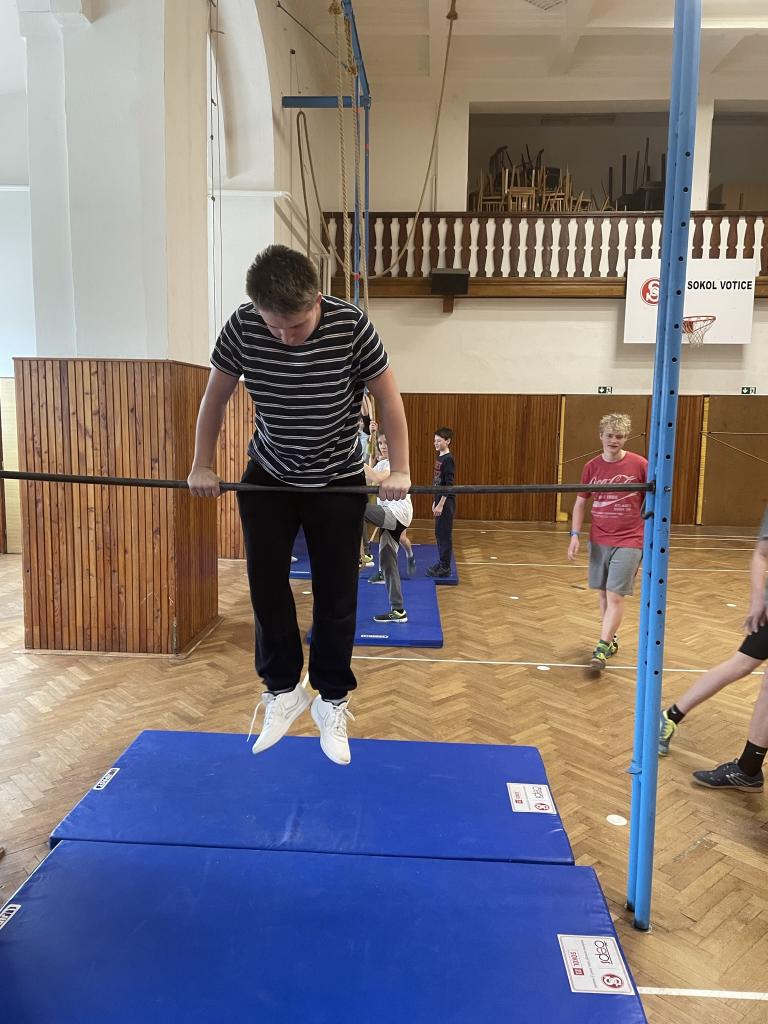 V pátek 10. 2. žáci šesté, osmé a deváté třídy opět cvičili ve Voticích. I přesto, že jsme zde byli již potřetí, žáci stále objevovali pro ně nové náčiní a nářadí. Tentokrát jsme kromě tradičního šplhu o tyči a na laně vyzkoušeli gymnastickou hrazdu a jóga válce vhodné pro kompenzační cvičení po sportovním výkonu. Poté jsme si zahráli ještě mezi žáky velmi populární míčovku - florbal.