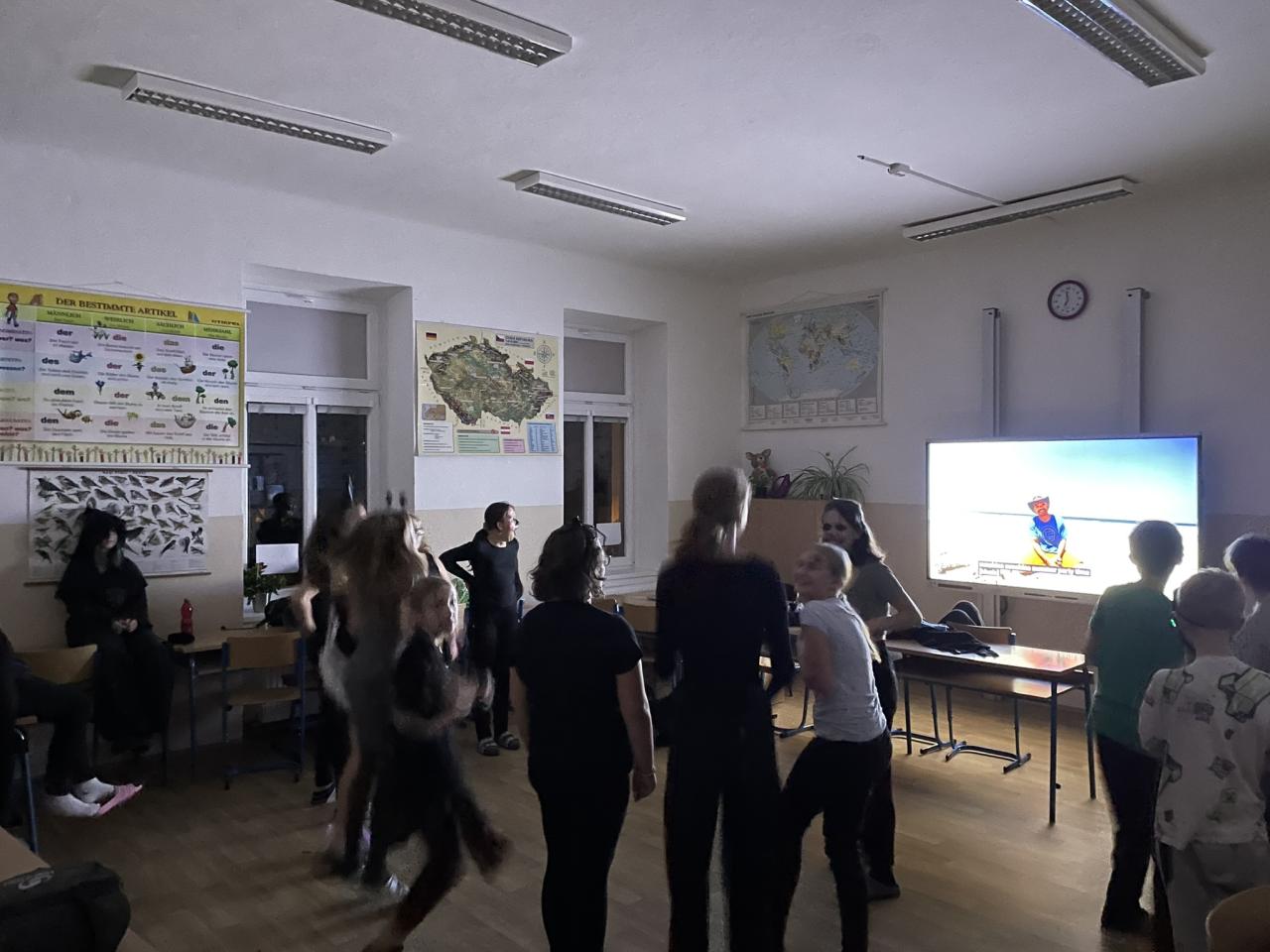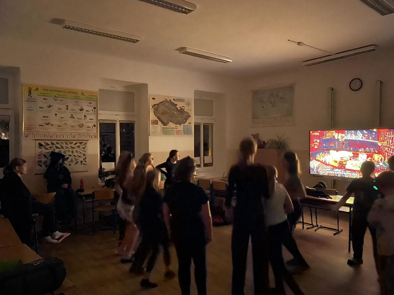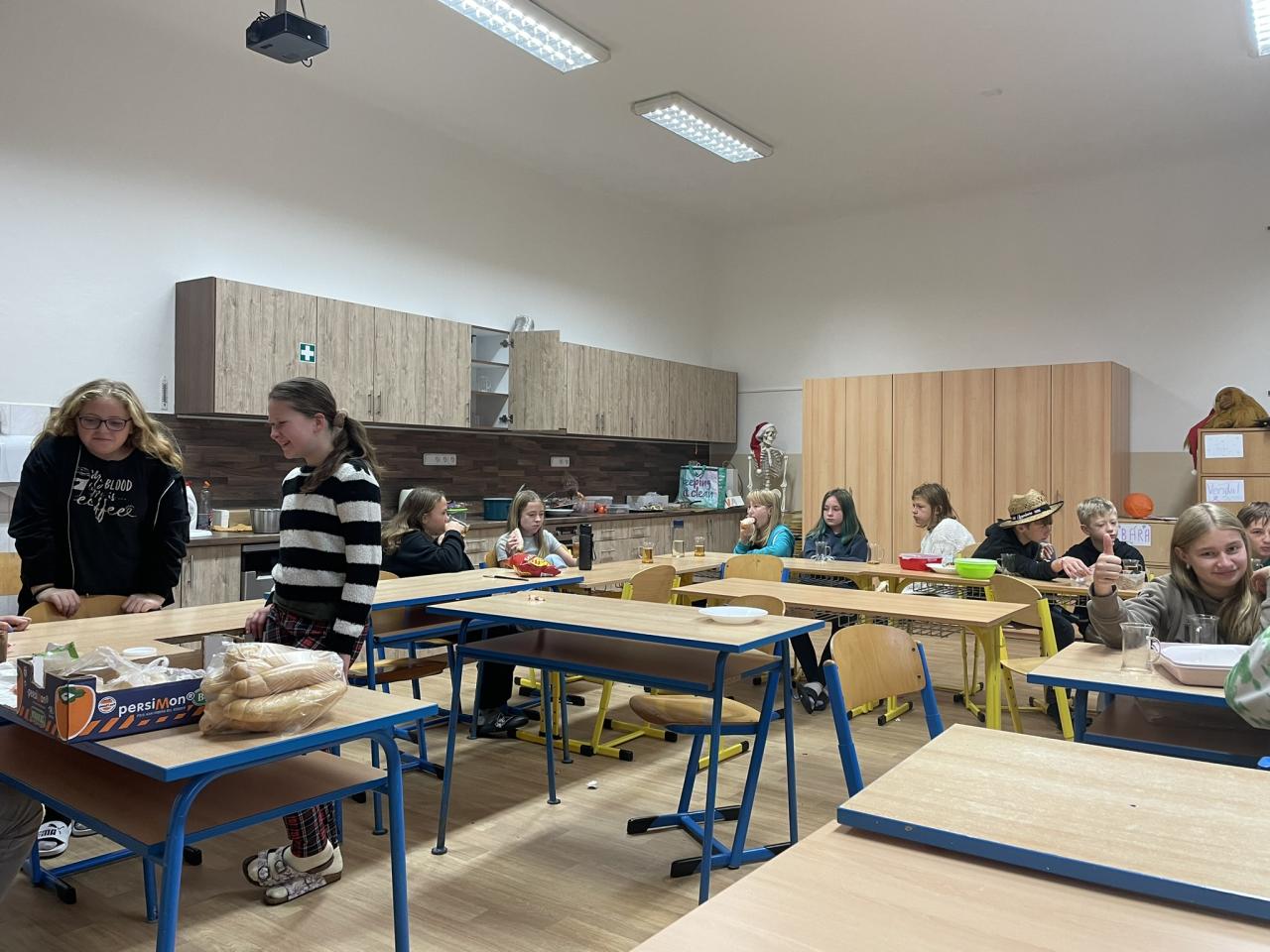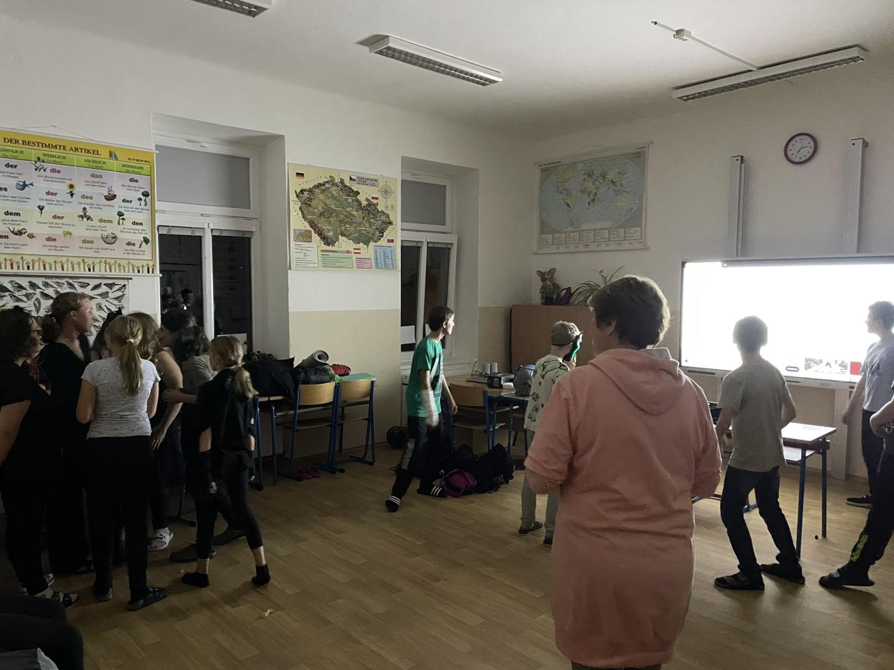 Ve čtvrtek 31.10. se uskutečnila na přání dětí Halloweenská třídnická hodina s přespáním ve škole. Už samotné přespání bylo pro většinu velký zážitek, protože poznat školu tak nevšedně tichou, udělat si kuchyň, obývák i ložnici ve své třídě se nestává každý den. K Halloweenu patří samozřejmě masky, v kterých jsme se na 18:00 večerní sešli v šatnách. Některé byly opravdu nápadité až děsivé, takže samozřejmě nechybělo vyhodnocení té nejlepší. Tou se stala žákyně 7. ročníku N. Imramovská za svého „Jokera“. Hlasování o nejlepší kostým však ještě předcházela společná večeře a diskotéka, kdy byly děti sami sobě Dj´s a každý si mohl pustit tu svou oblíbenou. Před diskotékou jsme si ještě stihli říct, co to vlastně Halloween je, jaké se k němu vážou zvyky a jak na něj pohlíží v jiných zemí. Pohoštění, které si žáci připravili doma, stačilo na večeři, večerní film i snídani. Společně jsme si uvařili ještě i pečenou dýňovou polévku, která se nám moc povedla. Chybět nemohla samozřejmě hra na schovávanou, kdy jsme celou školu zhasli a vyjma sborovny, ředitelny, záchodů sklepa a půdy se mohli žáci ukrýt kdekoliv na škole. Pro velký úspěch se hrálo celkem asi 7 kol. Děkujeme pí. učitelce Martině Trachtové za nevšední ozvláštnění jednoho kola, kdy děti decentně překvapila ve svém strašidelném kostýmu. Na závěr večera jsme si pustili halloweenský animák Coralina, jenž jsme vydrželi až do jeho konce o půlnoci. Dívky ještě netradičně po překlenutí půlnoci popřály jedné z žákyň a šlo se spát, abychom byli připraveni na páteční výuku. Ráno jsme po snídani, kterou nám obstarala pí. učitelka Kocourková, dali třídy opět do pořádku a těšili se z nevšedně prožitého večera ve škole.