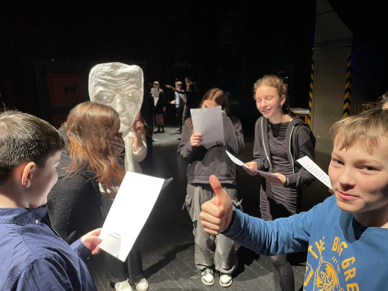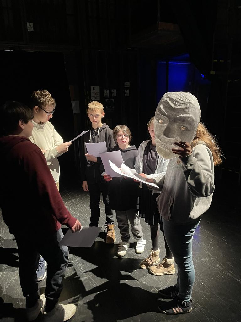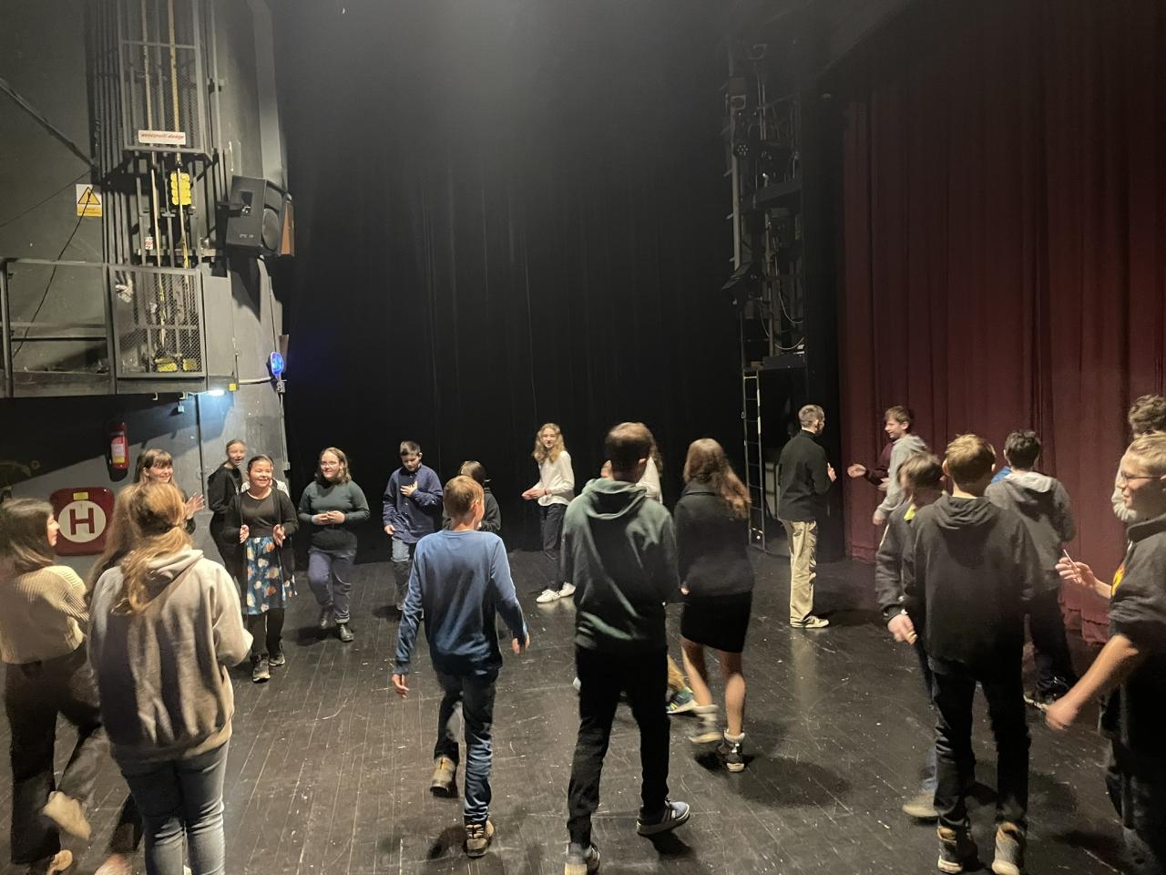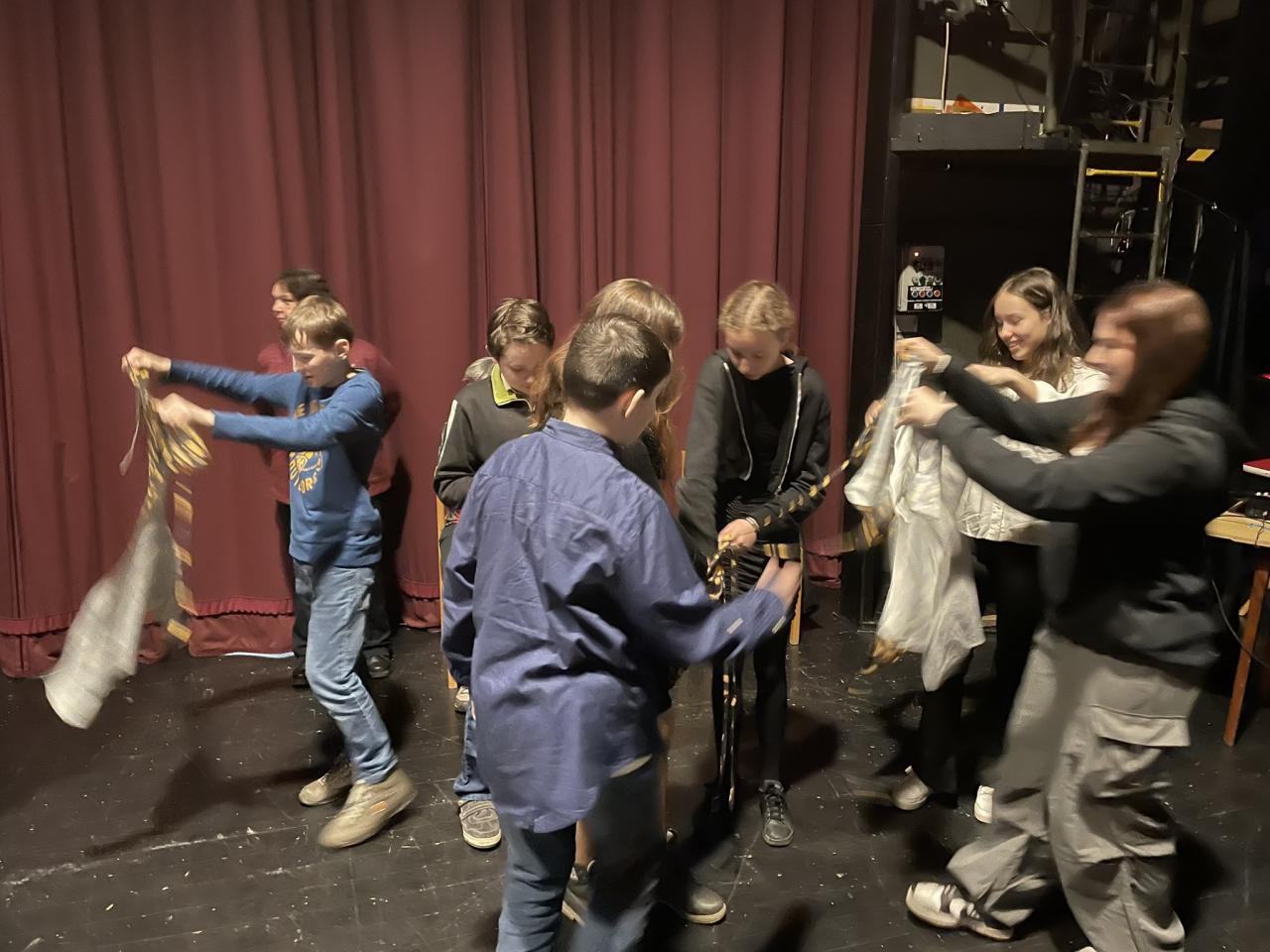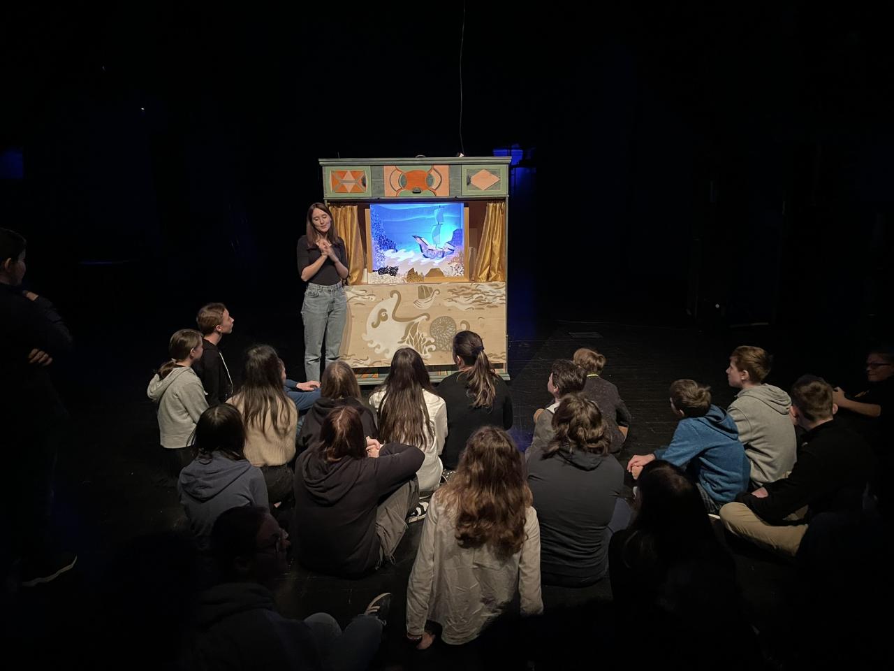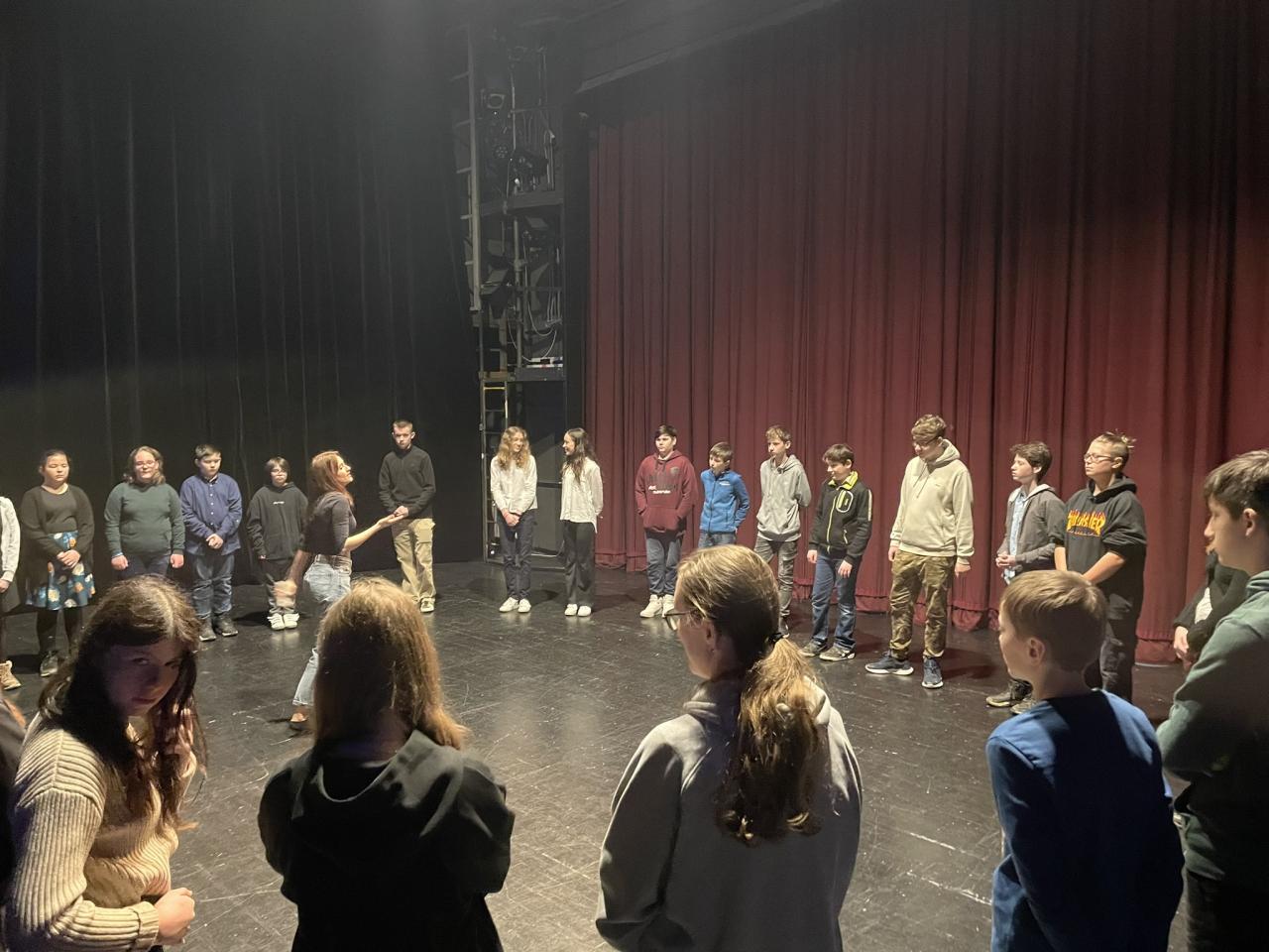 Ve čtvrtek 22. 2. 2024 se za kulturou vydalo 27 žáků z šesté až osmé třídy. Věděli, že nezhlédnou „klasickou“ divadelní hru, ale dozvědí se něco o tom, jak vzniklo a vyvíjelo se divadlo. Program je určený pro jednu skupinu žáků, takže jsme byli v celém divadle sami. Už to bylo zvláštní. Zajímavý byl i vstup – do sálu jsme vešli postranními dveřmi a pokračovali na jeviště, vzápětí se za námi zatáhla opona. Všechny nás to překvapilo.
