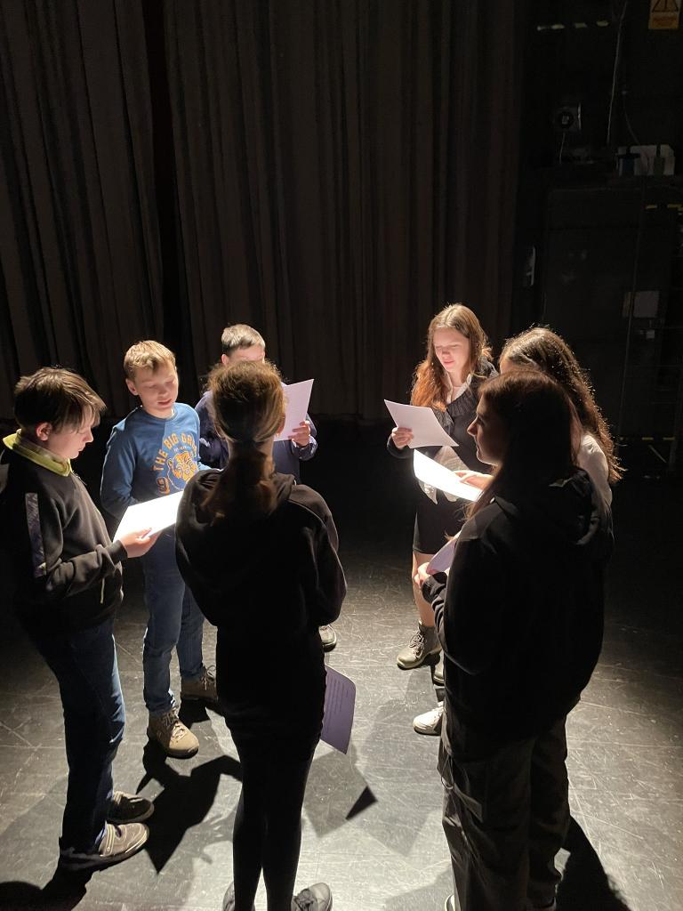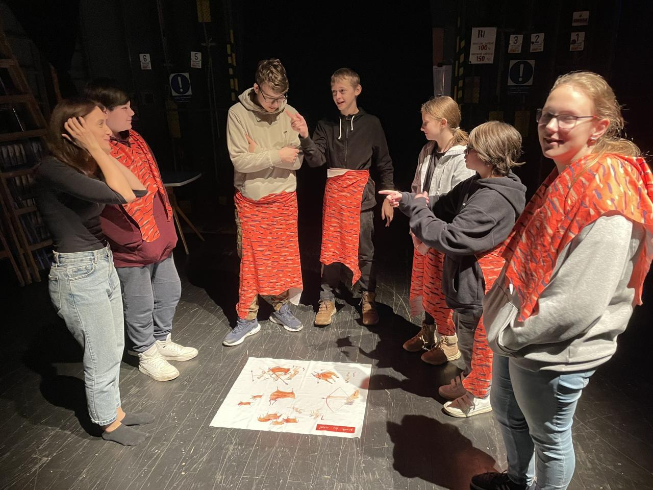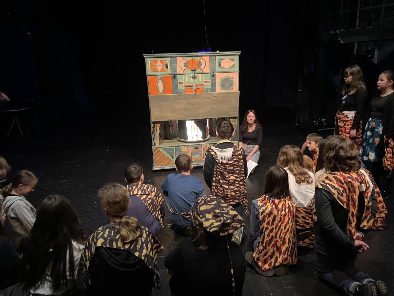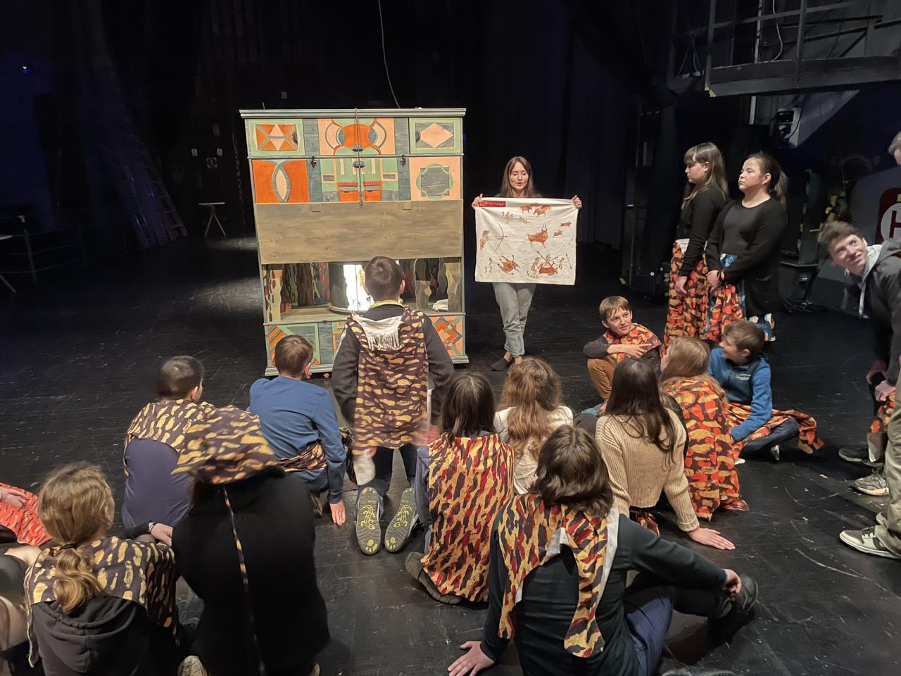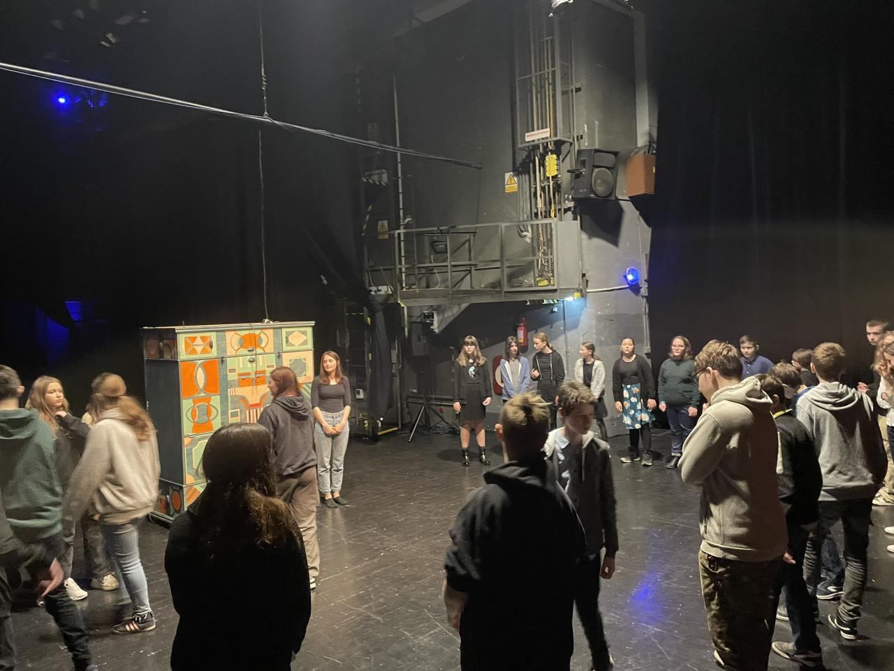 Ve čtvrtek 22. 2. 2024 se za kulturou vydalo 27 žáků z šesté až osmé třídy. Věděli, že nezhlédnou „klasickou“ divadelní hru, ale dozvědí se něco o tom, jak vzniklo a vyvíjelo se divadlo. Program je určený pro jednu skupinu žáků, takže jsme byli v celém divadle sami. Už to bylo zvláštní. Zajímavý byl i vstup – do sálu jsme vešli postranními dveřmi a pokračovali na jeviště, vzápětí se za námi zatáhla opona. Všechny nás to překvapilo.