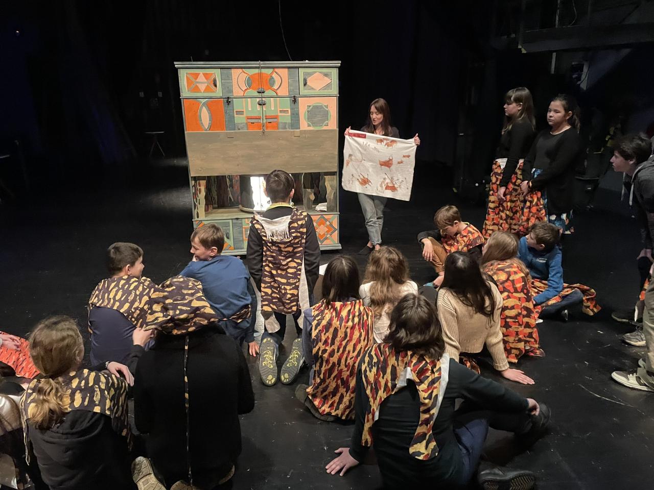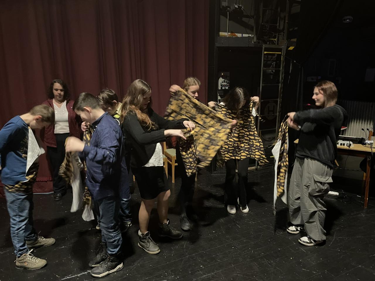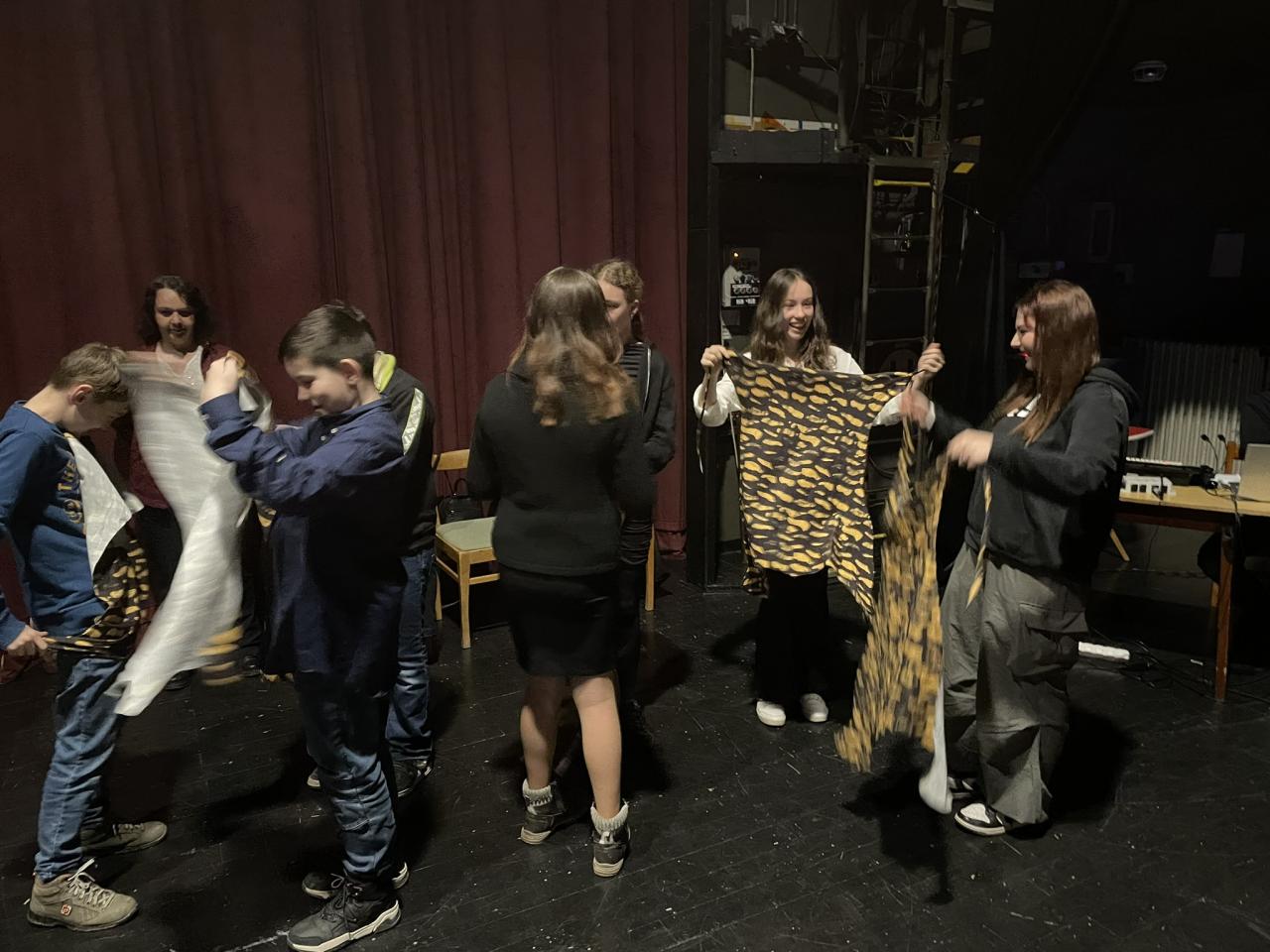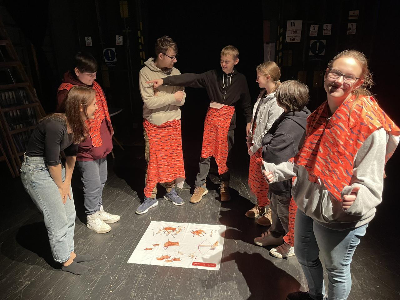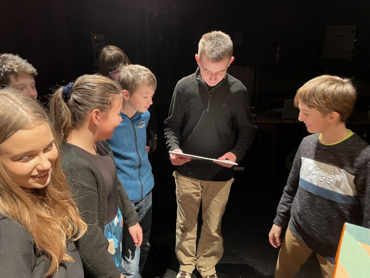 Ve čtvrtek 22. 2. 2024 se za kulturou vydalo 27 žáků z šesté až osmé třídy. Věděli, že nezhlédnou „klasickou“ divadelní hru, ale dozvědí se něco o tom, jak vzniklo a vyvíjelo se divadlo. Program je určený pro jednu skupinu žáků, takže jsme byli v celém divadle sami. Už to bylo zvláštní. Zajímavý byl i vstup – do sálu jsme vešli postranními dveřmi a pokračovali na jeviště, vzápětí se za námi zatáhla opona. Všechny nás to překvapilo.