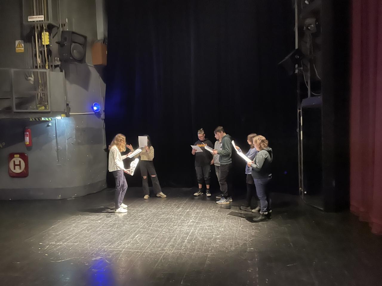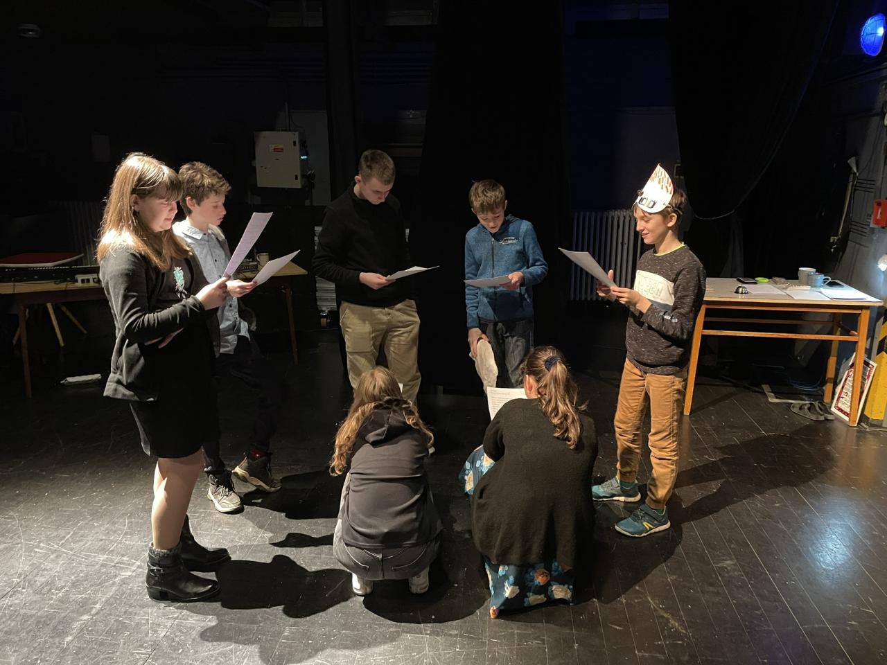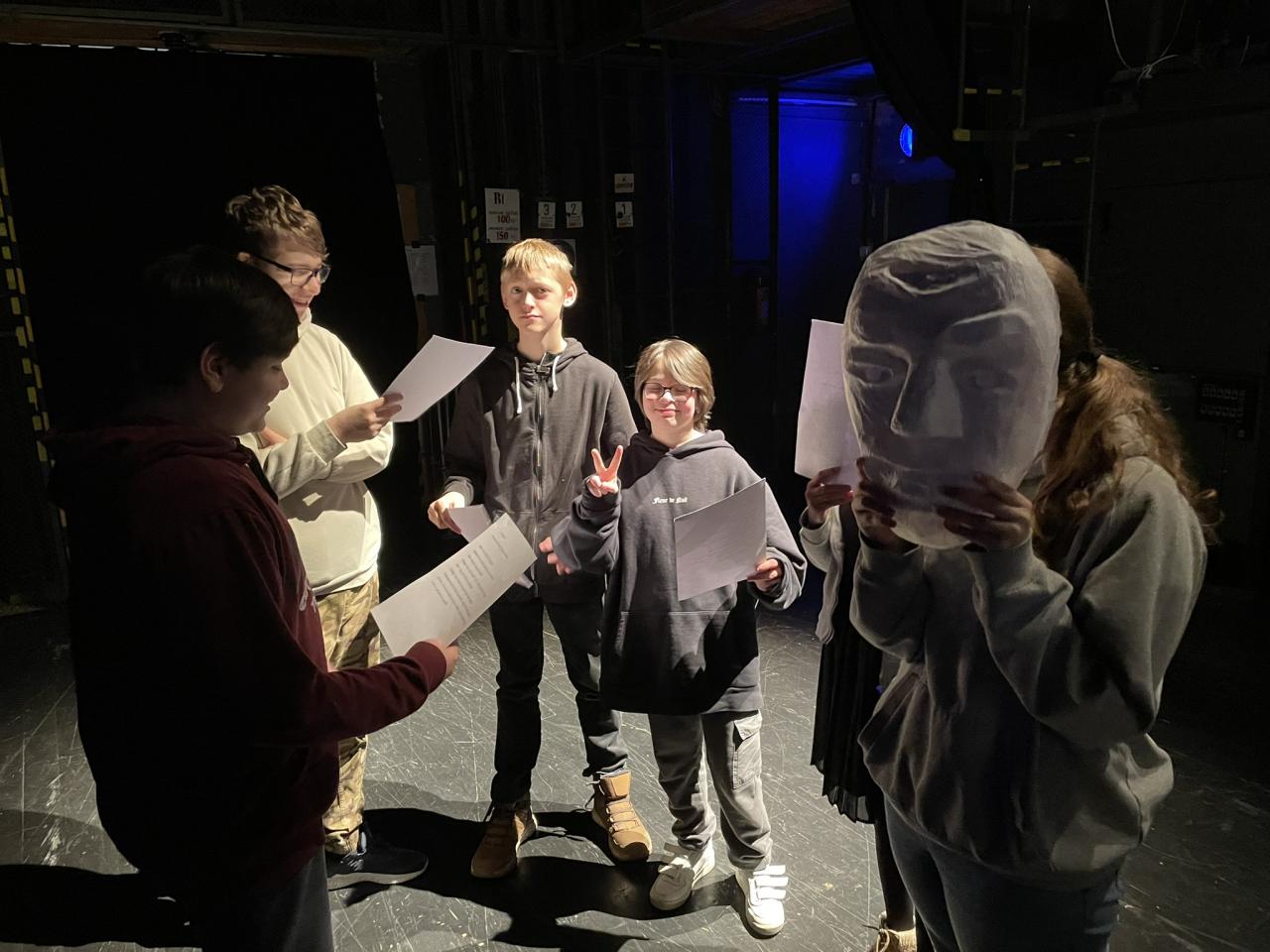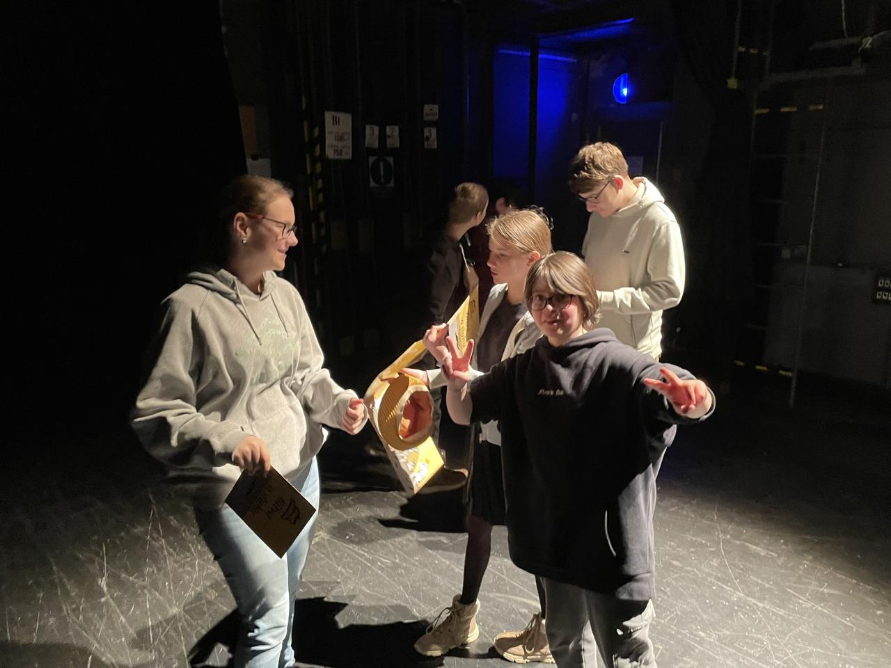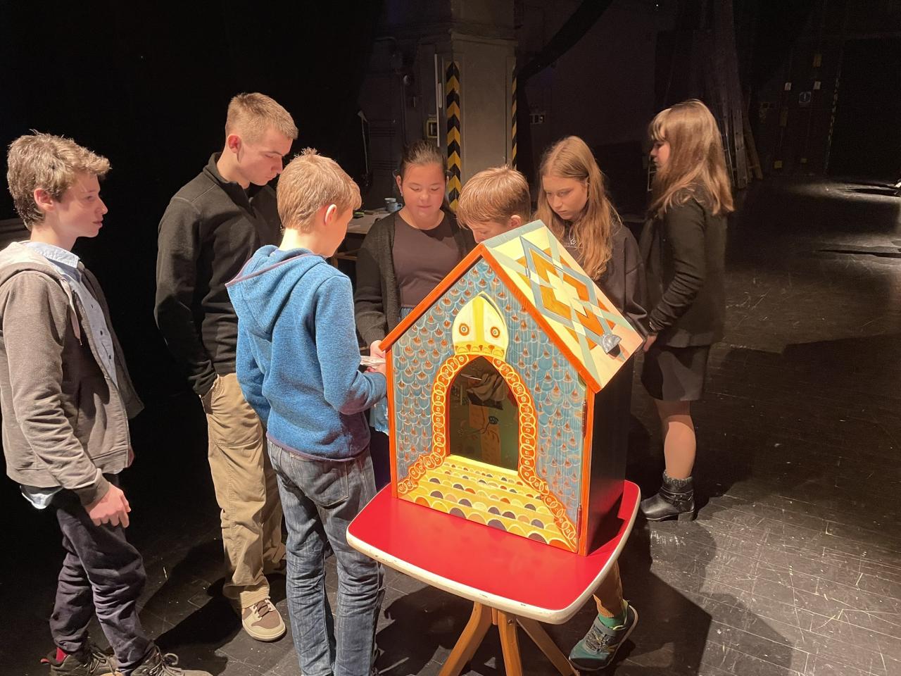 Ve čtvrtek 22. 2. 2024 se za kulturou vydalo 27 žáků z šesté až osmé třídy. Věděli, že nezhlédnou „klasickou“ divadelní hru, ale dozvědí se něco o tom, jak vzniklo a vyvíjelo se divadlo. Program je určený pro jednu skupinu žáků, takže jsme byli v celém divadle sami. Už to bylo zvláštní. Zajímavý byl i vstup – do sálu jsme vešli postranními dveřmi a pokračovali na jeviště, vzápětí se za námi zatáhla opona. Všechny nás to překvapilo.