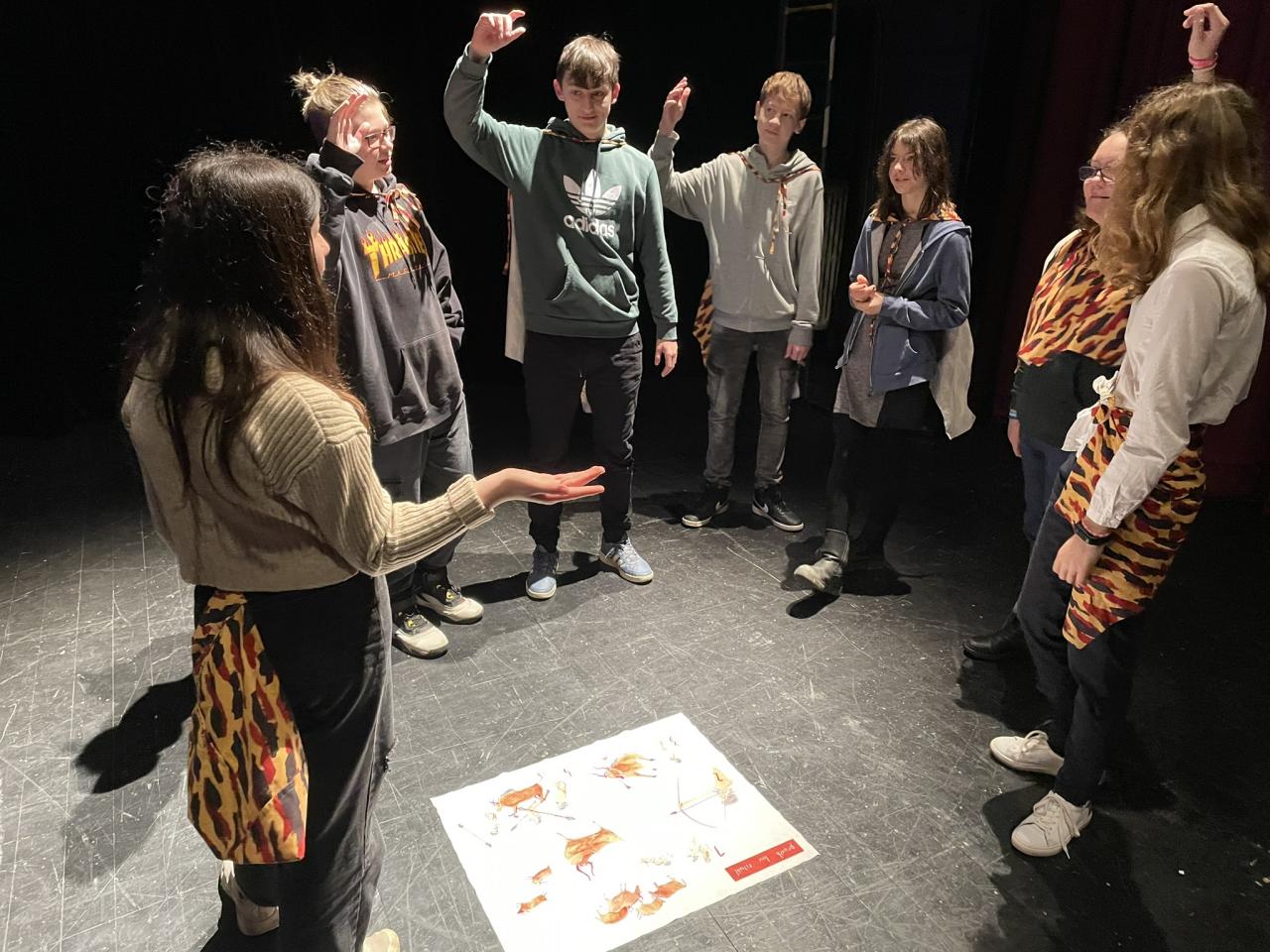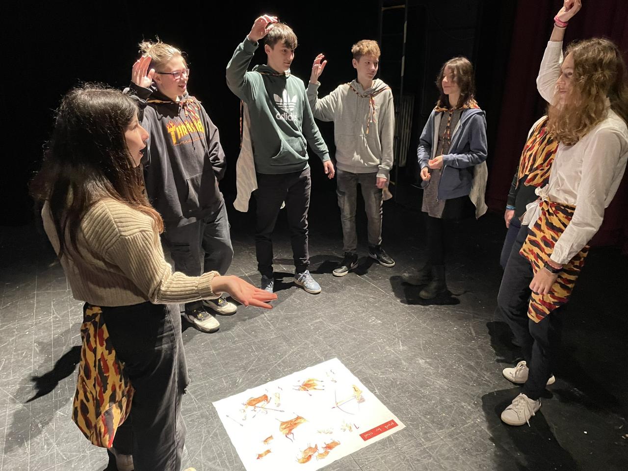 Žáci byli po úvodní společné pohybové aktivitě rozděleni lektorkou do čtyř skupin a začali se seznamovat s nejvýznamnějšími milníky ve vývoji divadla. Zahráli si pravěký rituální tanec, antickou hru s maskami nebo středověké divadlo s dřevěnými boudami. Někdo měl přidělenou roli, jiný byl součástí chóru, spravedlivě se střídali. Docela náročné bylo předvést renesanční improvizační frašku, ale všichni to zvládli a nikdo nestál stranou. Po počátečních náznacích zlobení se všichni žáci zabrali do akce a vydrželi spolupracovat až do konce dvouhodinového programu. Vřele ho doporučujeme i ostatním.