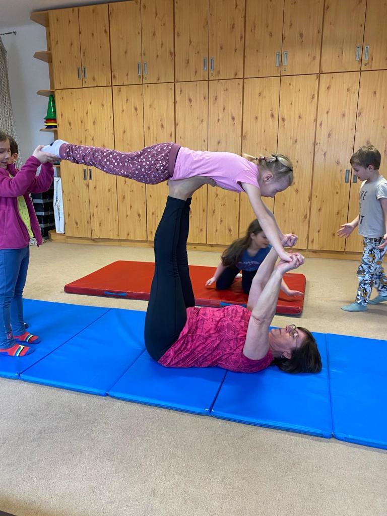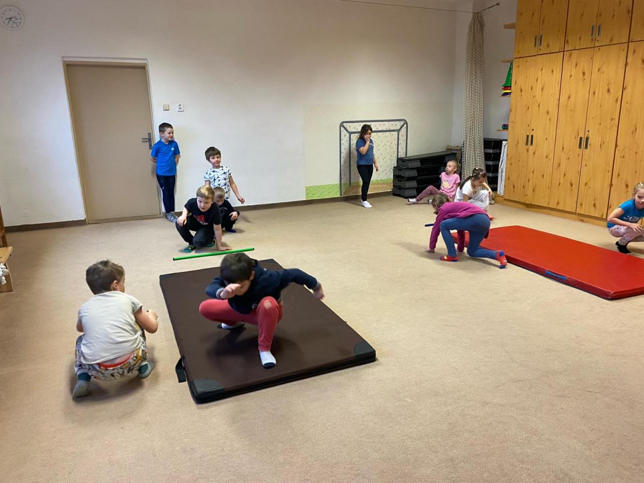 Minulý týden si naši nejmenší žáci vyzkoušeli s paní ředitelkou kalistenické cvičení v gymnastickém sále. Jednalo se zejména o silově-rovnovážné cviky s prvky párové gymnastiky. Výkony některých byly vzhledem k věku až zarážející. Čím dříve se děti naučí ovládat své tělo a svaly, tím méně budou náchylné ke špatným pohybovým vzorcům či úrazům při sportu.