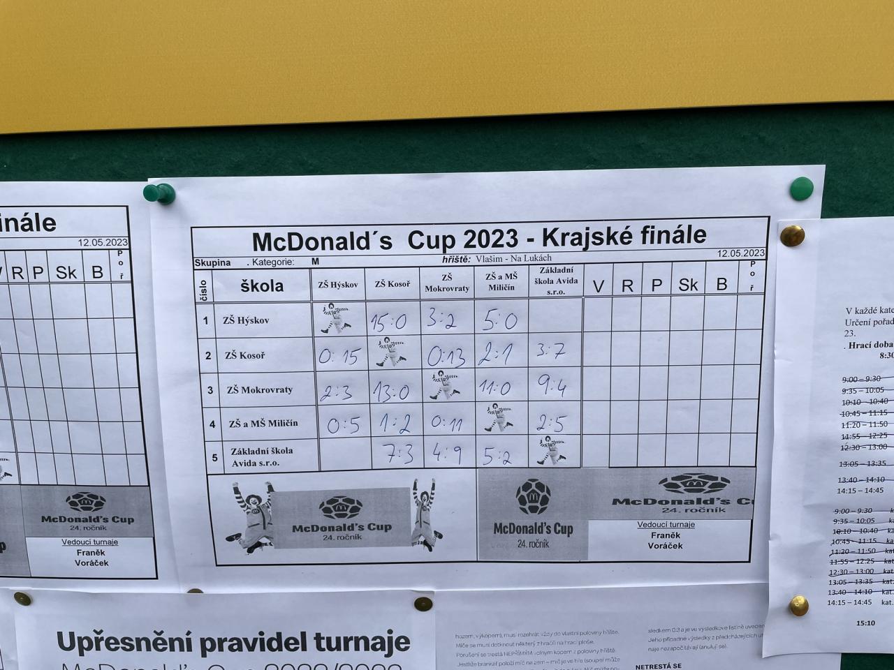 V pátek 12. 5. jsme vyrazili reprezentovat naši školu na krajské kolo fotbalového turnaje Mc Donald cup do Vlašimi. Počasí nám opět přálo, takže nás čekal příjemný den plný fotbalu. O občerstvení se nám stejně jako o odvoz postaral pan školník, za což mu, stejně jako městu, za zapůjčení hasičské dodávky, děkujeme! Celkem jsme odehrály čtyři napínavé zápasy a až na jeden se jednalo o vyrovnané souboje s dalšími malotřídkami. Tato kategorie byla totiž uvedena na turnaji vůbec poprvé. Opět nám chyběli dva hráči a bohužel jsme hned v prvním zápase narazili na mnohem silnějšího soupeře, což nalomilo naši morálku do následujících utkání. Další zápasy jsme však i tak odehráli vždy se ctí a pokaždé jsme se vešli do pěti obdržených gólů! Na turnaji jsme i zaskórovali, a to celkem třikrát.