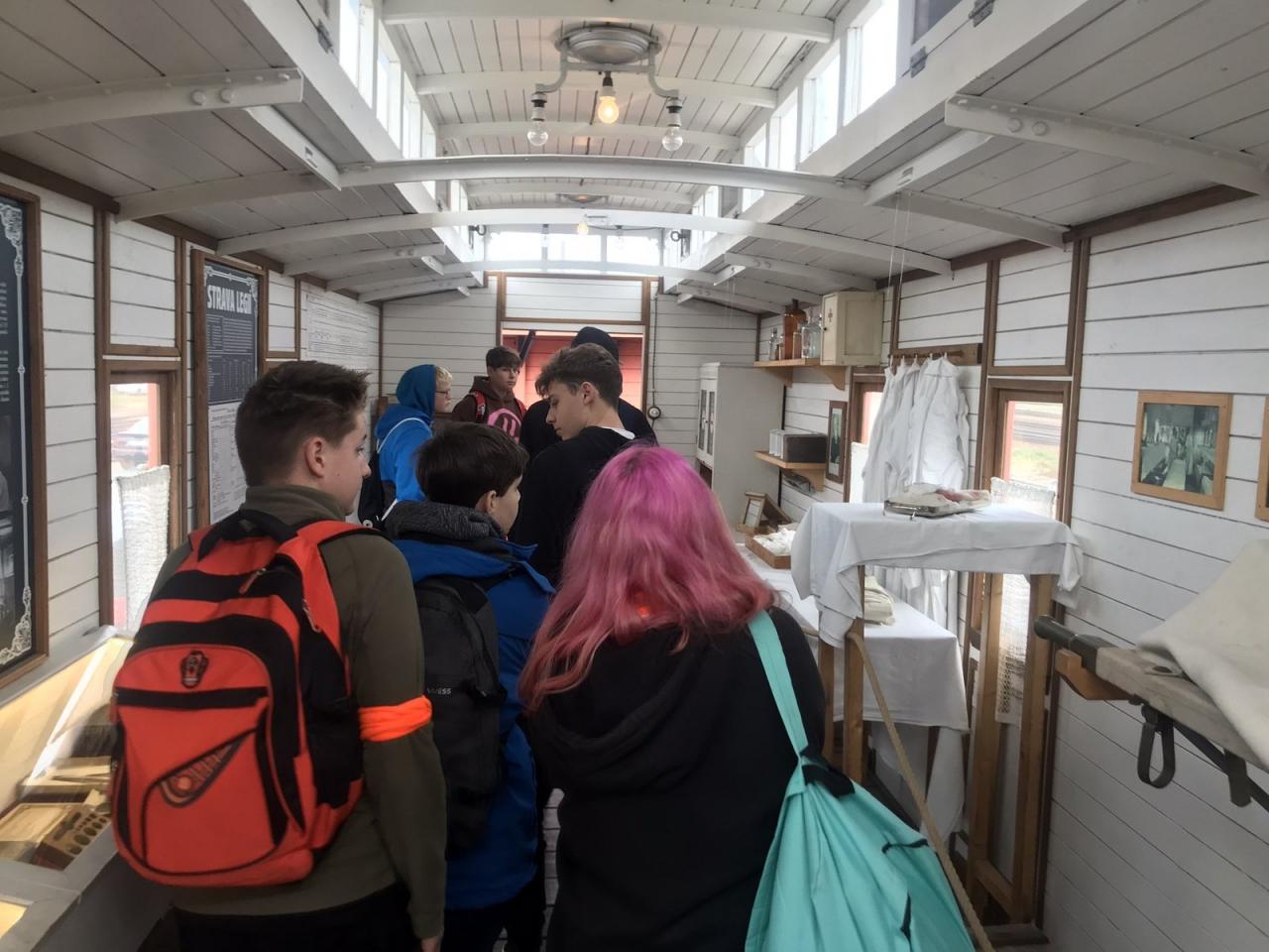 Vagóny byly velmi zajímavé. Mně se asi nejvíce líbil poslední se zbraněmi, kde nám byly poskytnuty informace o zbraních, které se v té době používaly. Některé z nich se prý používají až dodnes, třeba kulomet Maxim. Důležitý v té době byl také zdravotnický vagón, kde nám řekli, v jakých podmínkách a čím se operovala zranění.