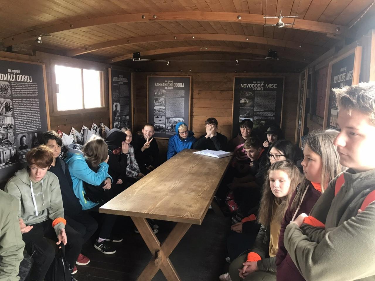 V pátek 14. října 2022 jsme se byli se školou podívat v Táboře na legionářský vlak. Na začátku exkurze nám pustili video o československých legiích. Po videu jsme byli prováděni jednotlivými vagóny. V každém vagónu nám bylo o něm něco řečeno. Na některých vagónech byly vidět šrámy po první světové válce. Když nám pan průvodce ukazoval prostřelené železo, tak pronesl: „Podívejte se, jak ta kulka prolítla železem, člověkem z masa a kostí by prolítla jak kusem hovna.“ Tato věta mi v paměti utkví asi ještě hodně dlouho.