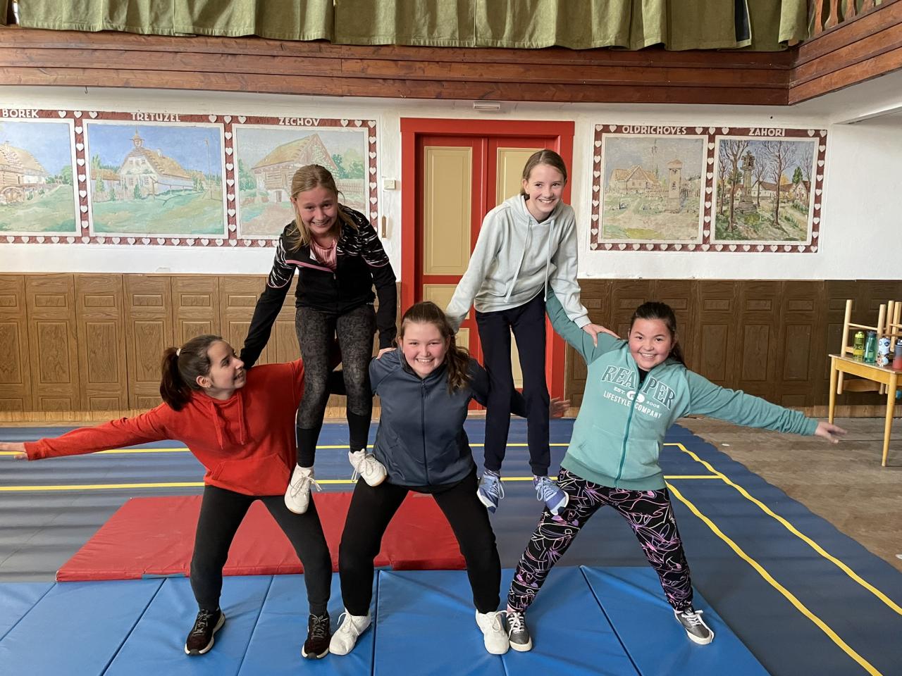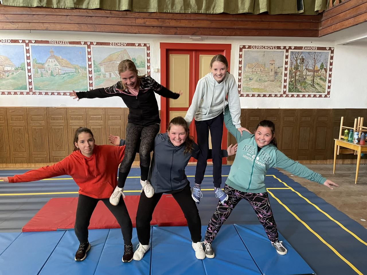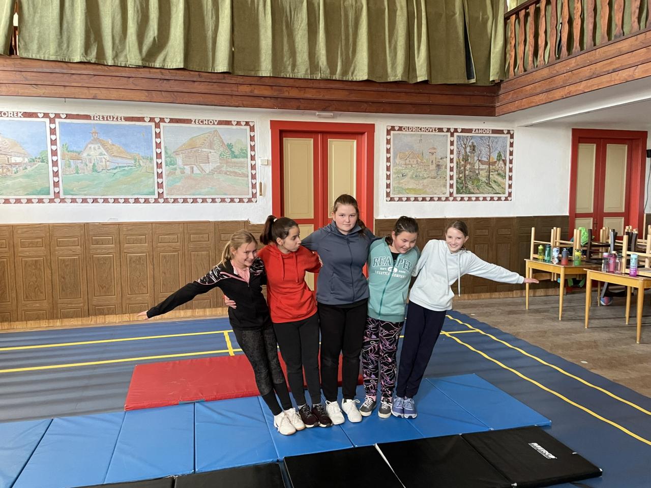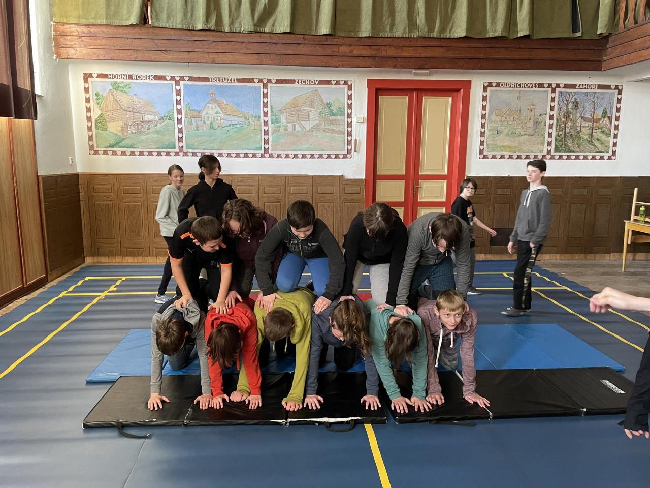 Dnes jsme v rámci TV vyzkoušeli lidské pyramidy podle sokolských předloh, které vznikly pro noc sokoloven. Po počátečním ostychu a nedůvěře v to, že je to fyzicky možné, se nám podařily vytvořit velmi hezké gymnastické prvky, však posuďte sami.