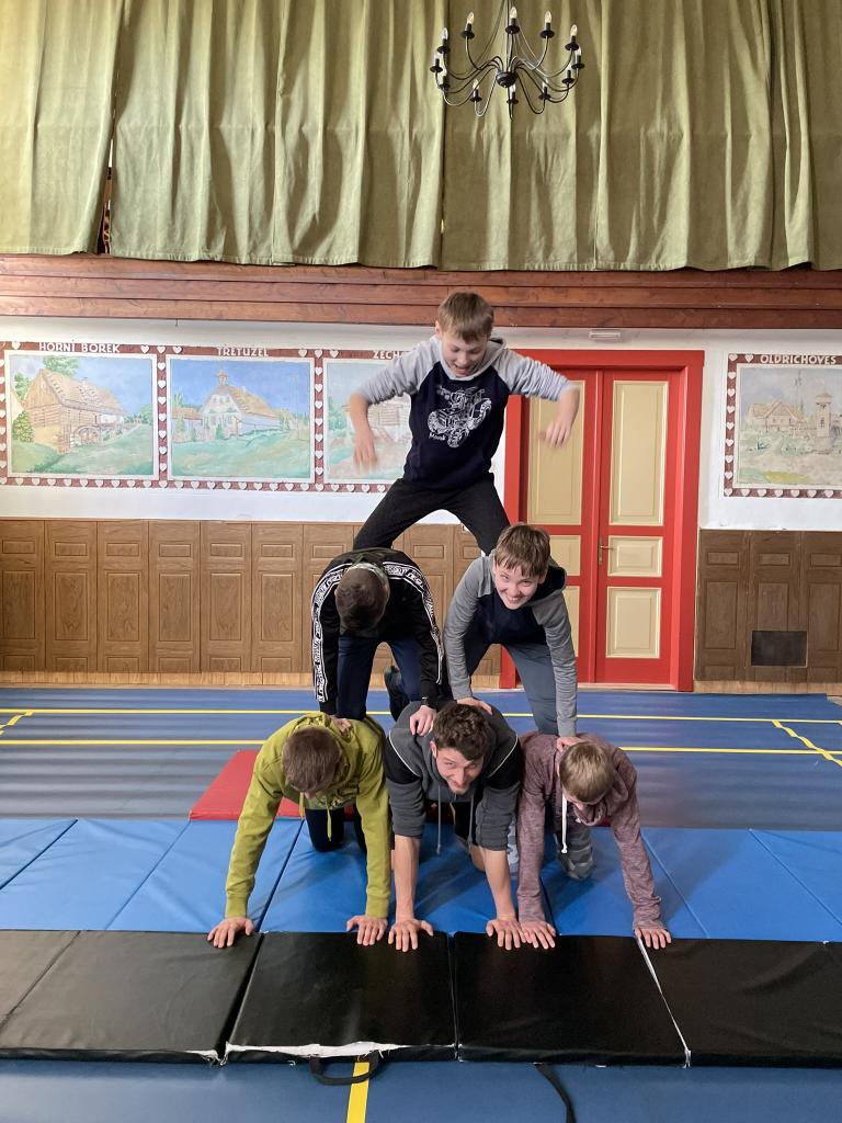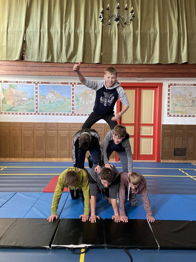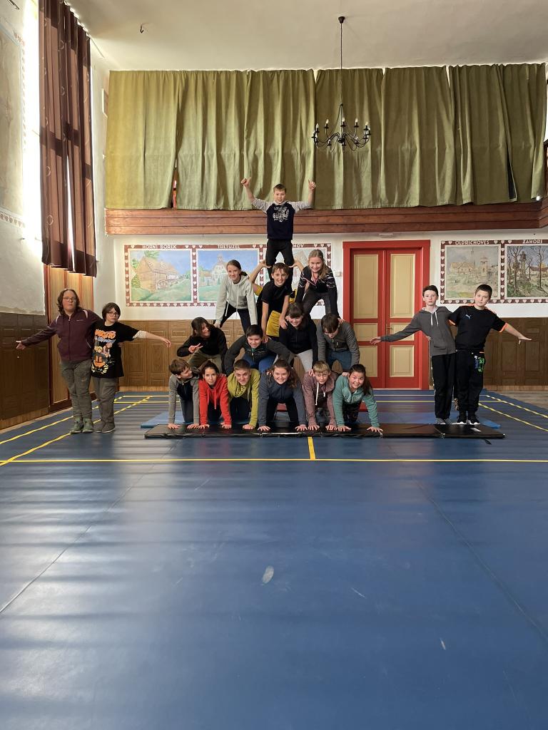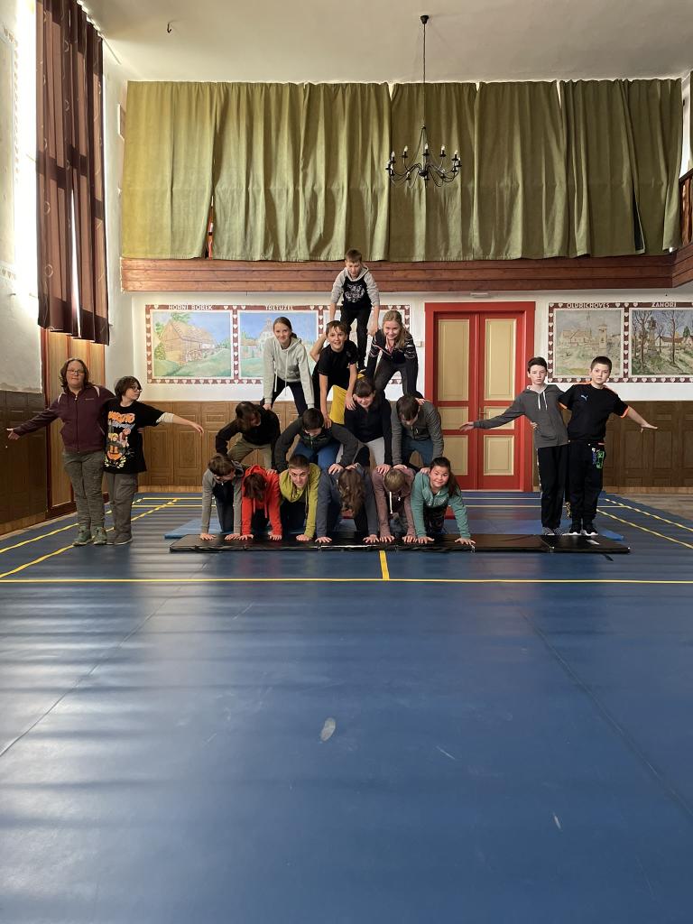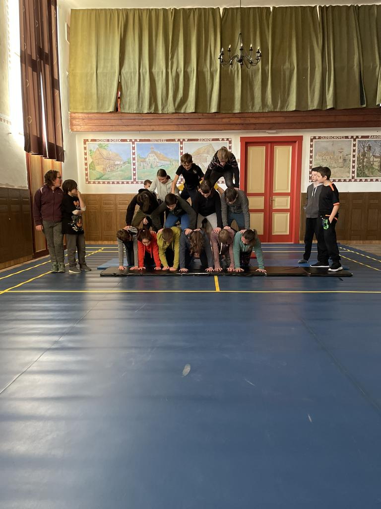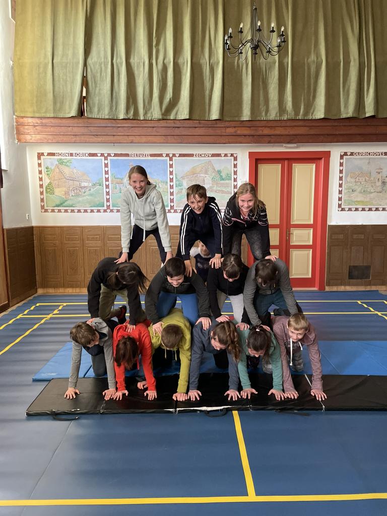 Lidské pyramidy v sokolovně Miličín