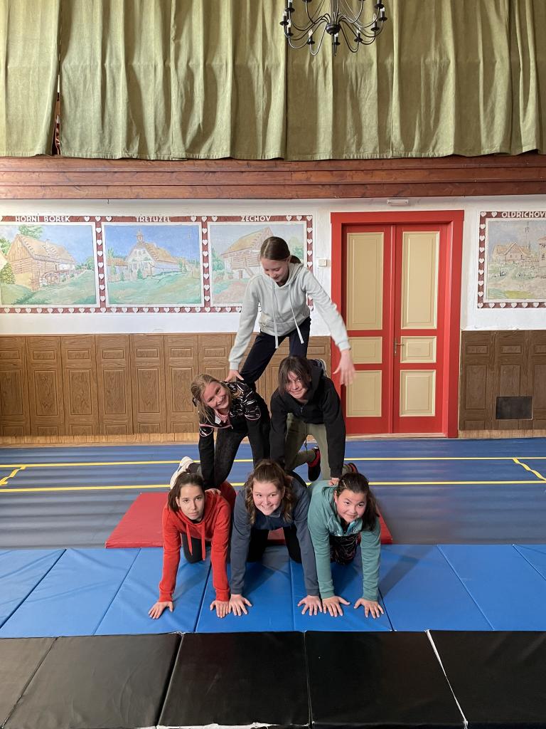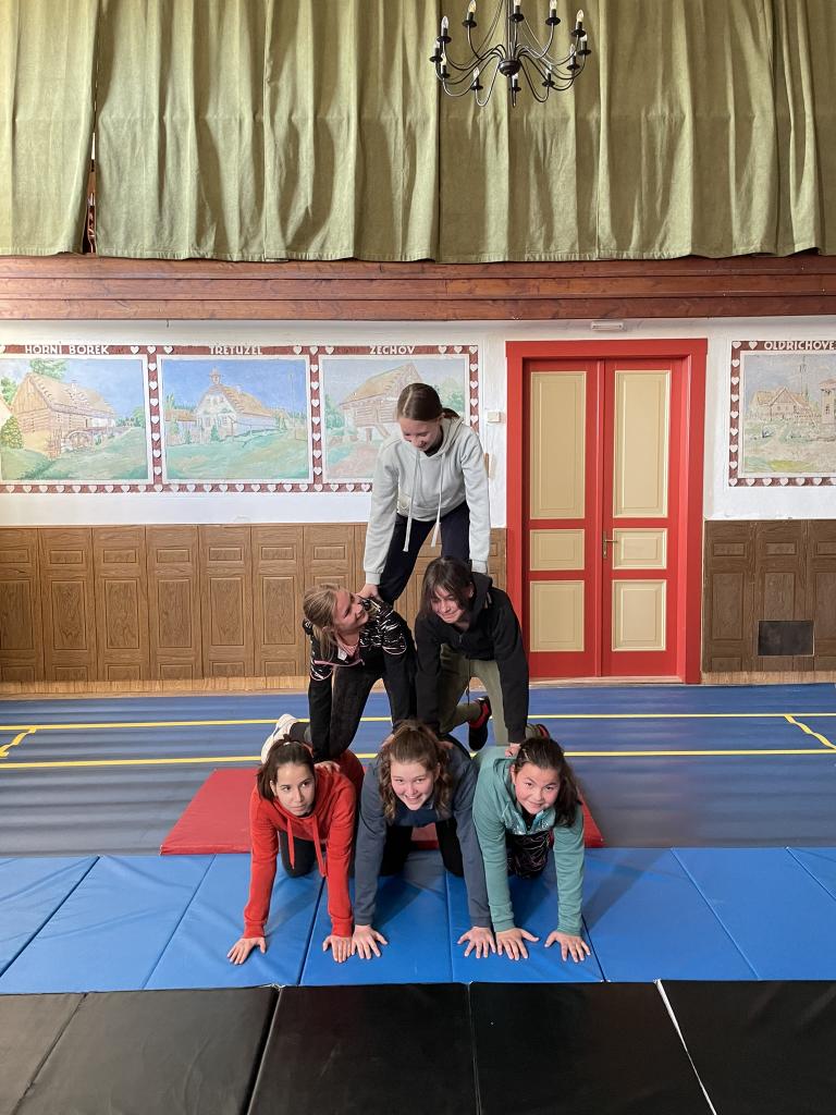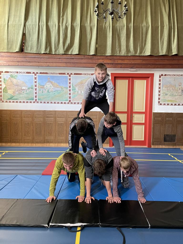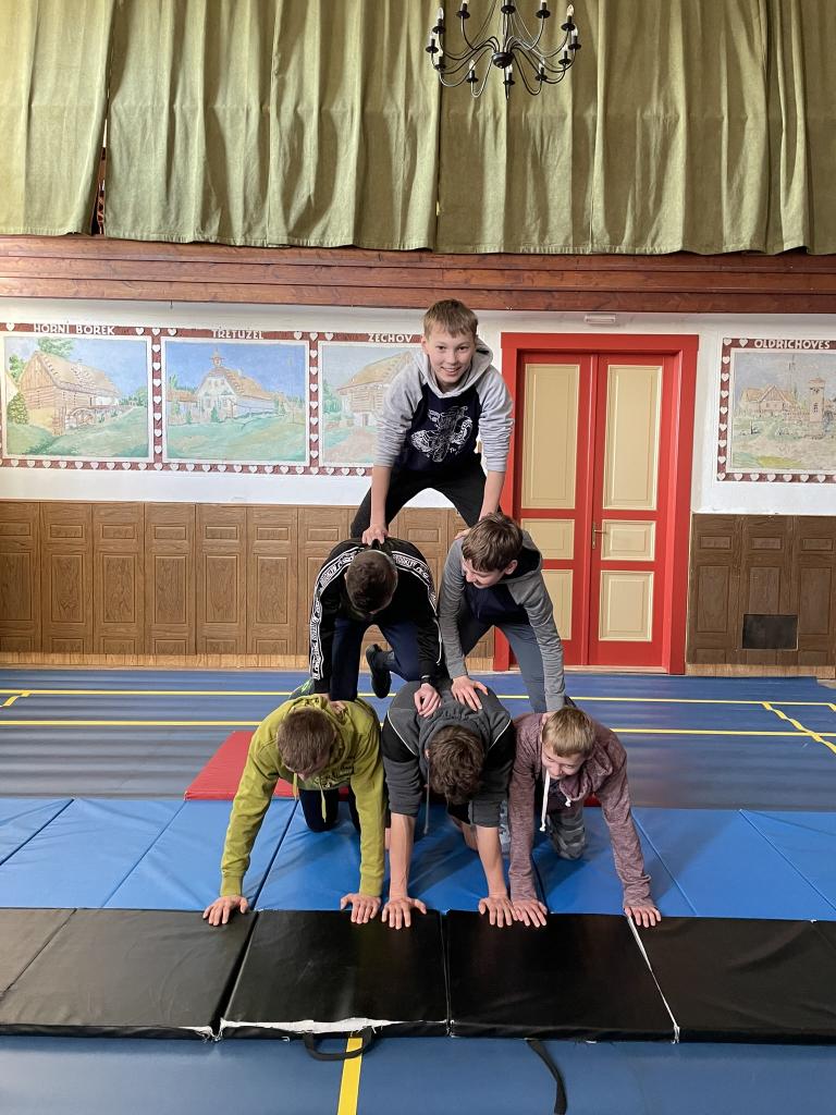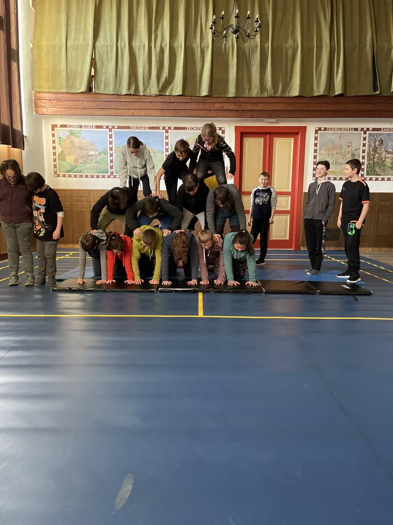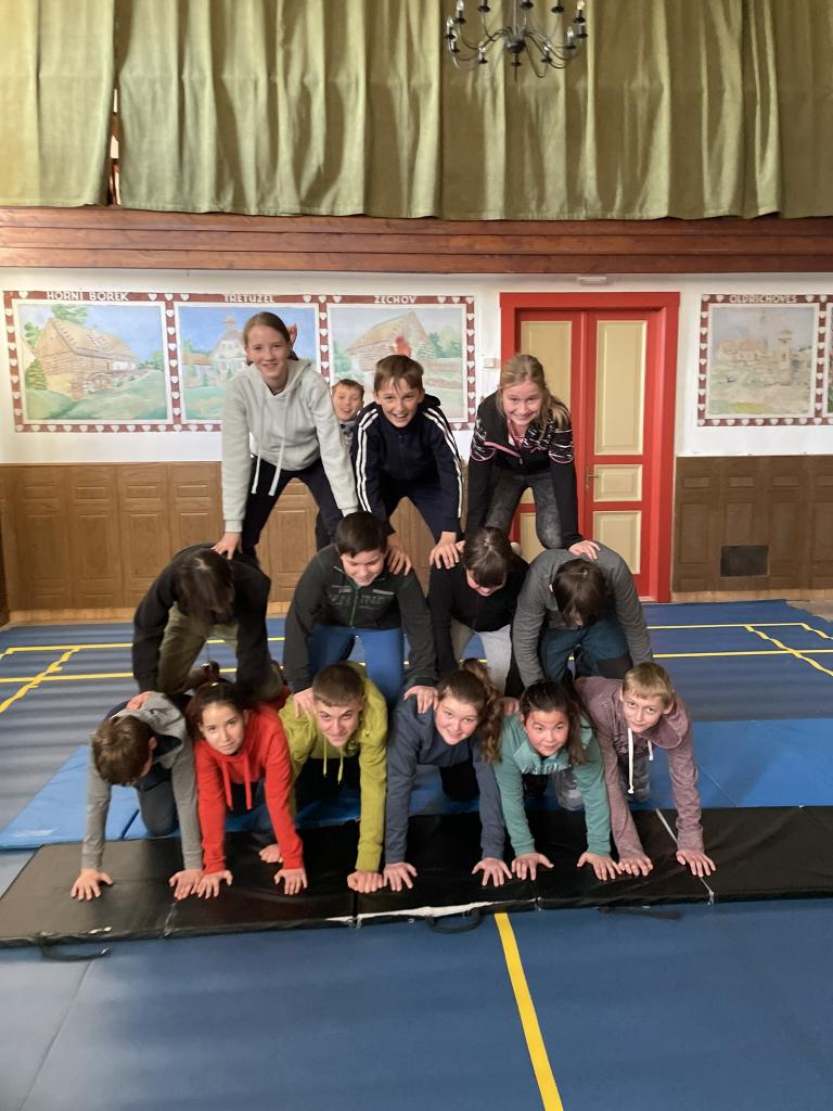 Lidské pyramidy v sokolovně Miličín