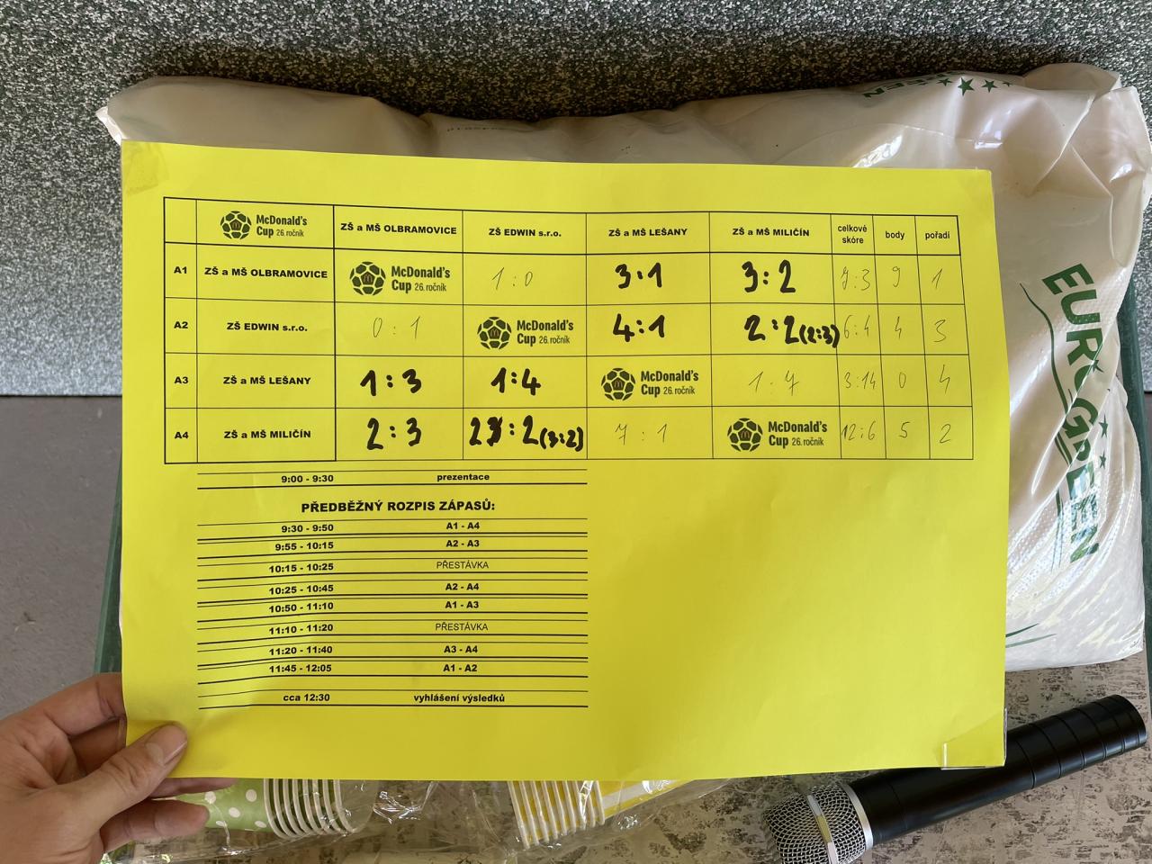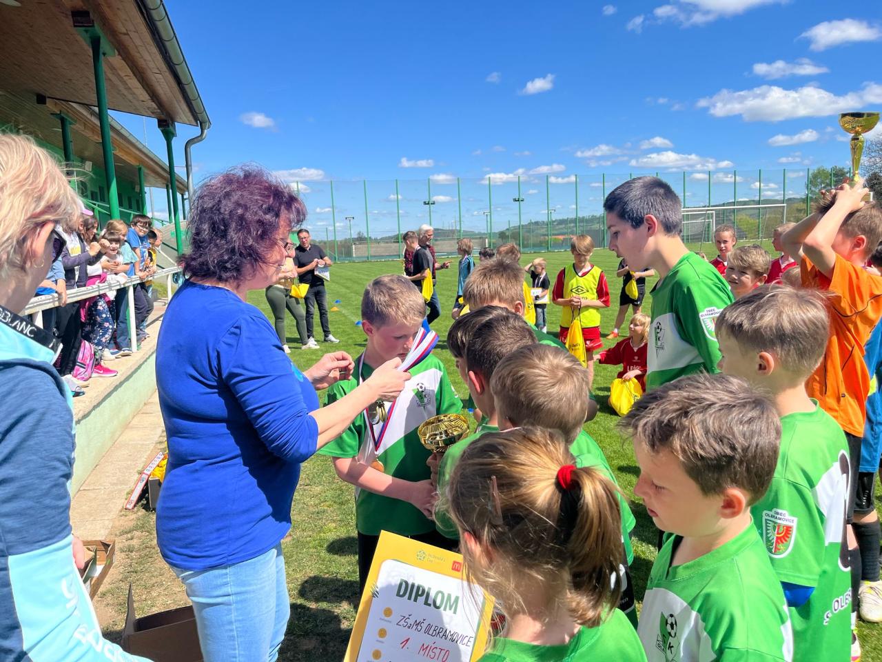 I v letošním roce jsme se zúčastnili fotbalového turnaje malotřídek v rámci Mc Donald´s cupu a i letos jsme se umístili tzv. "na bedně", a to na krásném 2. místě. Celý den začal již ráno, ještě ve škole instrukcemi, důkladnou rozcvičkou a rozdělením postů na hřišti. Poté nás pan školník nadvakrát odvezl do Olbramovic, kde se letošní turnaj konal. Tomu moc děkuji, stejně jako paní ředitelce, za pomoc s celou realizací, protože nakrmit, ošatit a ohlídat fotbalovou jedenáctku prvního stupně není jednoduché. Děkuji i ZŠ Olbramovice a místním fotbalistům za skvělou organizaci. Díky i miličínským trenérům a fotbalovému klubu, za zápůjčku brankářského vybavení a podporu na místě.