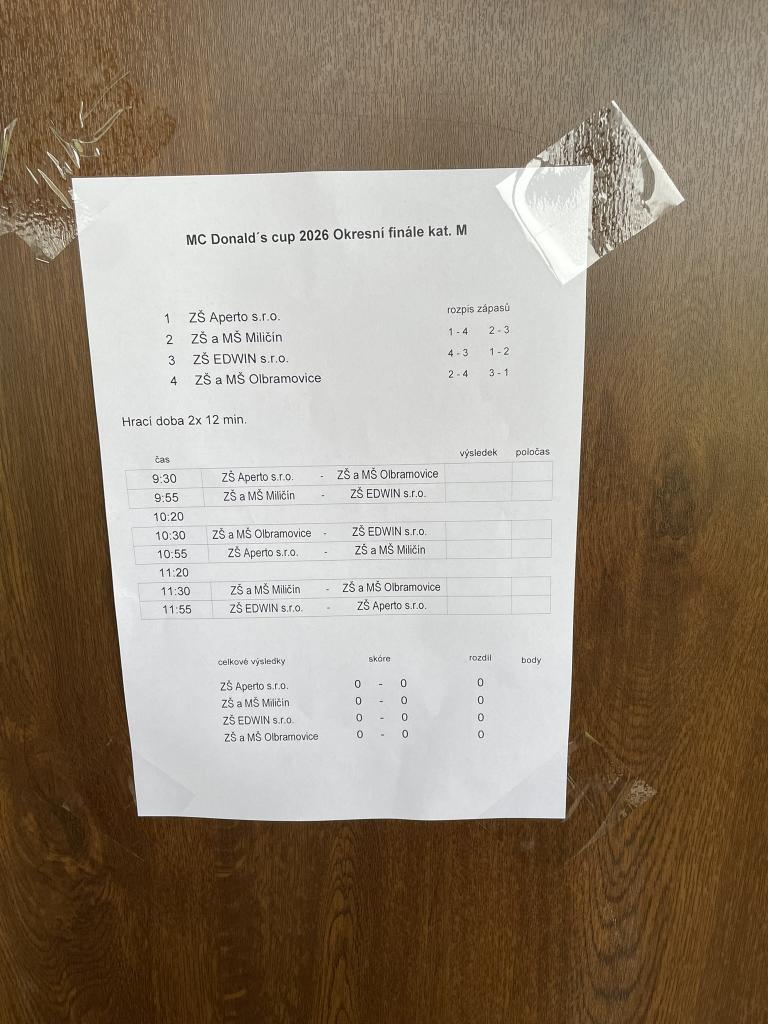 Každoroční fotbalový turnaj malotřídních škol McDonald´s cup v Olbramovicích se i letos vydařil. Ačkoliv nebylo úterní počasí nic moc, nenechali jsme si jím zkazit příjemný fotbalový zážitek. Proti nám nastoupily týmy ZŠ Edwin z Čerčan, ZŠ Aperto z Benešova a domácí ZŠ Olbramovice. Hned první zápas jsme nad Edwinem vybojovali zasloužené vítězství. Druhý zápas byl již těžším oříškem a i přes počáteční vedení jsme kvůli dvěma zbytečným chybám přišli nejprve o vedení a v poslední minutě zápasu i o případnou remízu, kterou by jinak řešil penaltový rozstřel. Chuť jsme si spravili na domácím týmu, který jsme doslova rozstříleli. Po napínavém posledním zápasu, který nám dával díky dobrému skóre stále naději na první míst, jsme nakonec brali krásné druhé místo. Díky skvělému výkonu v bráně navíc získal náš gólman Matyáš Hron také ocenění pro nejlepšího brankáře. Z Olbramovic jsme odjížděli spokojení a těšíme se zase za rok na tradičním fotbalovém klání. Děkujeme SDH Miličín za zapůjčení minibusu a panu školníkovi za jeho šoférování a doprovod na turnaj.