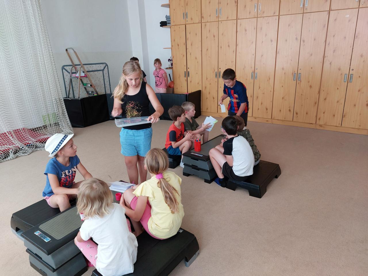 Velkým překvapením byl obrovský zájem dětí o hru šachů. K dispozici byly 4 hrací sety neustále obsazené hráči, kteří byli obklopeni nehrajícími pozorovateli. Jedním z hlavních témat Letní školy 2024 budou tedy šachy a dobrá zpráva je, že už máme příslib externího lektora, který se věnuje šachům desítky let. Dalším překvapením byla krátká divadelní scénka, kterou si vymyslely, zrežírovaly a zahrály mladší děti na excelentní úrovni, která překvapila všechny diváky.