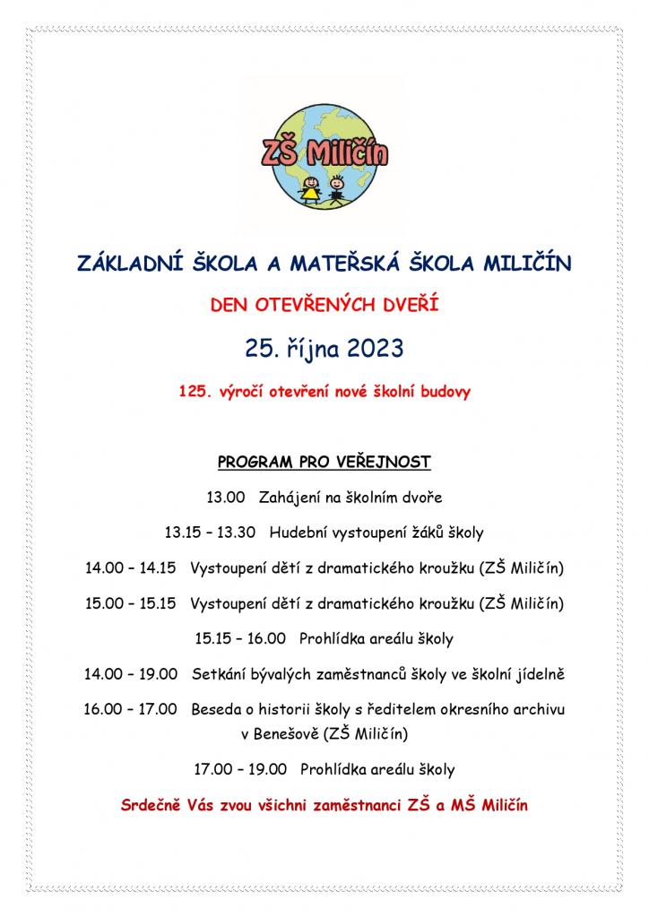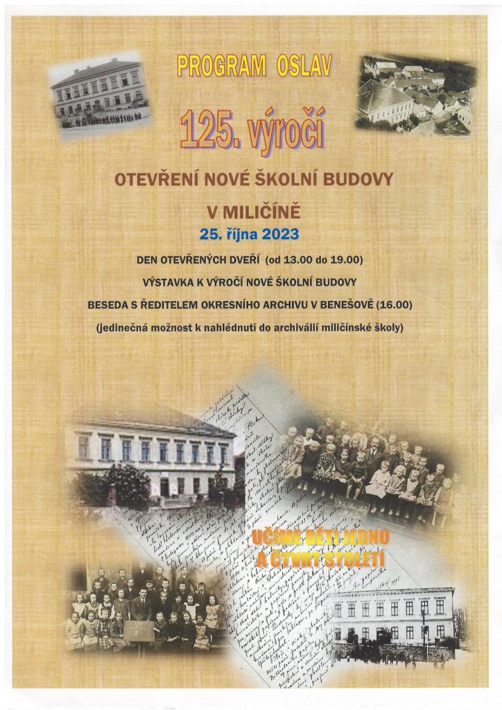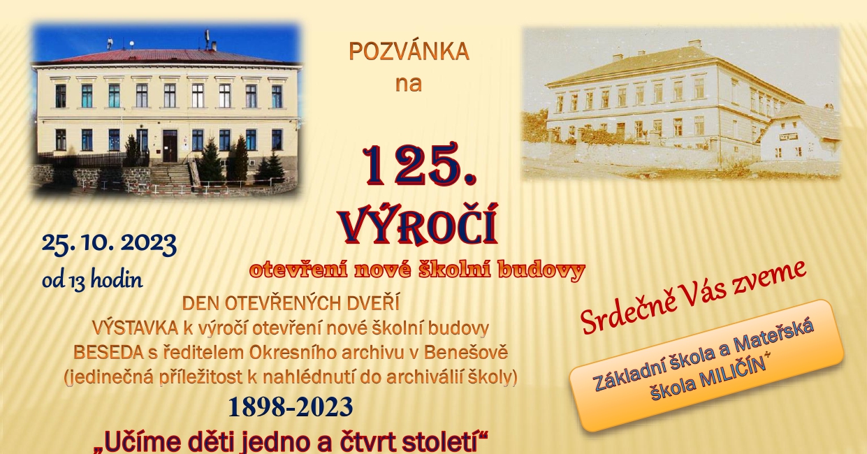 Pozvánka na den otevřených dveří při příležitosti 125. výročí otevření nové školní budovy