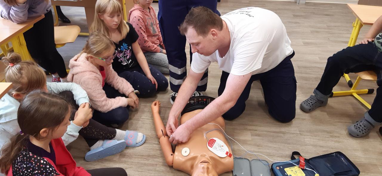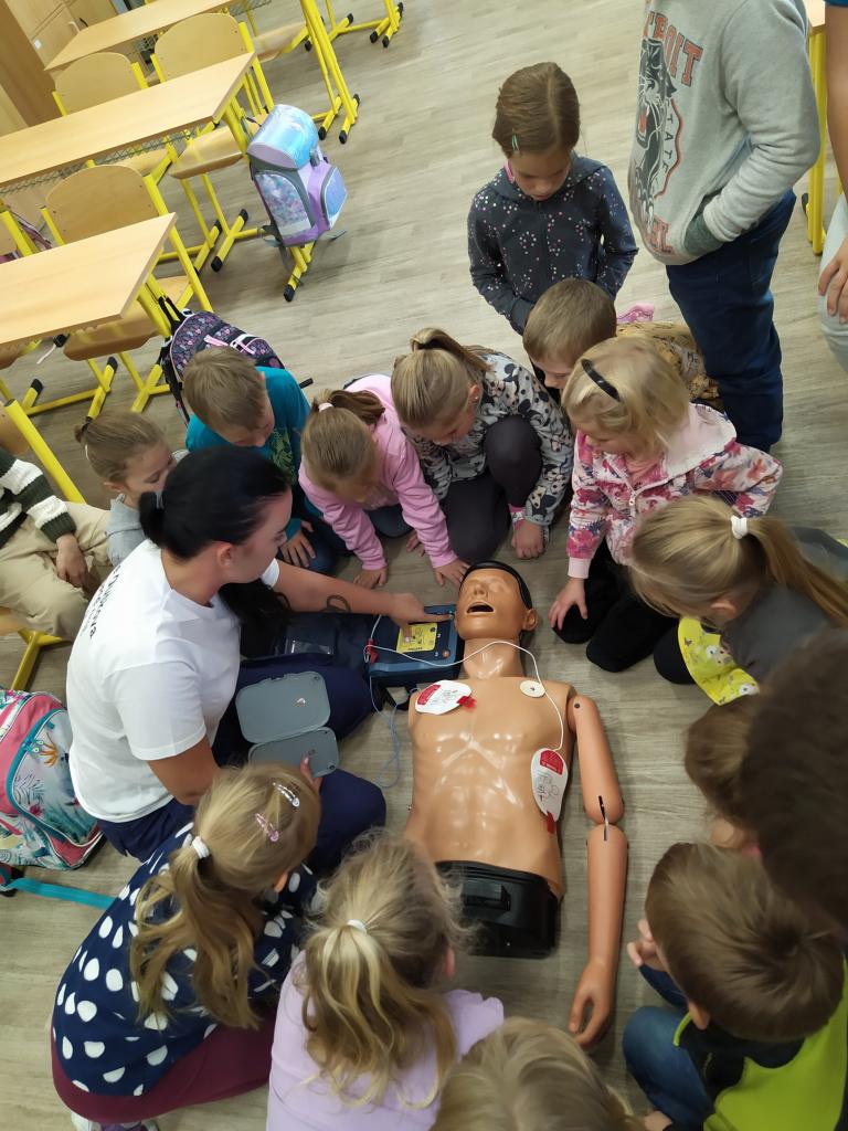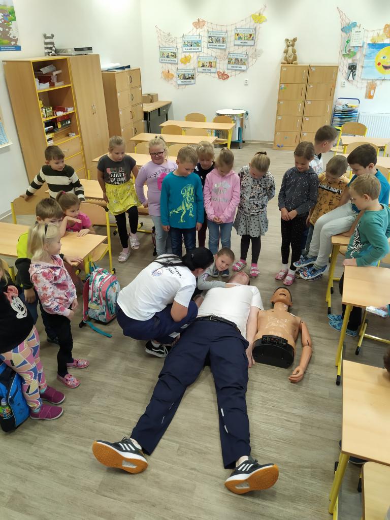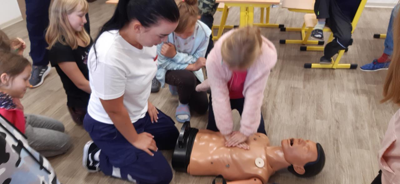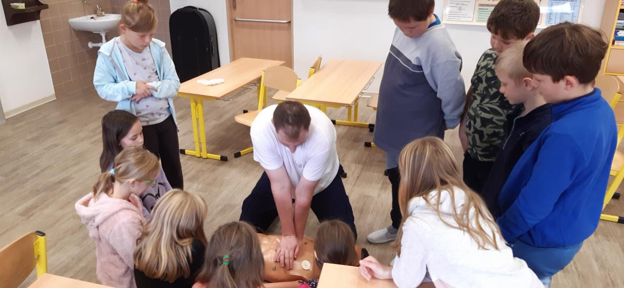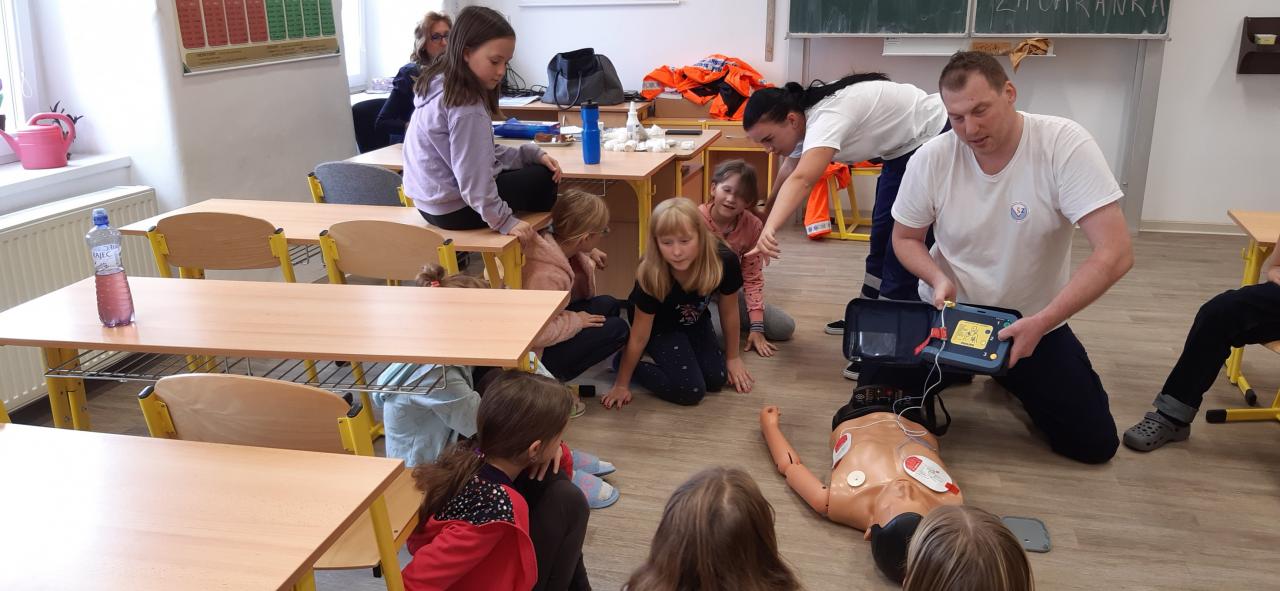 V pátek 30. září 2022 navštívila základní školu paní docentka Lidmila Hamplová z Vysoké školy zdravotnické v Praze. Přijeli s ní i dva záchranáři – studentka a student, aby seznámili žáky s pravidly poskytování 1. pomoci. Postupně se věnovali všem třídám od první až po devátou, informovali o integrovaném záchranném systému, telefonních číslech, různých úrazech a poskytování první pomoci. Předvedli také postup při nepřímé masáži srdce (správně je pojem nepřímá zevní masáž) a zodpověděli dotazy žáků. Někteří si masáž také vyzkoušeli. Akce se dětem líbila a určitě bude vhodné si nabyté vědomosti pravidelně opakovat. Poslední na řadu přišla devátá třída při odpoledním vyučování.