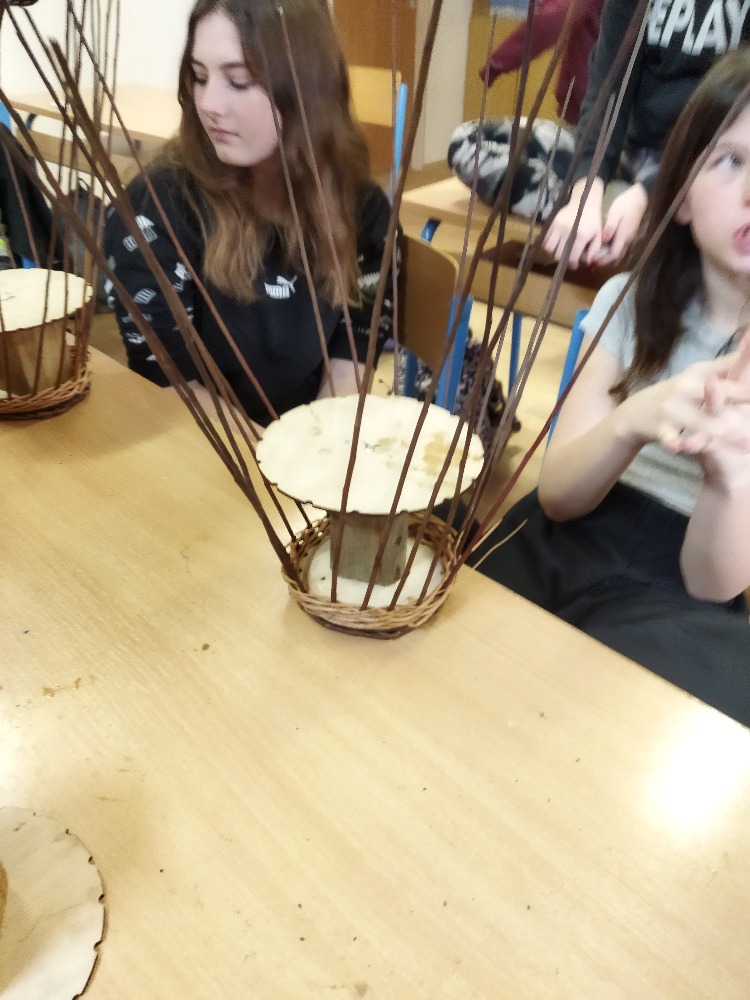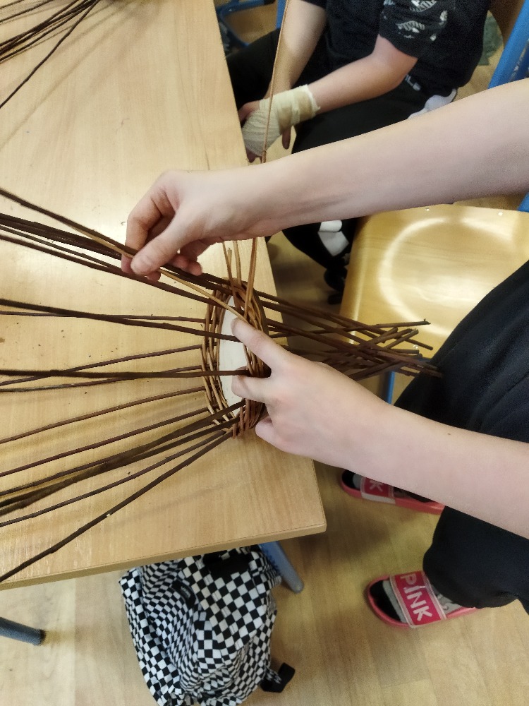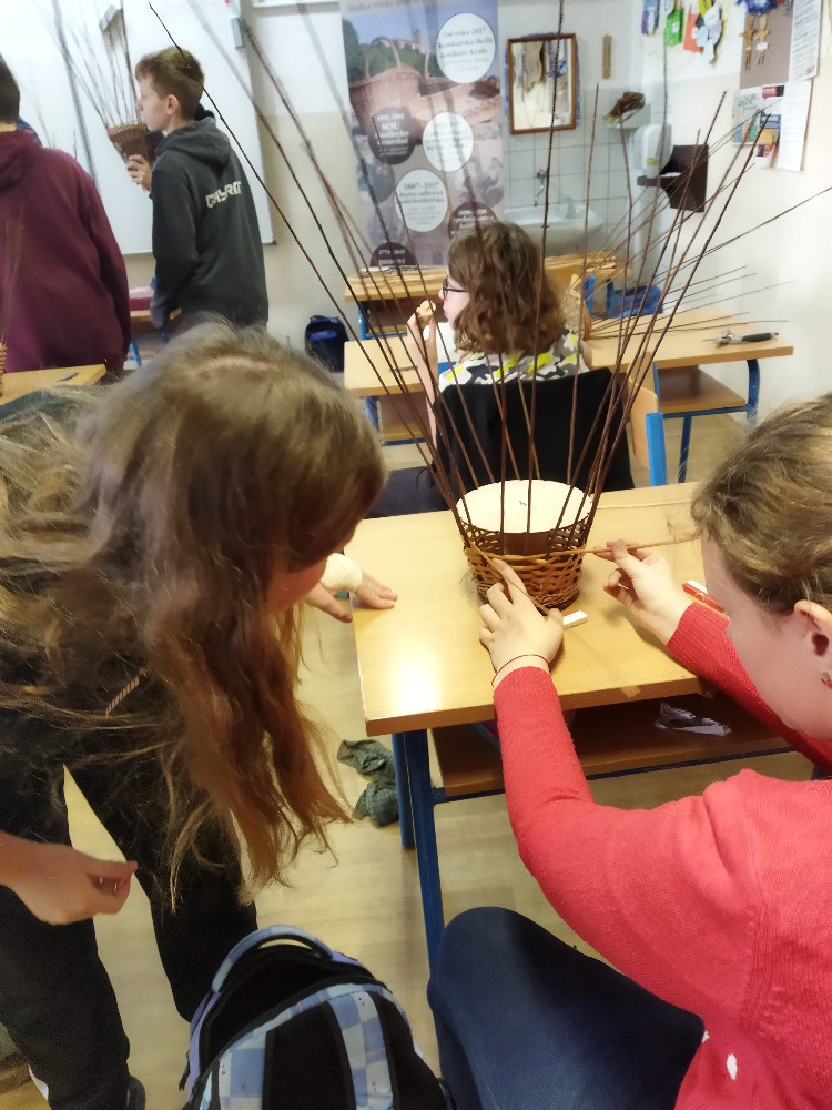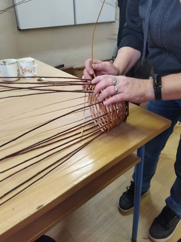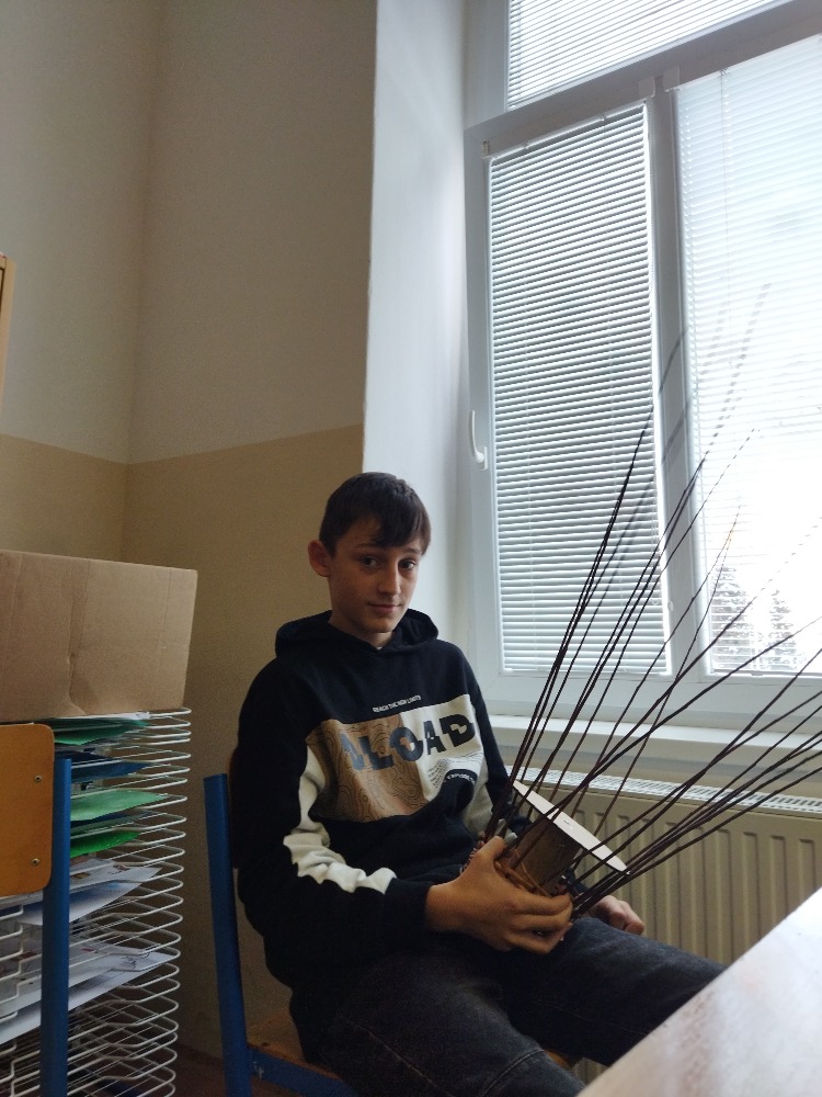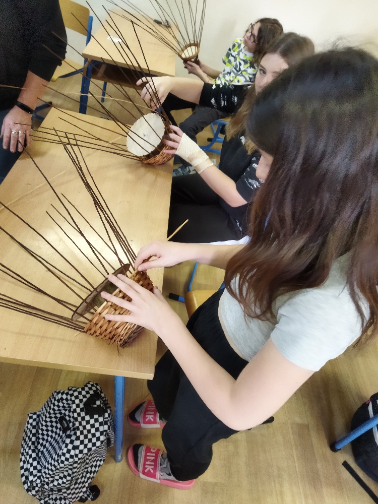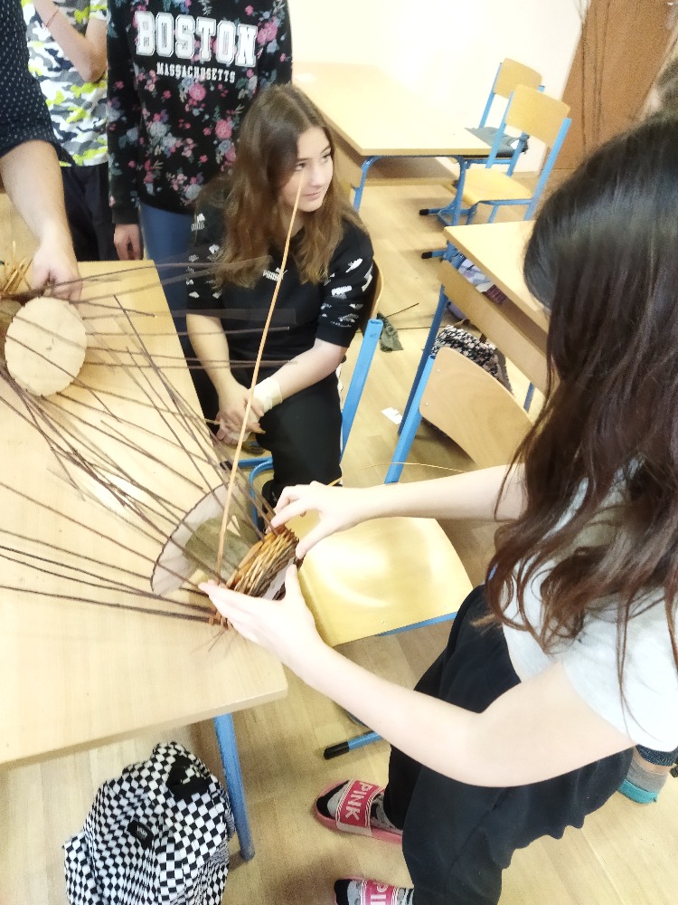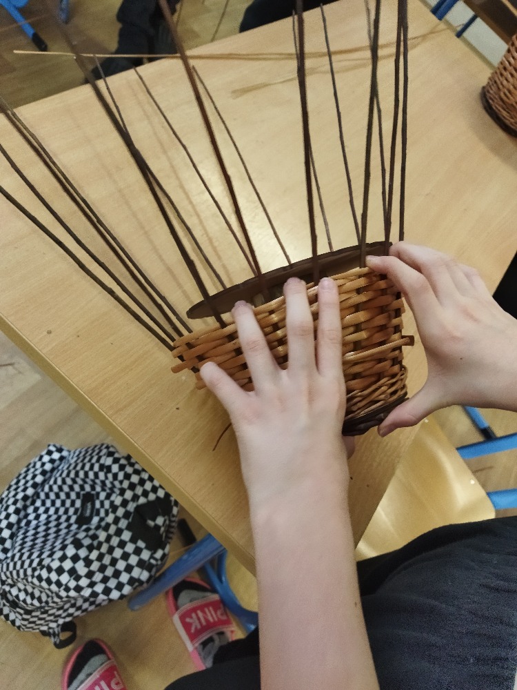 divadla…) i to, že zvládal plést a komunikovat se třídou, aniž by se musel koukat pod ruce. Čtyři hodiny utekly jako voda a hotové výrobky udělaly všem velkou radost. Žáci i učitelé obdrželi „výuční“ listy o absolvování kurzu, ale hlavně jsme si všichni odnesli kromě mnoha informací a zajímavostí o tomto řemeslu i vlastnoručně vyrobený košík.