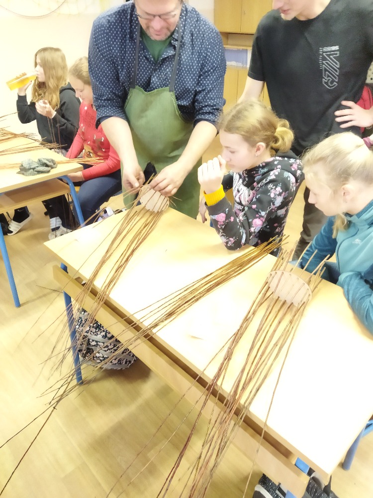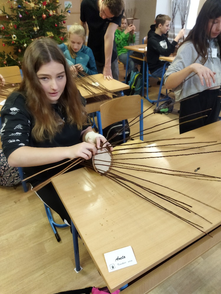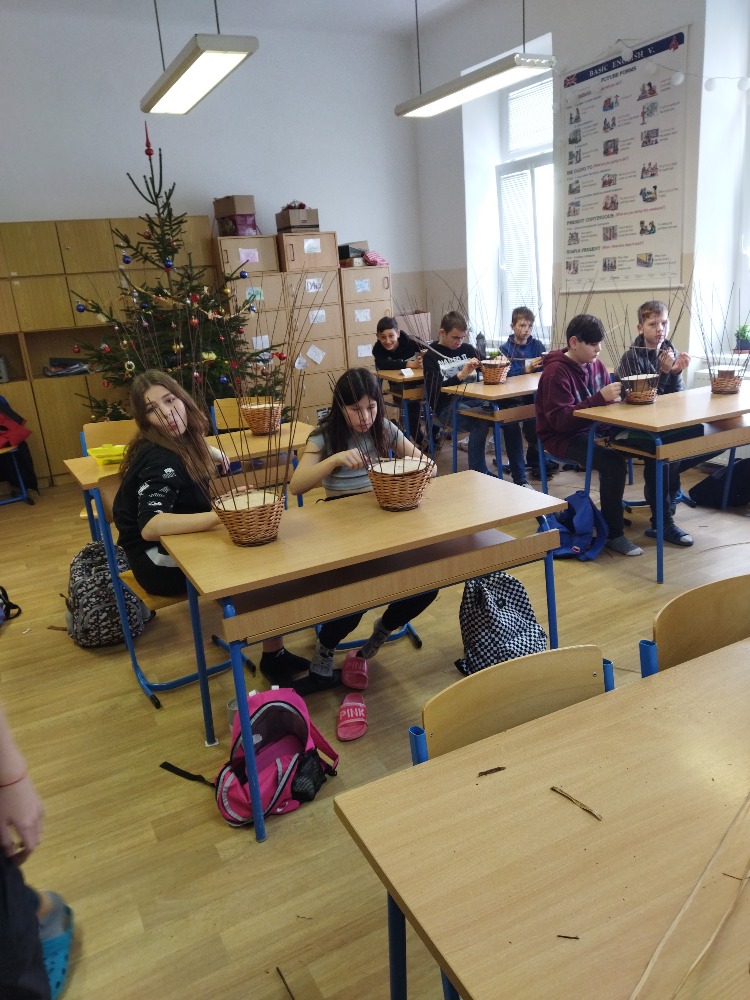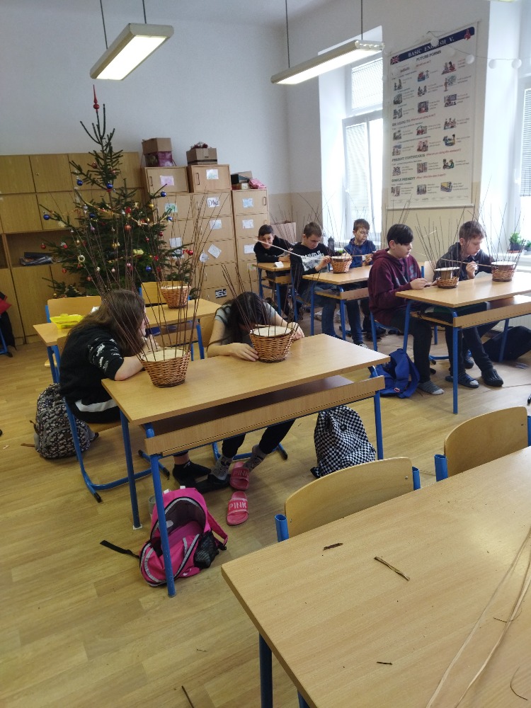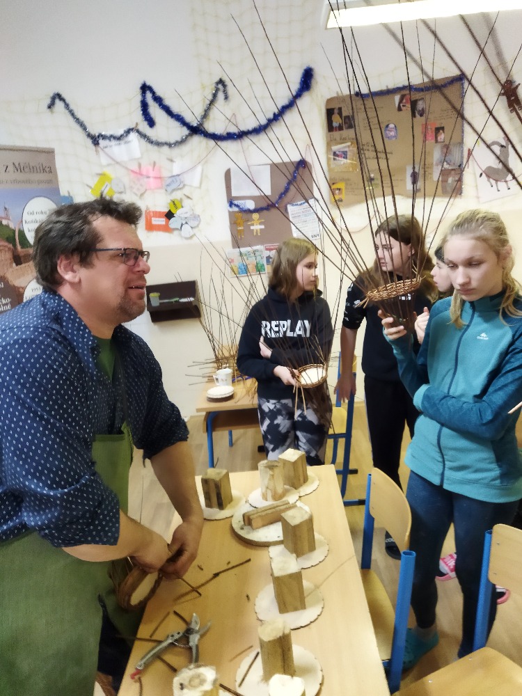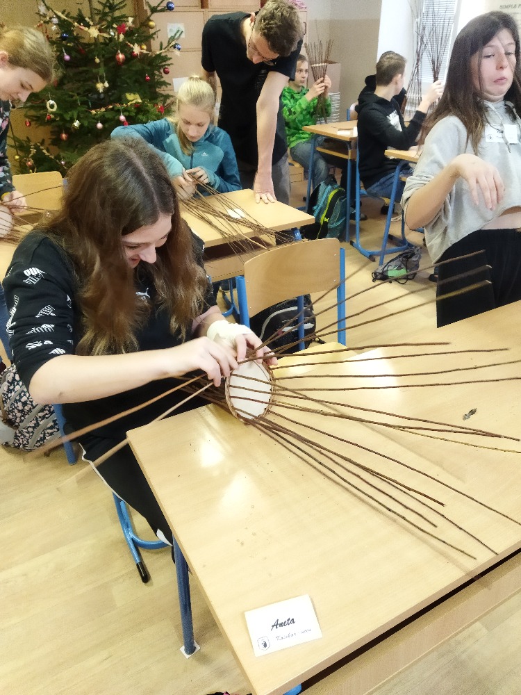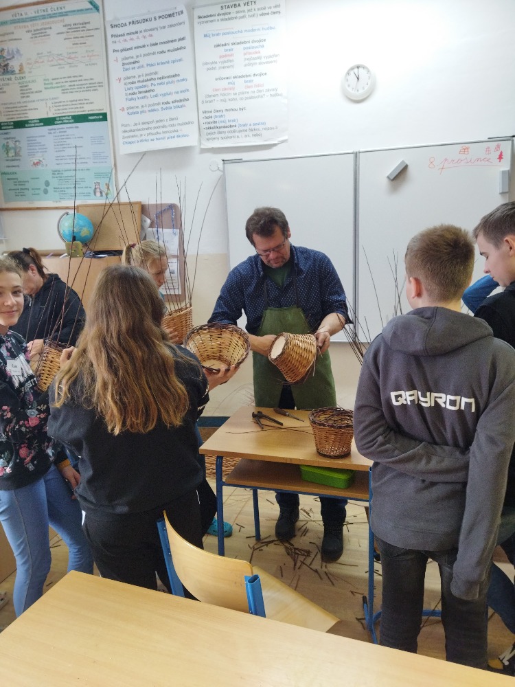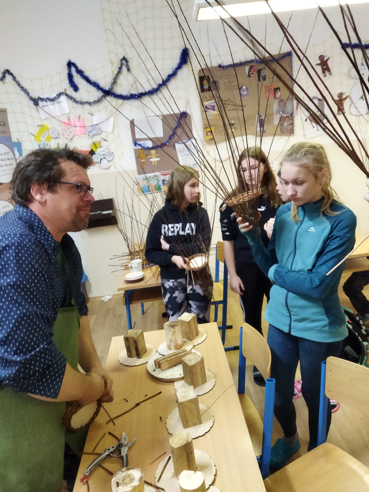V prosincový čtvrtek 8. 12. zavítal do sedmého ročníku naší školy pan Petr Král se svou paní, aby dětem ukázali krásu košíkářského řemesla.