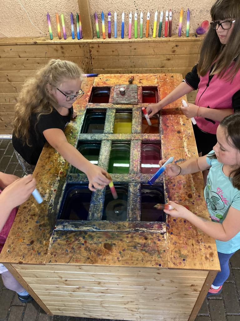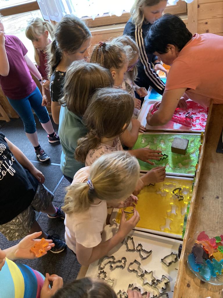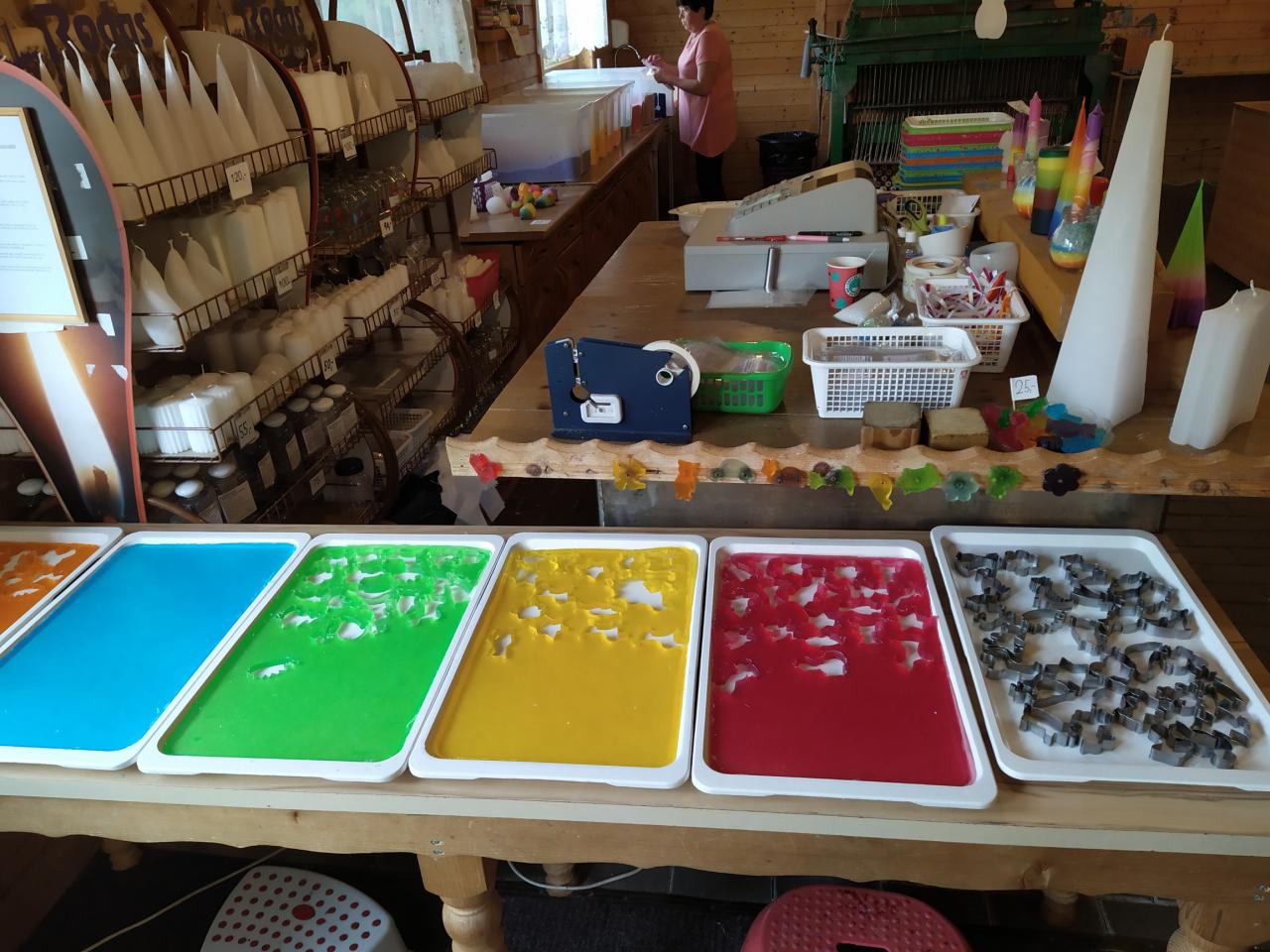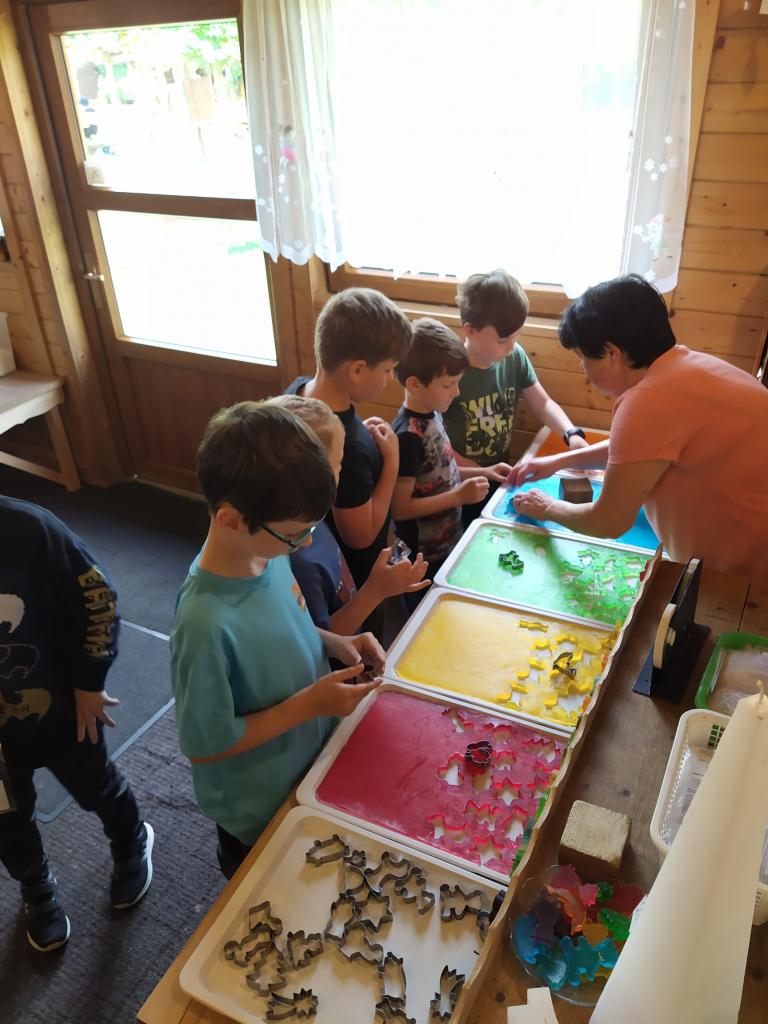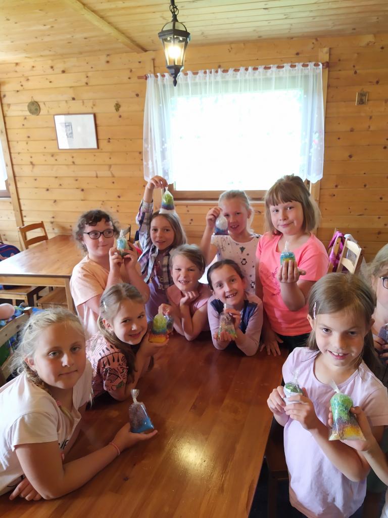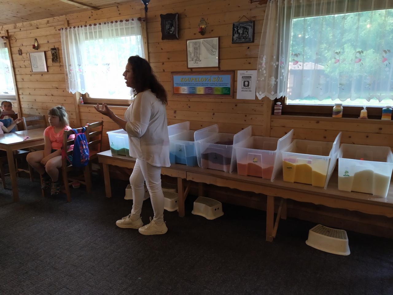 V areálu Rodas Šestajovice jsme se rozdělili na dvě skupiny a šlo se vyrábět. Ne, ne, málem bych zapomněla na důležitou věc – svačinu. Vždyť všechno jde lépe s plným bříškem! Po jídle se děti věnovaly vyrábění. Zhotovily si svíčky, které si zdobily v barevných voskových politurách. Žádná svíčka nebyla stejná. Pak si děti vykrajovaly glycerinová mýdla, plnily si sáčky koupelovou solí. Na výběr měly 7 druhů koupelových solí s přírodními silicemi z bylin.