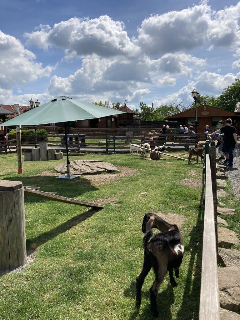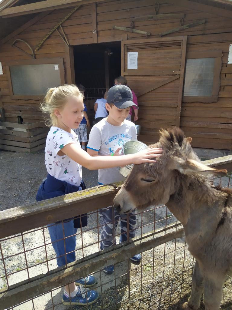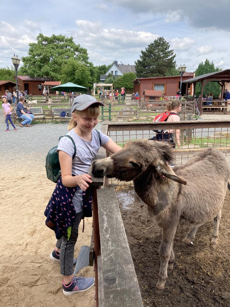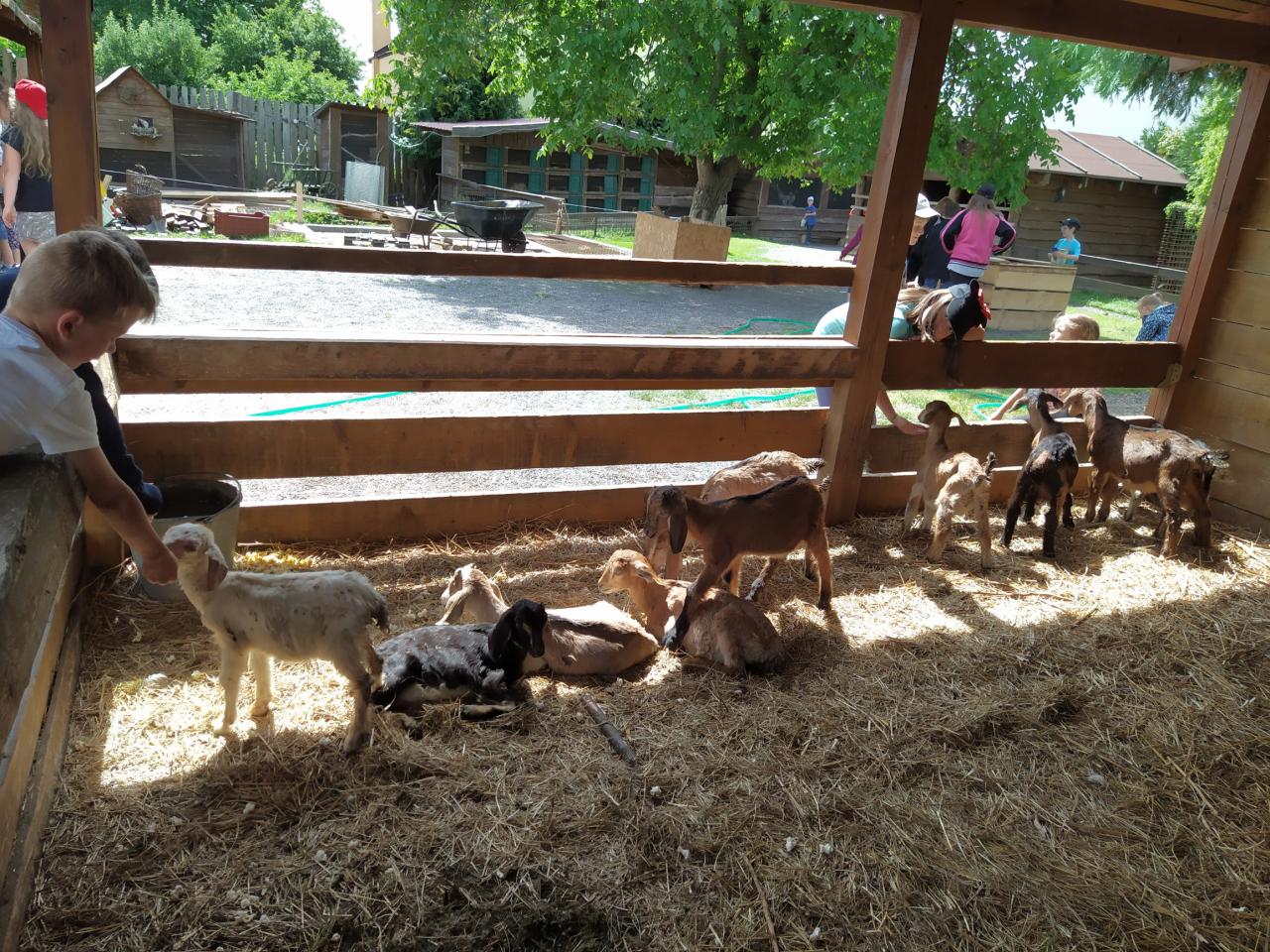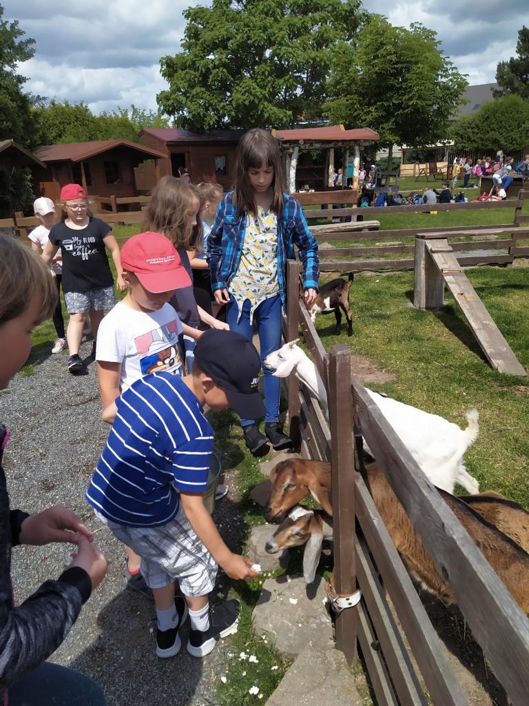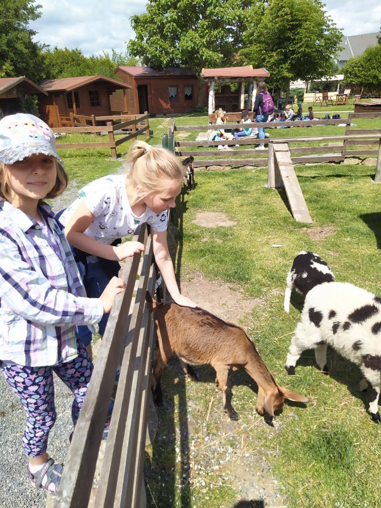 Naplněné batůžky s povedenými výrobky si děti odložily pod strom a hurá na krmení zvířátek. Na této malé farmě byla většina zvířat ochočená a když holandské mini kůzle přeskočilo ohradu a šlo se kamarádit a fotit s dětmi, radost a nadšení nebraly konce.
