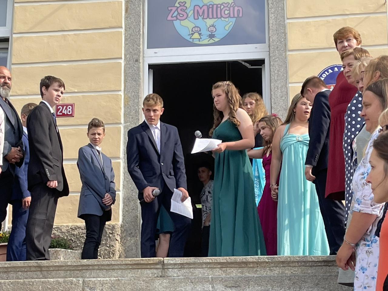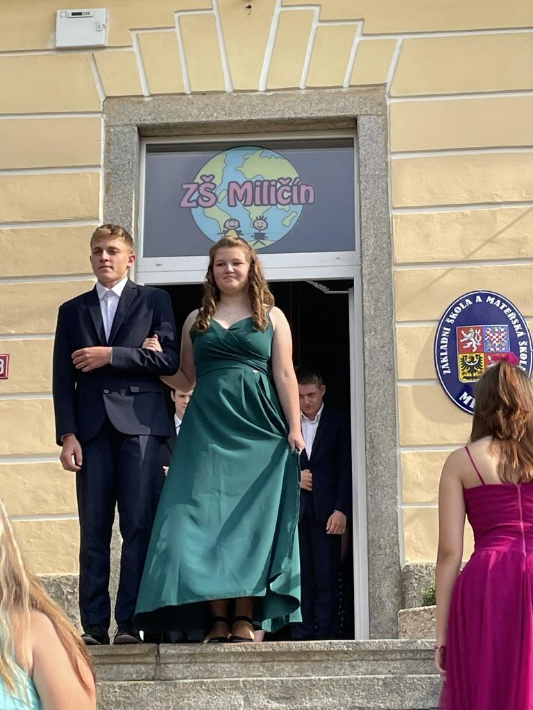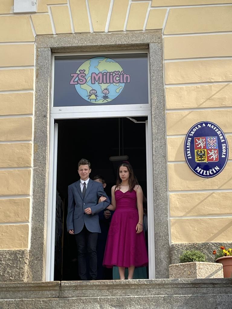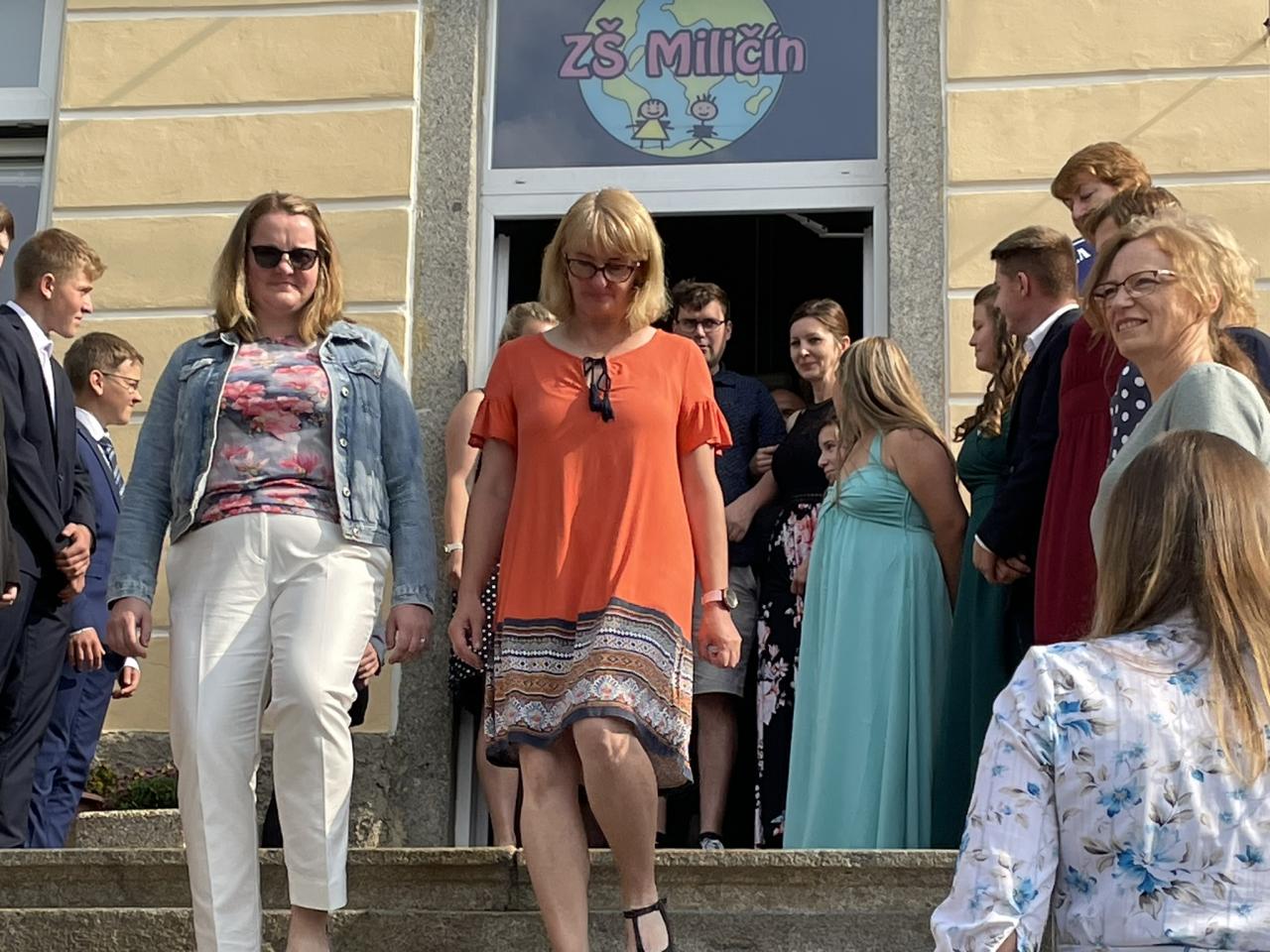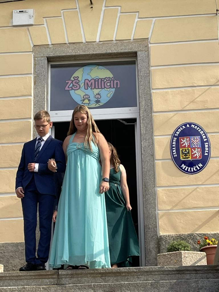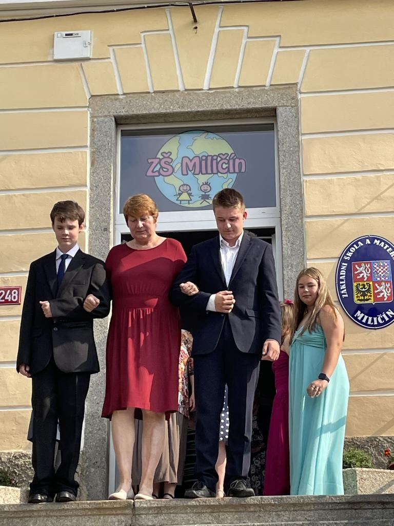 Dnes se kromě rozdávání vysvědčení uskutečnila i tradiční akce - miličínské schody, kdy se naše škola loučí s 9. ročníkem. Vše nejlepší do dalšího života jim popřála ředitelka školy Mgr. Marcela Škramlíková, třídní učitelka Ing. Blanka Kocourková a starosta města Václav Karda. Děkujeme všem, kteří jste k nám zavítali a rozloučili se s našimi žáky. Letošní rok jsme se navíc rozloučili i s dvěma kolegyněmi. Do důchodu odchází po 45 letech na naší škole naše drahá Dana Dostálová. Novou životní etapu zahajuje i Bc. Eva Mládková. Přejeme všem našim deváťákům a kolegům vše nejlepší do jejich dalších životních etap a všem žákům ve zdraví a hezky prožité prázdniny.