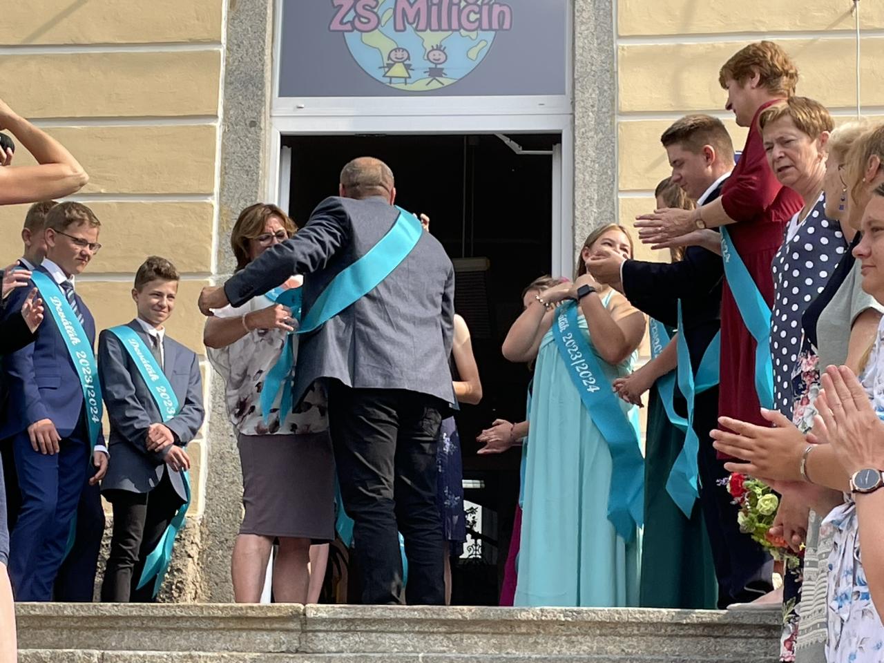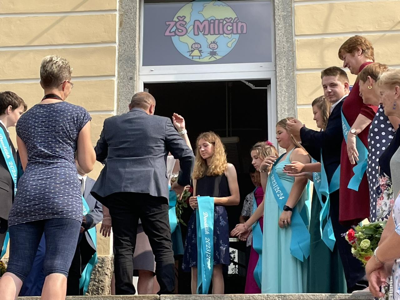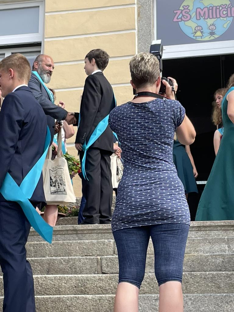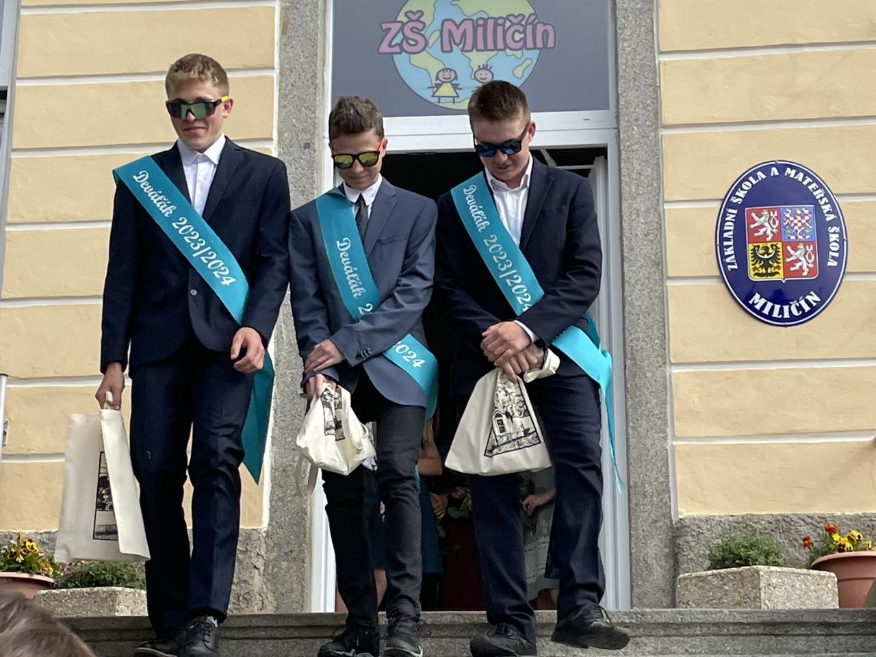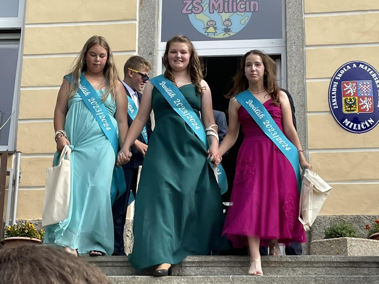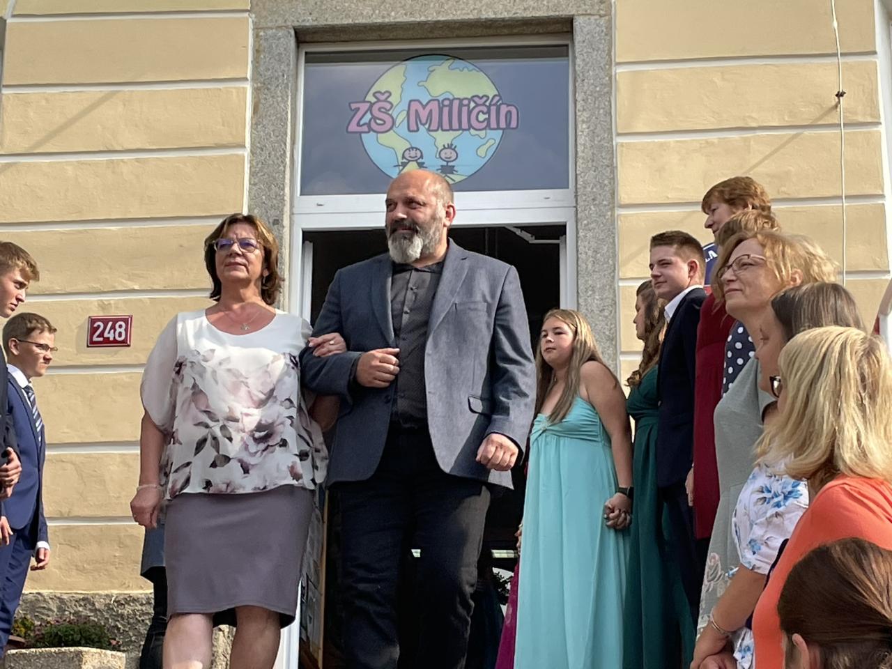 Dnes se kromě rozdávání vysvědčení uskutečnila i tradiční akce - miličínské schody, kdy se naše škola loučí s 9. ročníkem. Vše nejlepší do dalšího života jim popřála ředitelka školy Mgr. Marcela Škramlíková, třídní učitelka Ing. Blanka Kocourková a starosta města Václav Karda. Děkujeme všem, kteří jste k nám zavítali a rozloučili se s našimi žáky. Letošní rok jsme se navíc rozloučili i s dvěma kolegyněmi. Do důchodu odchází po 45 letech na naší škole naše drahá Dana Dostálová. Novou životní etapu zahajuje i Bc. Eva Mládková. Přejeme všem našim deváťákům a kolegům vše nejlepší do jejich dalších životních etap a všem žákům ve zdraví a hezky prožité prázdniny.