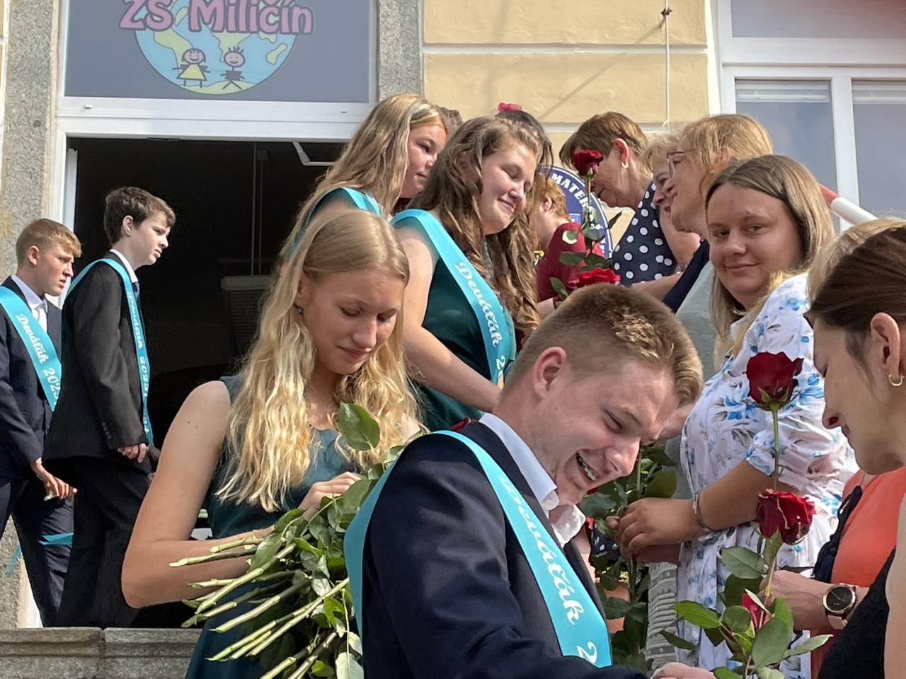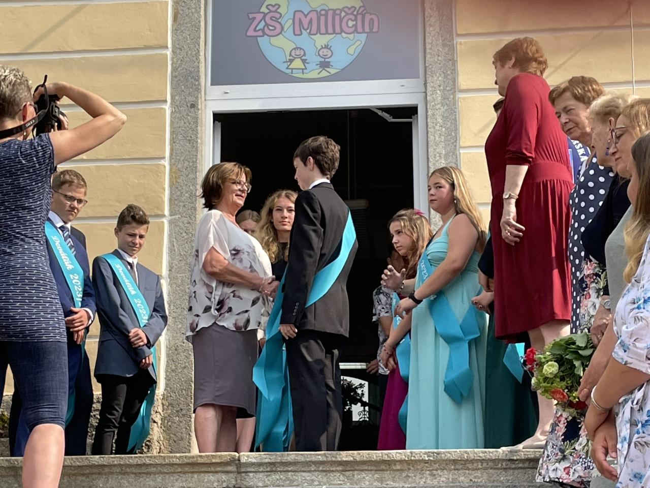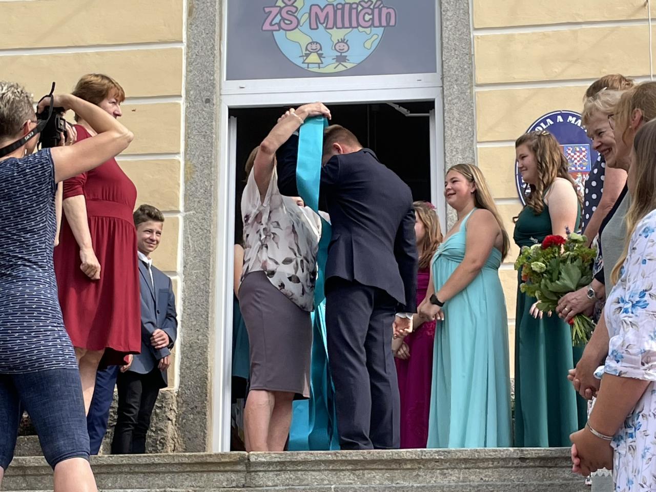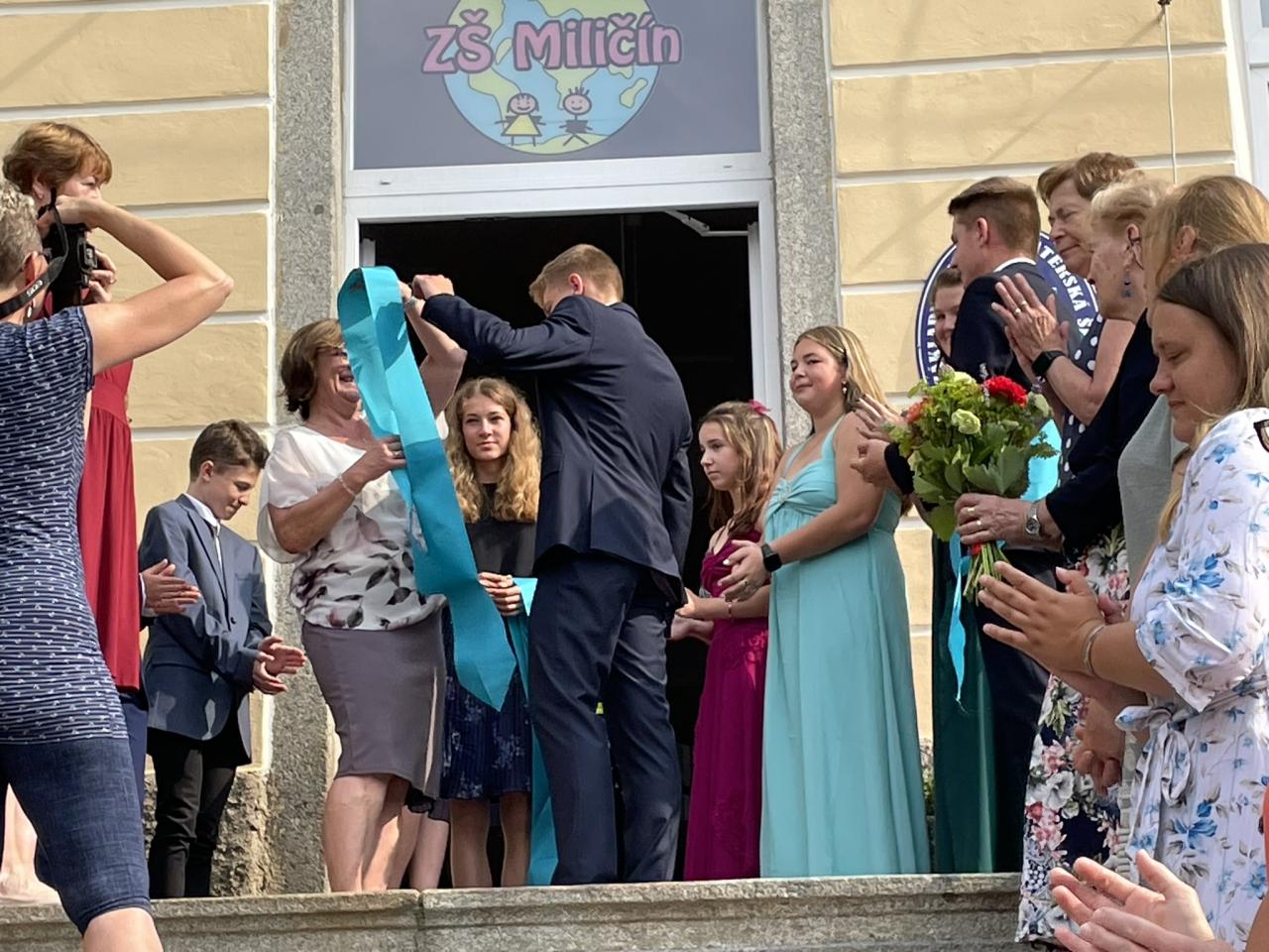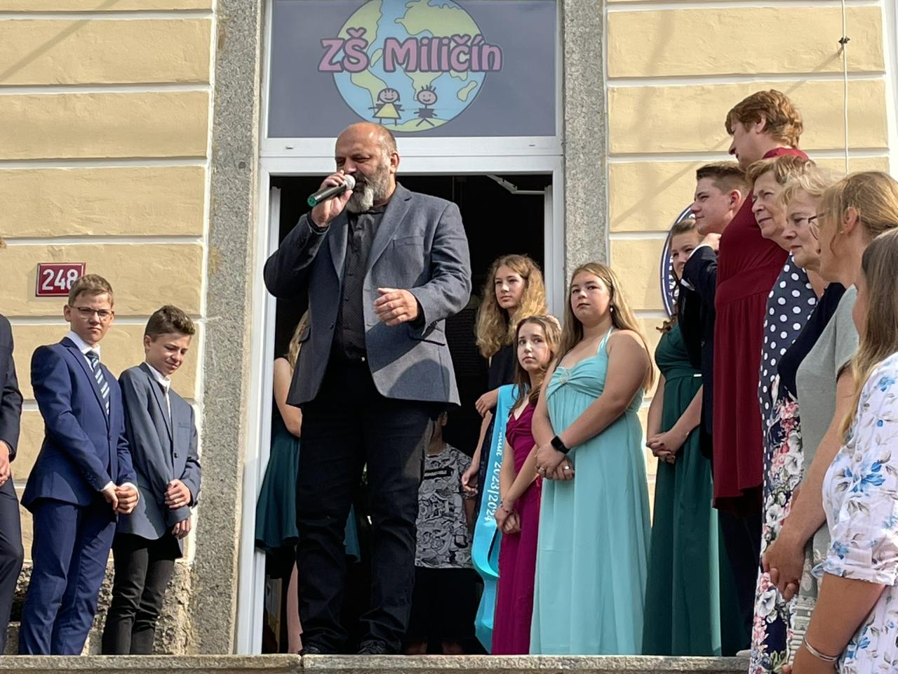 Dnes se kromě rozdávání vysvědčení uskutečnila i tradiční akce - miličínské schody, kdy se naše škola loučí s 9. ročníkem. Vše nejlepší do dalšího života jim popřála ředitelka školy Mgr. Marcela Škramlíková, třídní učitelka Ing. Blanka Kocourková a starosta města Václav Karda. Děkujeme všem, kteří jste k nám zavítali a rozloučili se s našimi žáky. Letošní rok jsme se navíc rozloučili i s dvěma kolegyněmi. Do důchodu odchází po 45 letech na naší škole naše drahá Dana Dostálová. Novou životní etapu zahajuje i Bc. Eva Mládková. Přejeme všem našim deváťákům a kolegům vše nejlepší do jejich dalších životních etap a všem žákům ve zdraví a hezky prožité prázdniny.