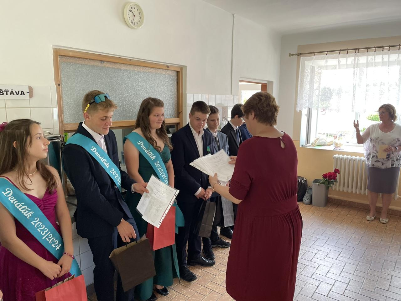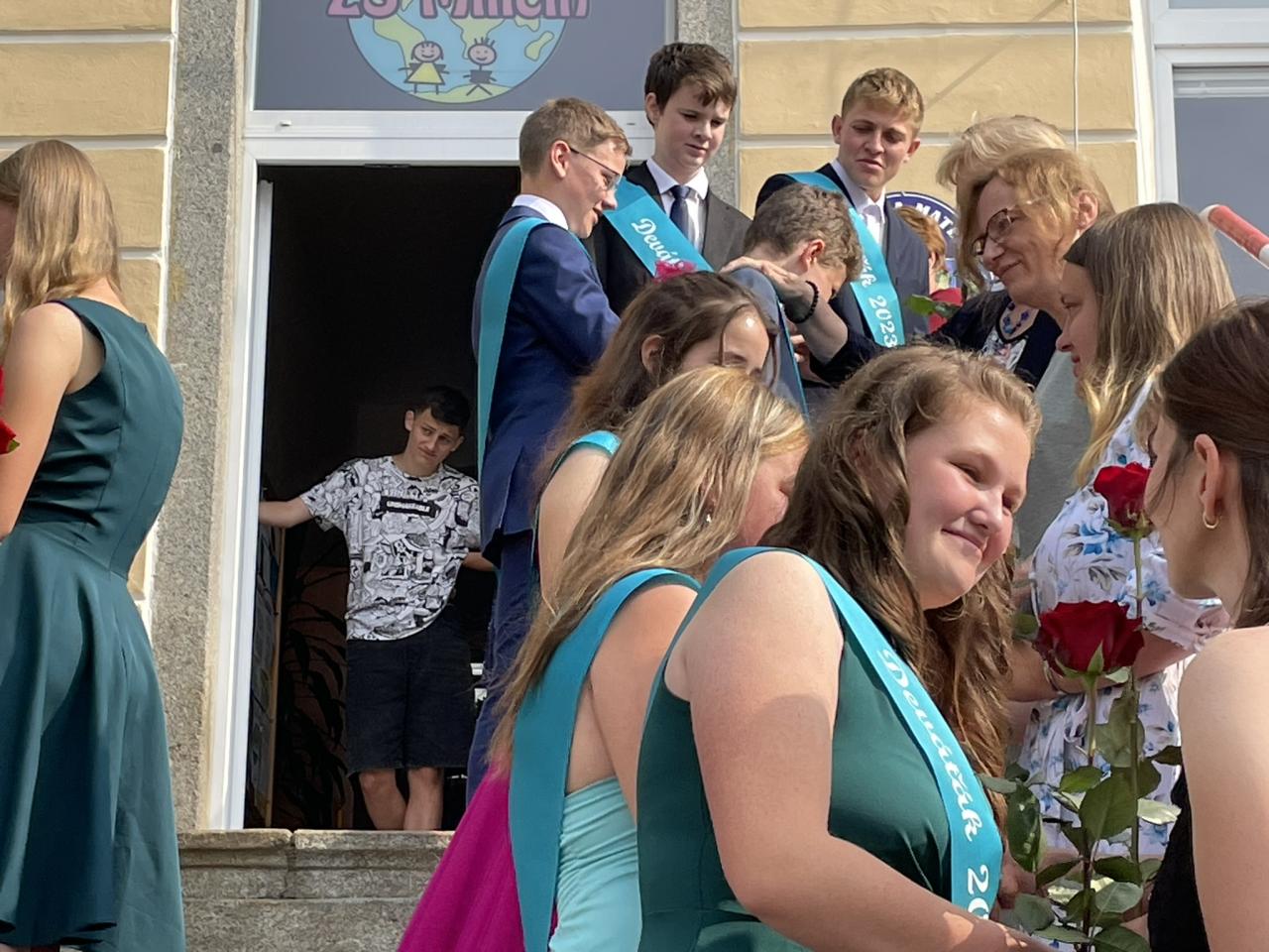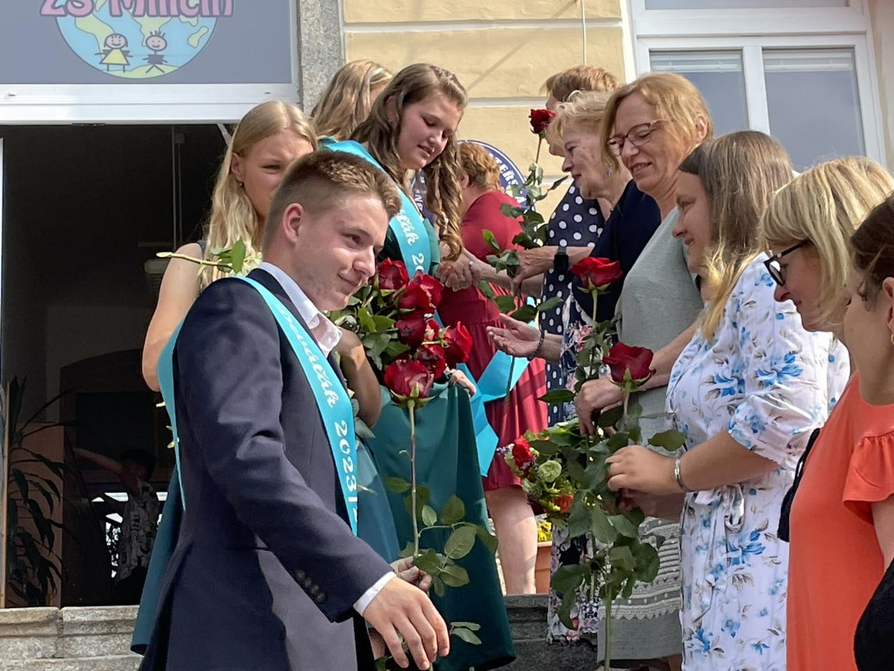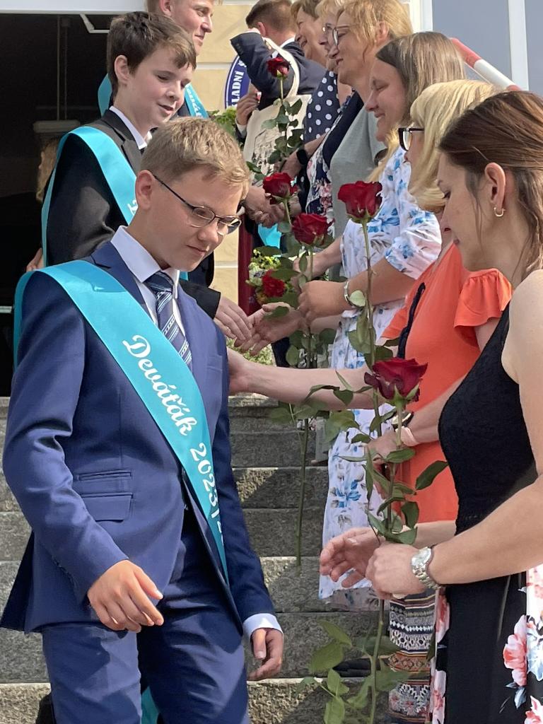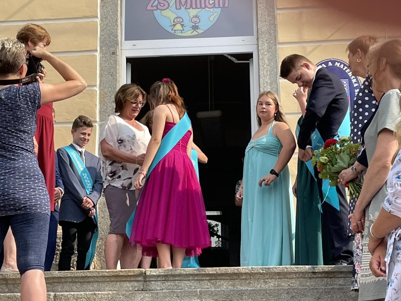 Dnes se kromě rozdávání vysvědčení uskutečnila i tradiční akce - miličínské schody, kdy se naše škola loučí s 9. ročníkem. Vše nejlepší do dalšího života jim popřála ředitelka školy Mgr. Marcela Škramlíková, třídní učitelka Ing. Blanka Kocourková a starosta města Václav Karda. Děkujeme všem, kteří jste k nám zavítali a rozloučili se s našimi žáky. Letošní rok jsme se navíc rozloučili i s dvěma kolegyněmi. Do důchodu odchází po 45 letech na naší škole naše drahá Dana Dostálová. Novou životní etapu zahajuje i Bc. Eva Mládková. Přejeme všem našim deváťákům a kolegům vše nejlepší do jejich dalších životních etap a všem žákům ve zdraví a hezky prožité prázdniny.