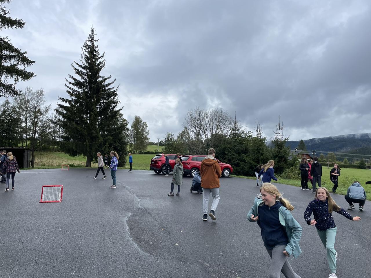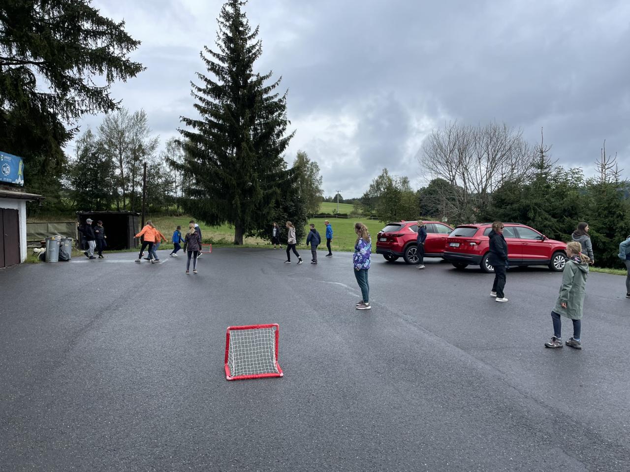 Máme se dobře. Nemáme u sebe mobily. Od večera do rána pršelo, přestalo v 10 a šli jsme si hned hrát ven. K obědu bylo knedlo-vepřo-zelo. Odpoledne jsme byli zase venku, po svačině s teplým čajem jsme dělali tržiště. Večer byla diskotéka.