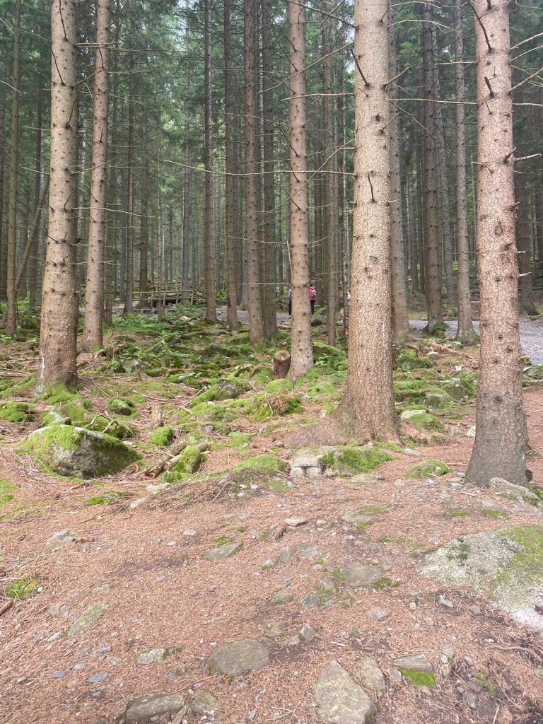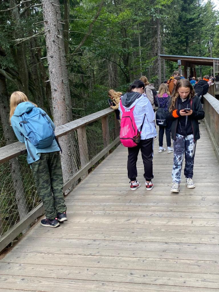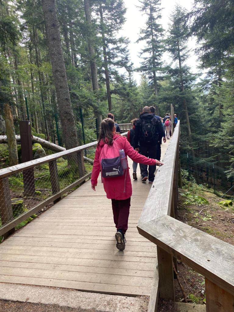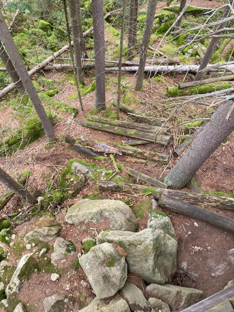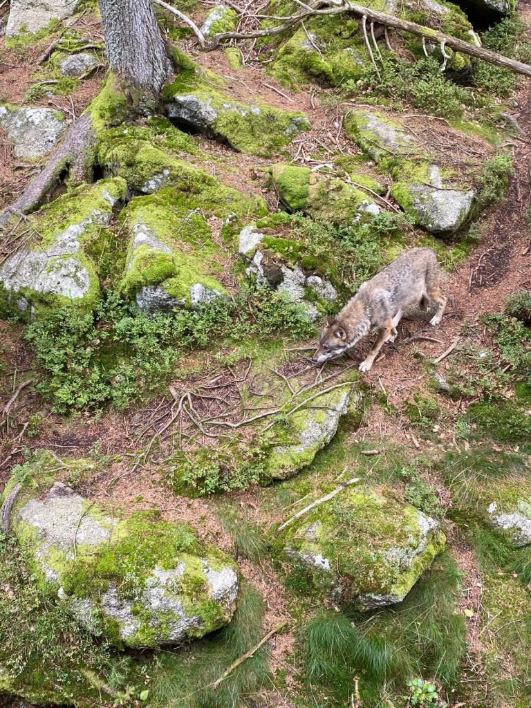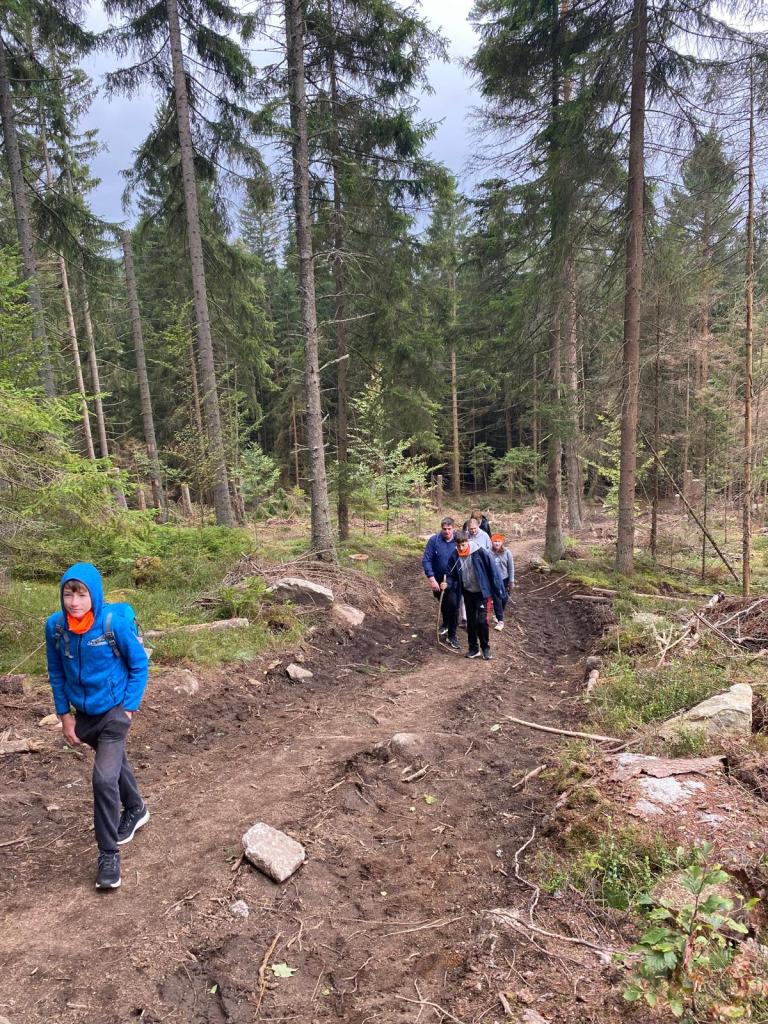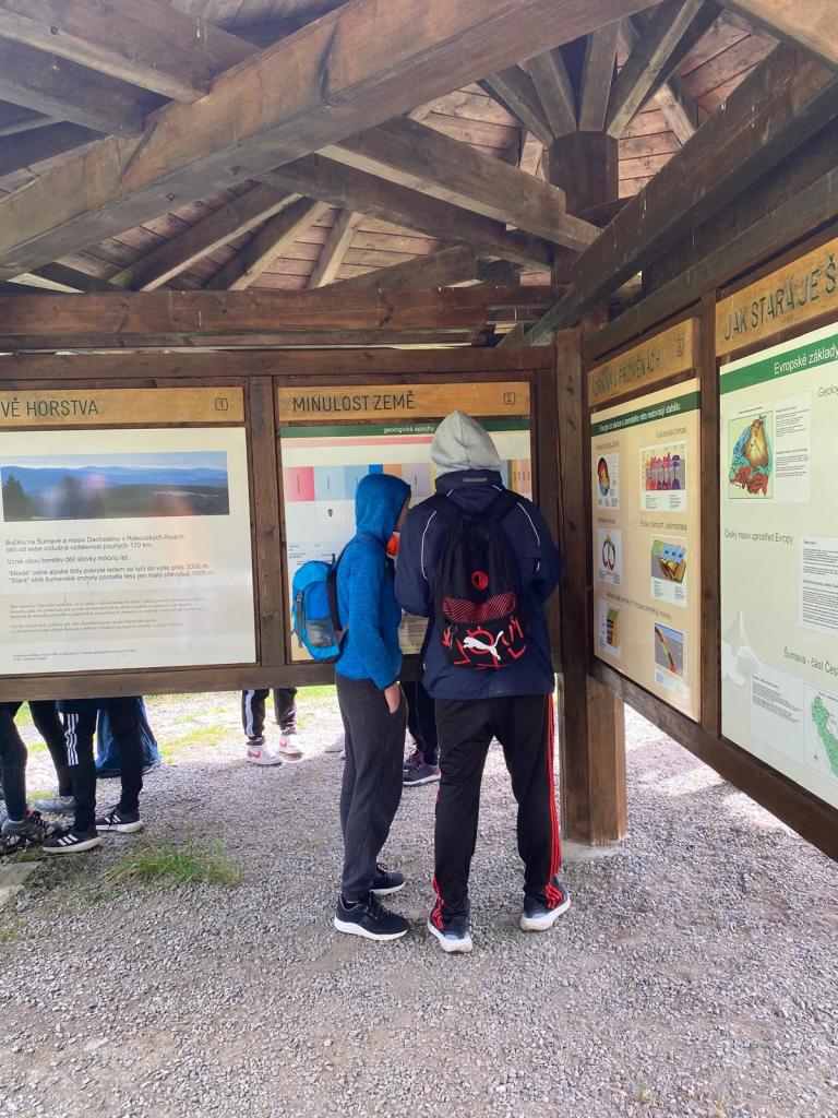 Větší skupina se vydala na Modravu, část cesty jeli autobusem, potom navštívili Klostermannovu chatu a po hřebenové trase došli k vlčímu výběhu. Menší skupina osmi statečných a hrdinných Vikingů, kteří si hojili rány na těle i na duši z předchozích vítězných bojů, se odhodlaně vydala výrazně kratší cestou ke stejnému cíli. K vlkům vedla od návštěvnického centra Srní naučná stezka, asi nejnáročnější část dnešní cesty, prudká a klikatá. Byla tak strmá, že u mnoha cedulí s texty se rádi zastavili i zatvrzelí nečtenáři. Ve vlčím výběhu jsme opravdu viděli nádherné majestátní šelmy, jednu i s ulovenou kořistí v tlamě. Nafotili jsme spoustu snímků a společně se vydali domů, kam jsme došli kolem 15. hodiny na začátku mírného mrholení.