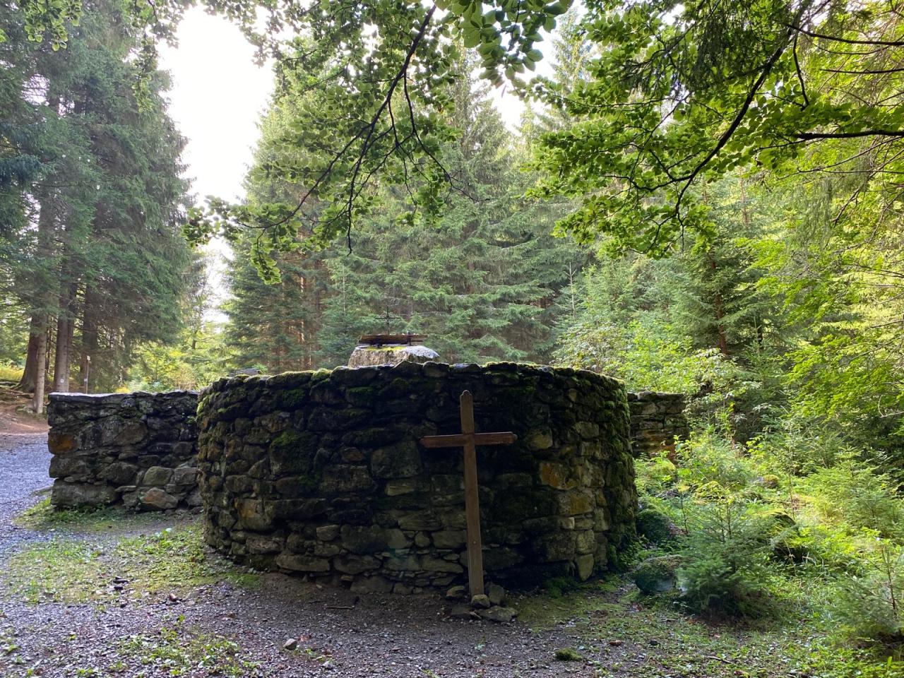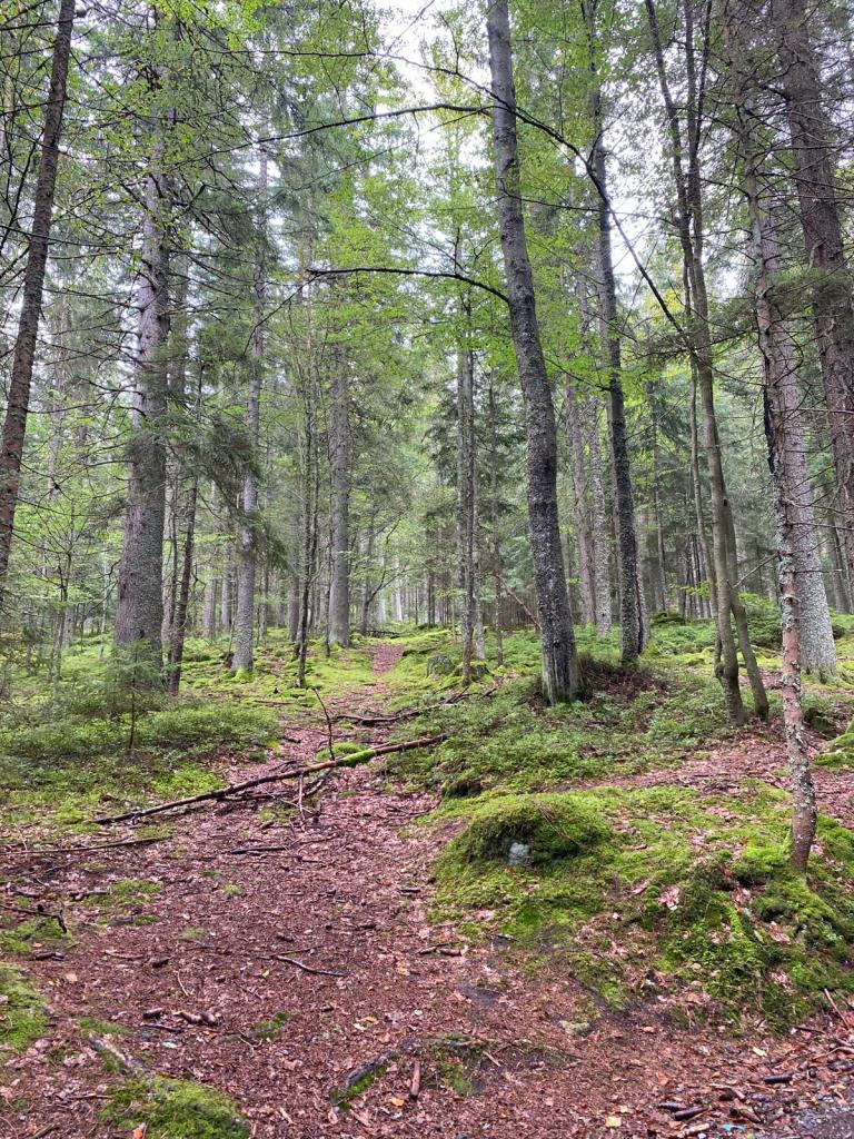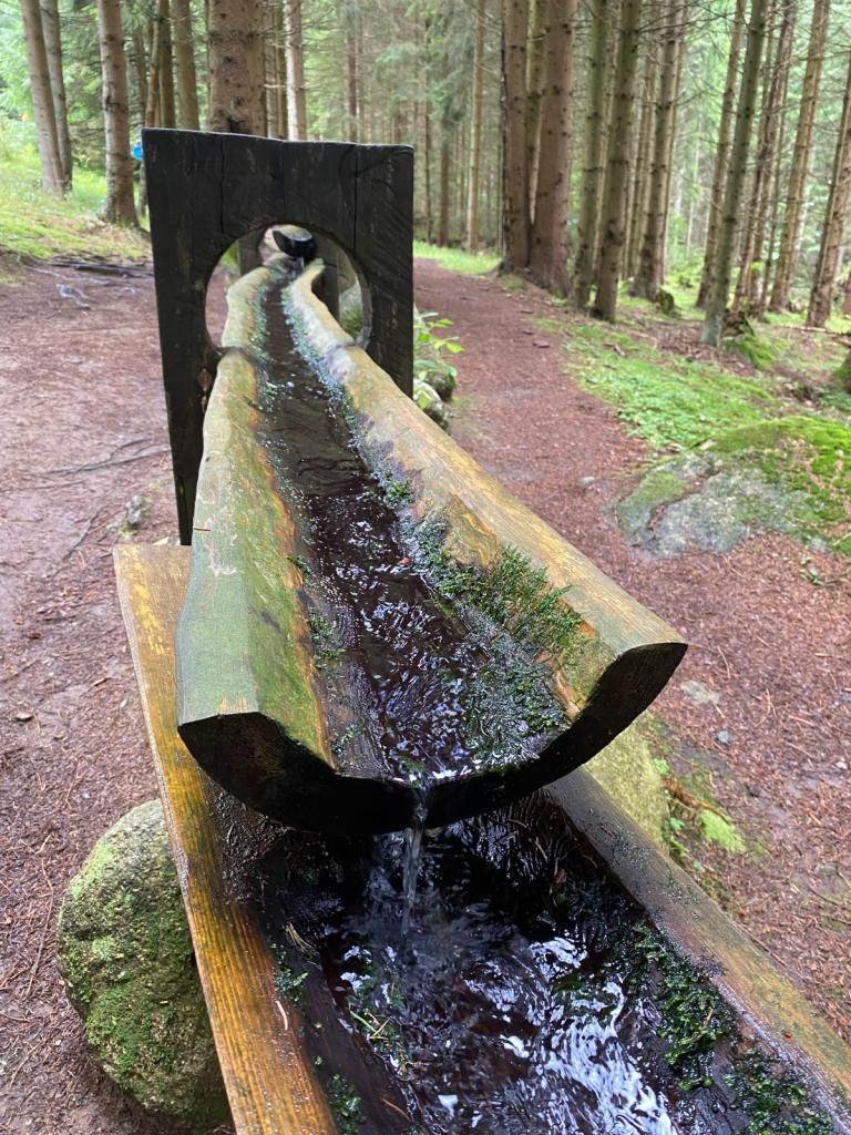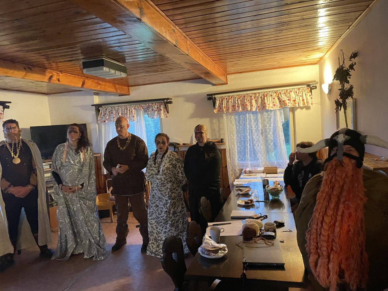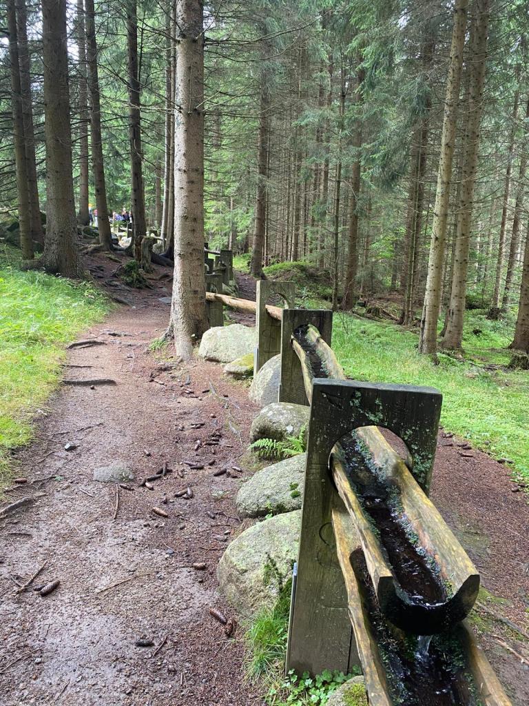 Během rána a dopoledne několikrát pršelo. Zůstali jsme v jídelně a každý si vyrobil ze samotvrdnoucí hmoty přívěsek s runou, což je vikinské písmo. K němu jsme si upletli z vlny šňůrku jako copánek. Nezvládl to úplně každý, ale díky pomoci spolužaček a paní učitelek ji budou mít nakonec všichni. Vyčasilo se, takže paní ředitelka zavelela ke krátkému výšlapu, cílem byla Hauswaldská kaple. Šli jsme kolem Vchynicko-tetovského kanálu s průzračnou vodou a pstruhy, lesem úplně zarostlým mechem, potkali jsme spoustu turistů a cyklistů, obdivovali (a někteří kalili) vodu tekoucí od pramene dřevěnými žlaby až ke krásnému pítku, to vše za slunečného počasí. Vrátili jsme se za pět minut dvanáct rovnou k obědu. Odpoledne se děti věnovaly aktivitám připraveným agenturou, hrály hry, soutěžily, plavily se na včera vyrobených lodích, fotily scénky ze života vikinského lidu.