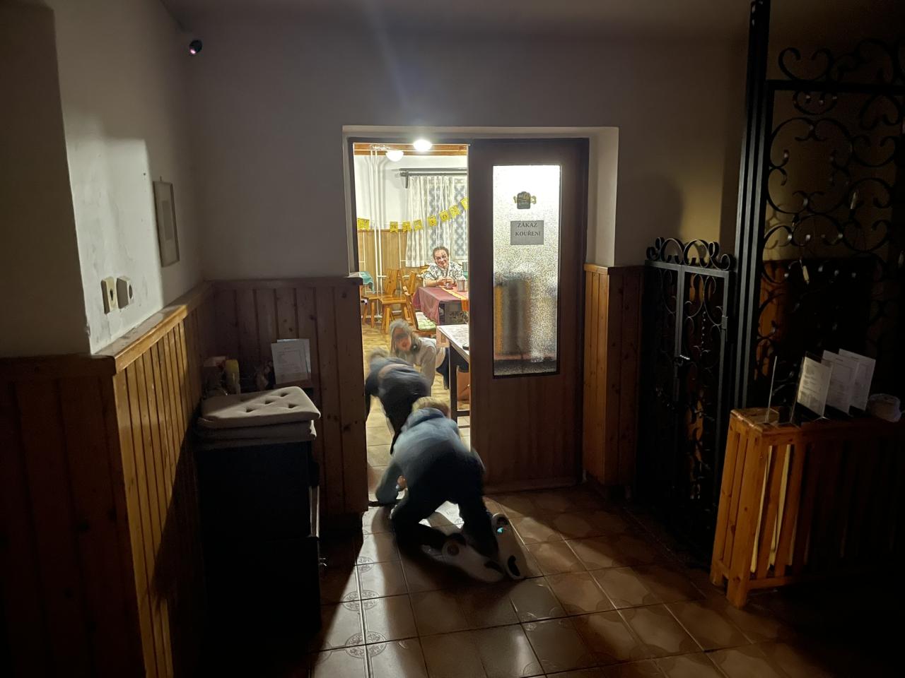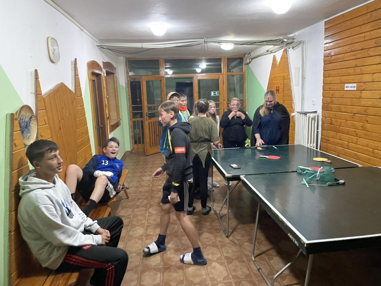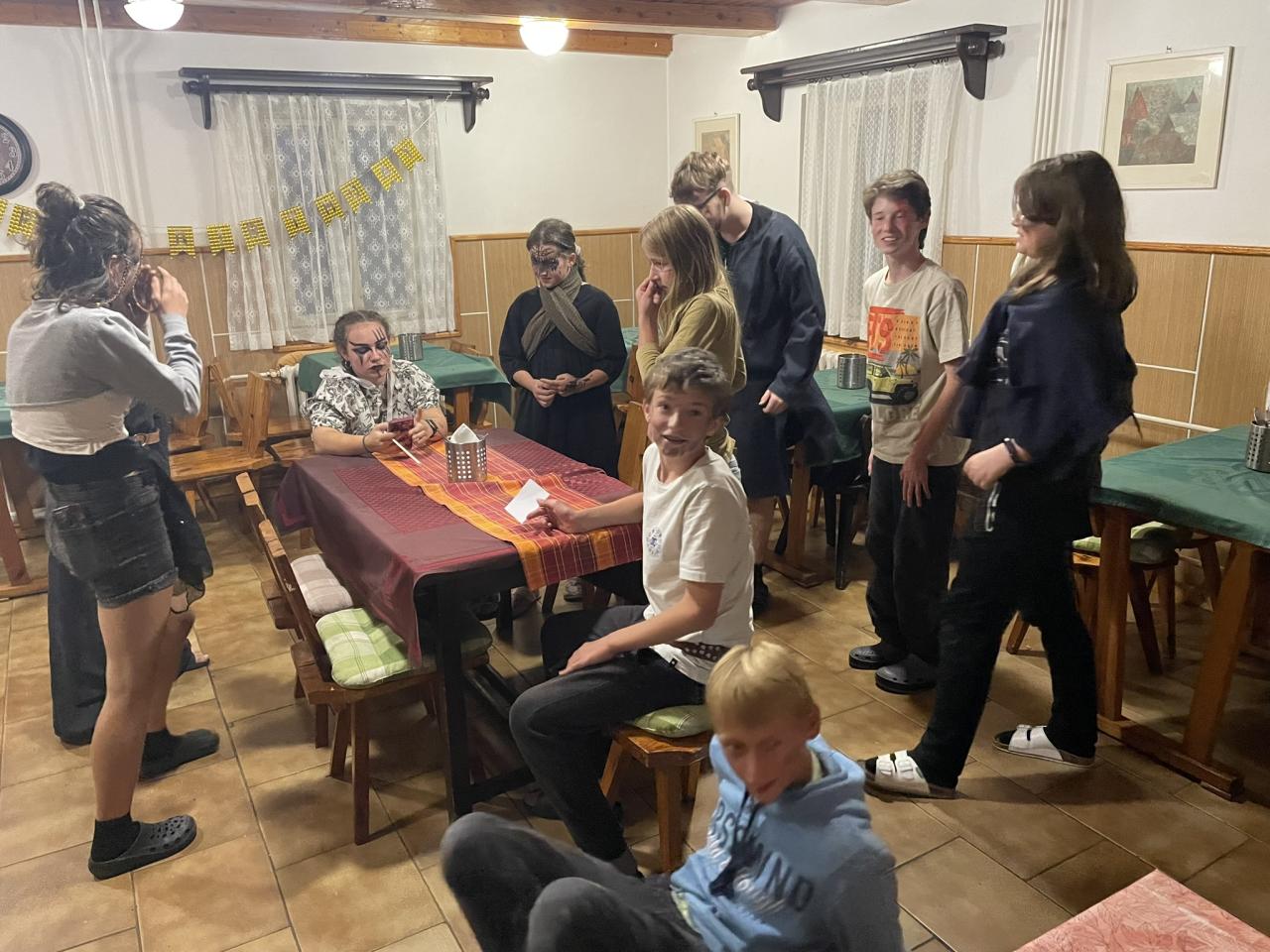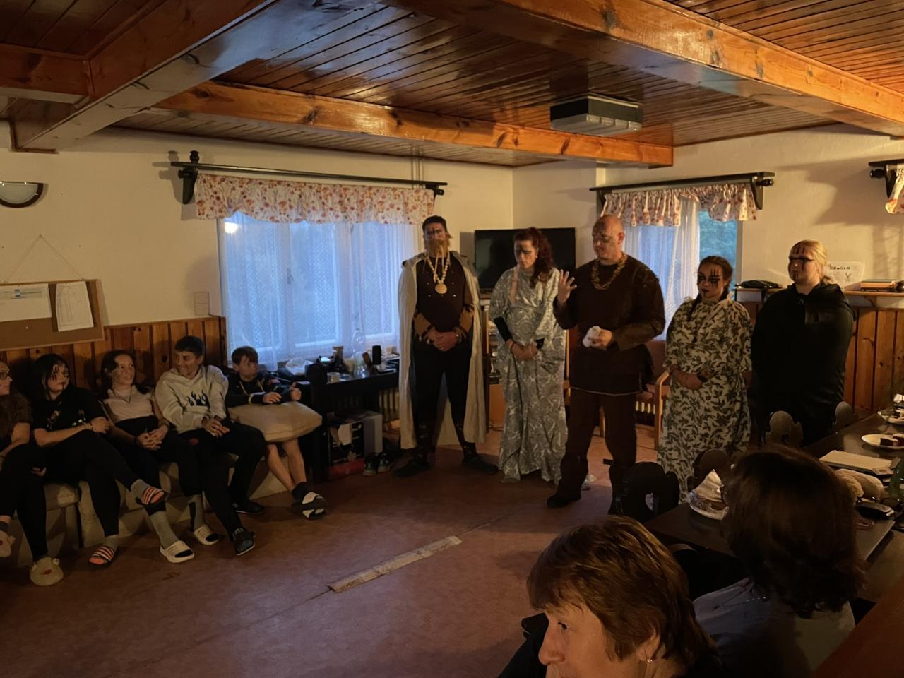 Po večeři se soutěžilo ve čtyřech skupinách v prostorách chaty od sklepa až po půdu. Kvůli nebezpečnému hlídači bylo nejvýhodnější lézt po čtyřech nebo se plazit. Úplně všechny úkoly splnila pouze jedna skupina, takže si mohla jako první vybrat nové barevné batůžky; ostatní přišli na řadu až podle dalšího umístění. Všichni se musí dobře vyspat na zítřejší túru, ale zejména hoši jsou na tom s usínáním hůř než včera. Snad si přesto na zítřek řádně odpočinou.