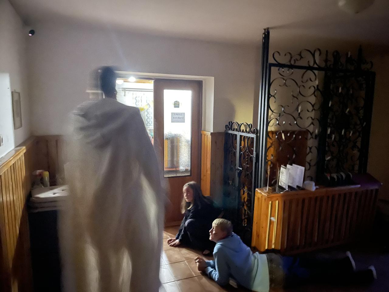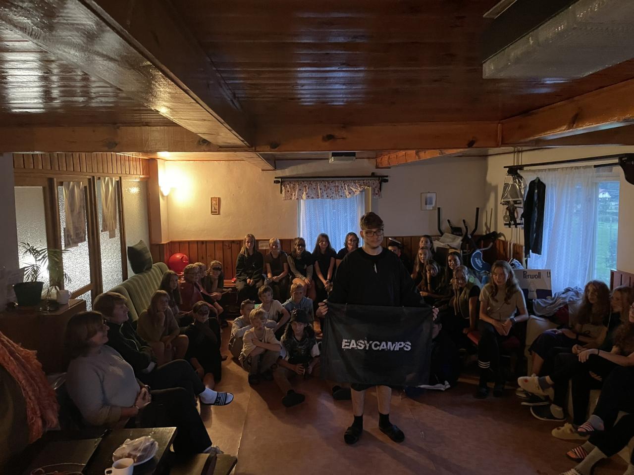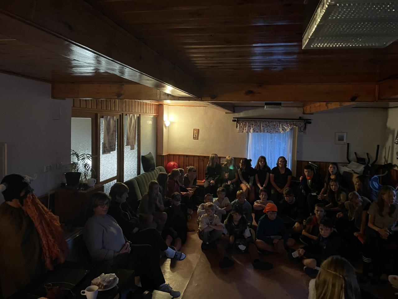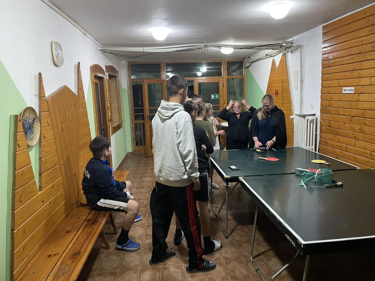 Po večeři se soutěžilo ve čtyřech skupinách v prostorách chaty od sklepa až po půdu. Kvůli nebezpečnému hlídači bylo nejvýhodnější lézt po čtyřech nebo se plazit. Úplně všechny úkoly splnila pouze jedna skupina, takže si mohla jako první vybrat nové barevné batůžky; ostatní přišli na řadu až podle dalšího umístění. Všichni se musí dobře vyspat na zítřejší túru, ale zejména hoši jsou na tom s usínáním hůř než včera. Snad si přesto na zítřek řádně odpočinou.