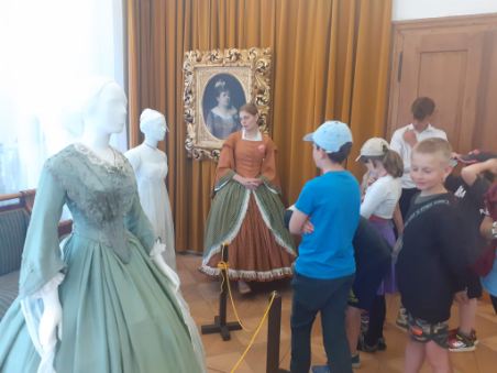 Návštěva samotného zámku byla zajímavá tím, že zde probíhalo řetězové provádění na zámku Vrchotovy Janovice. A co si máme pod tímto názvem představit? V každé zámecké místnosti prováděli žáci 5. a 8. ročníku zdejší základní školy. Některé dívky oblékly i dobové kostýmy. Takto podané seznamování s historií naše žáky velmi zaujalo. Při hodině českého jazyka jsem byla zpětně překvapená, čeho všeho si děti všimly a co si zapamatovaly.
