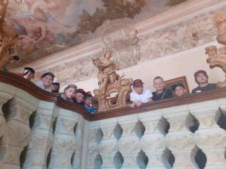 1. června objednala paní učitelka Jana Plačková exkurzi do zámeckého parku a do zámku ve Vrchotových Janovicích. Nejprve nás však provedla parkem. Pochází totiž z Janovic a v parku zná každé místo. Děti zaujal hřbitov původních majitelů. Jejich zvířecí miláčci byli totiž pochováni blízko nich. Ať už to byli psi, nebo koně. Další zastávka byla na místě, kde stával domek zahradníků. Zůstaly po něm pouze základy a někde i obvodové zdi, ale děti odhadovaly, kde se nacházela kuchyně, sklep a místnost na spaní.